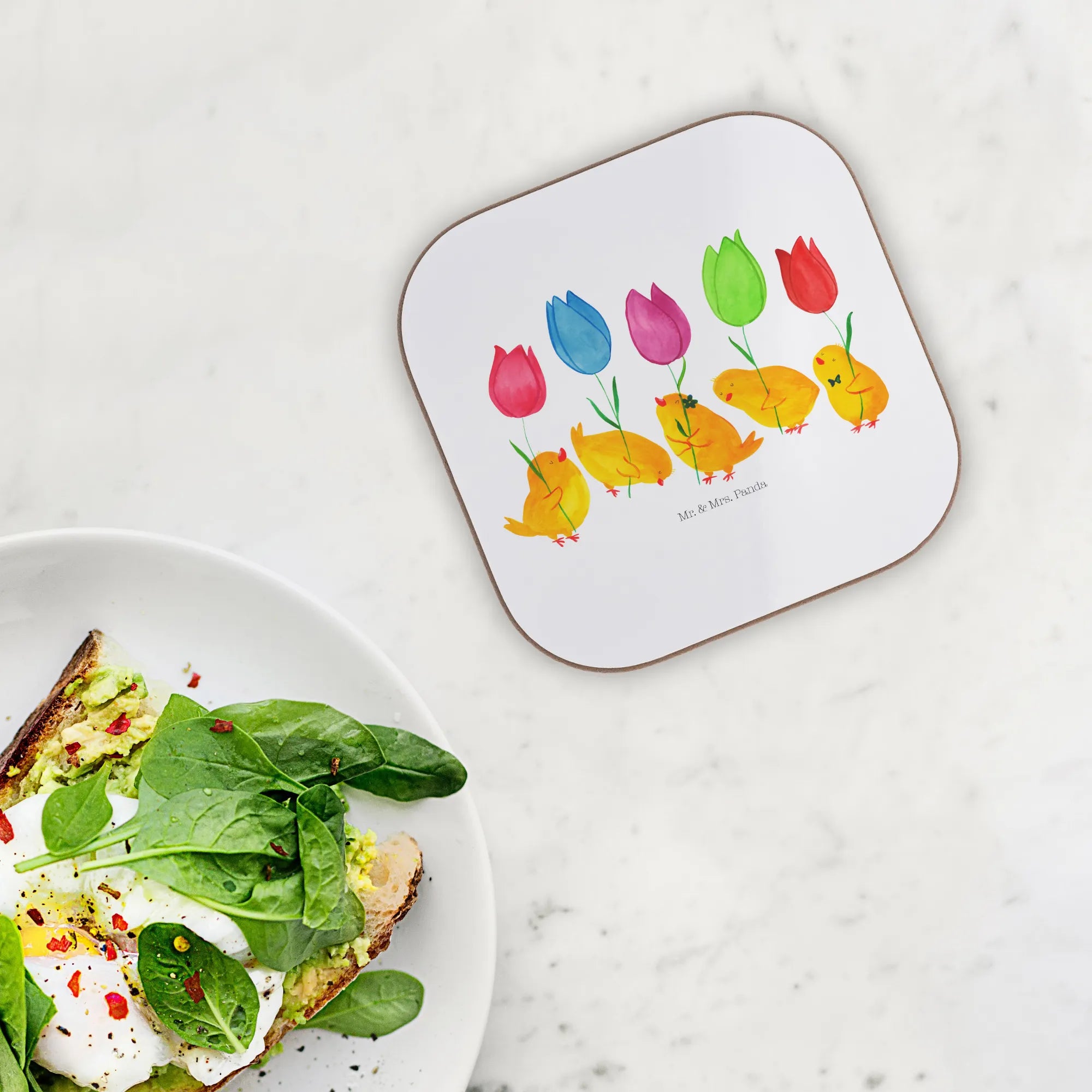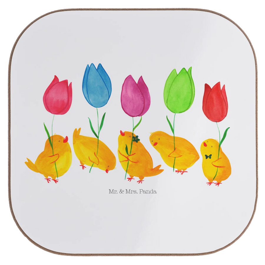 Der wunderschöne Untersetzer "Küken Parade" von Mr. & Mrs. Panda ist das perfekte Geschenk für alle, die das fröhliche Osterfest lieben. Mit seinem liebevollen Design, das süße Küken mit bunten Tulpen zeigt, bringt er den Frühling direkt zu dir nach Hause. Der quadratische Untersetzer in der Größe 100 mm x 100 mm hat eine Dicke von 5 mm und schützt deinen Tisch nicht nur vor Abdrücken und Kratzern, sondern macht jede Kaffeetafel zu einem echten Hingucker.