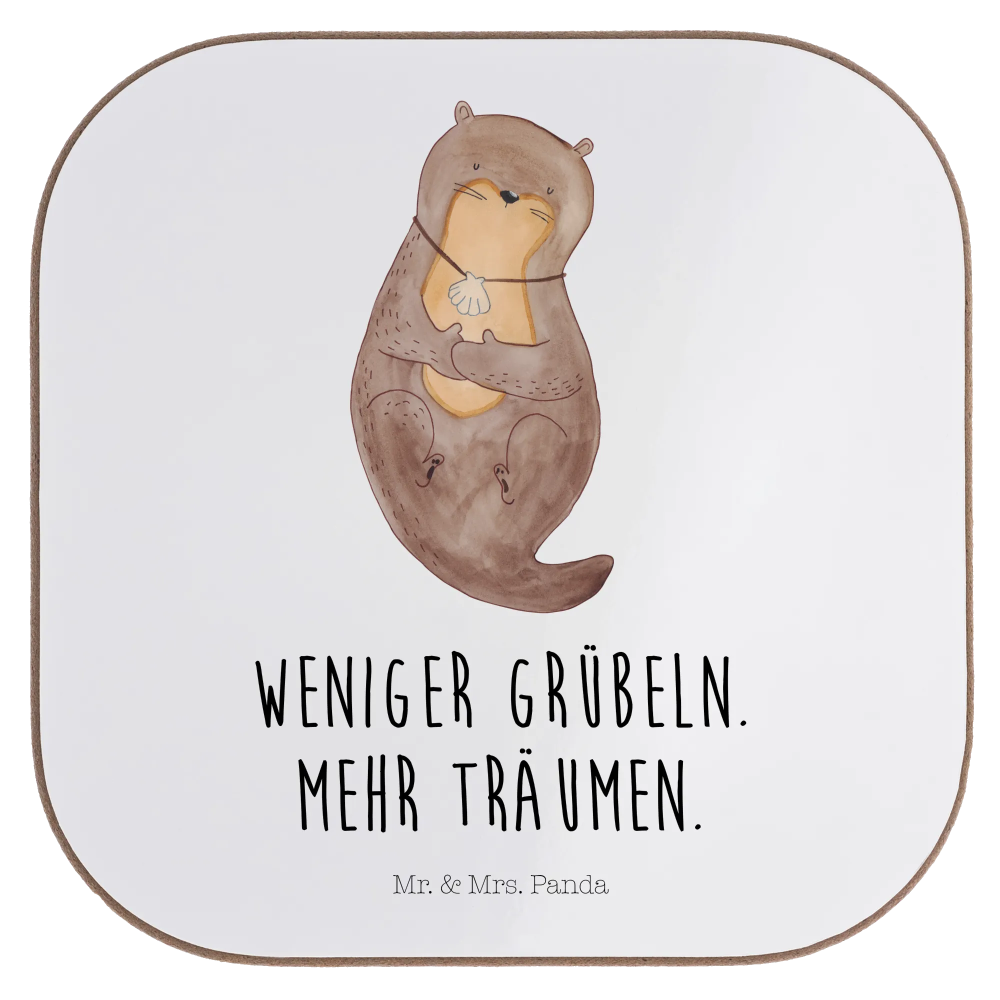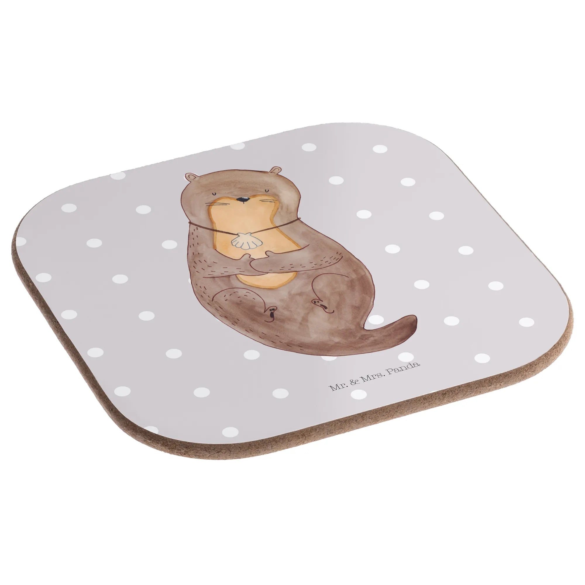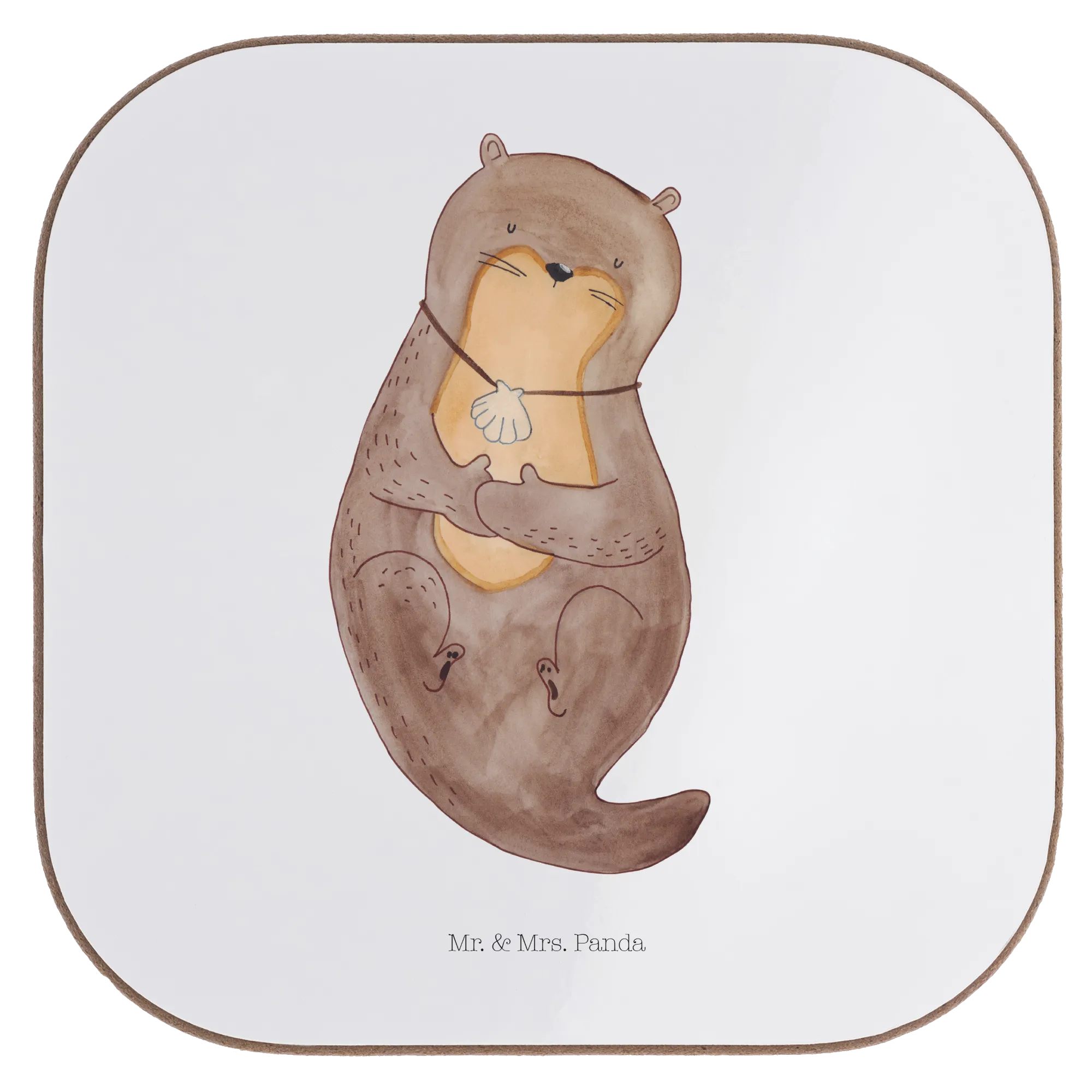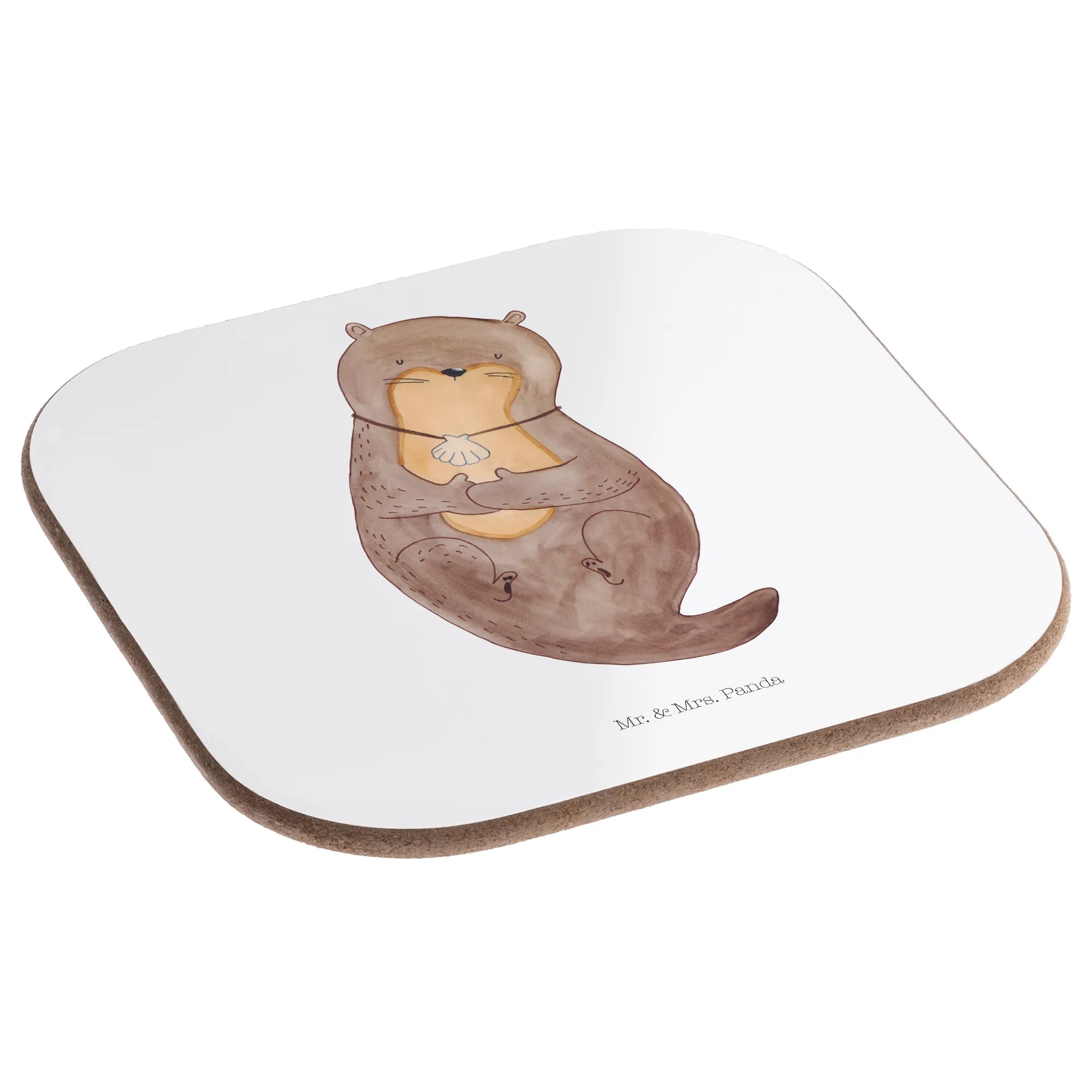 Mr. & Mrs. Panda Untersetzer „Otter mit Muschelmedaillon“ – Quadratisch, charmant und praktisch.