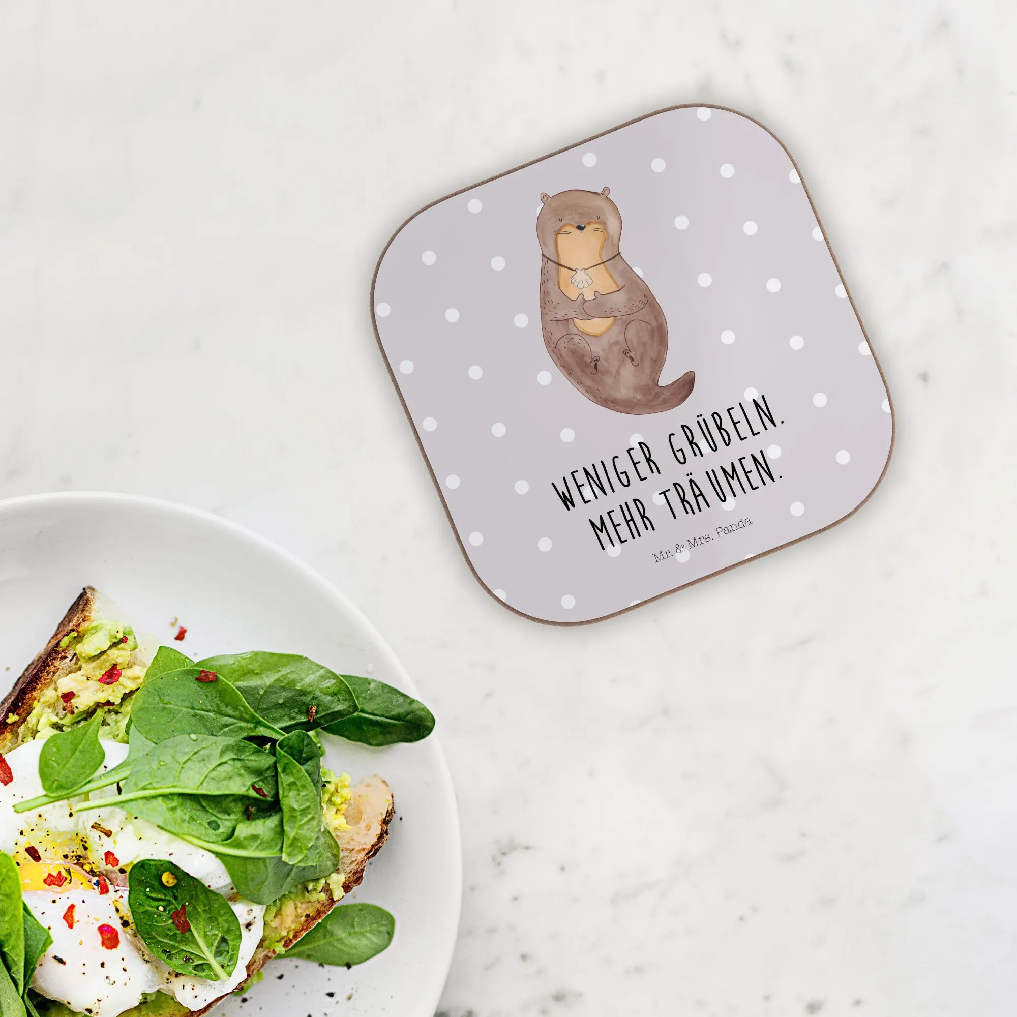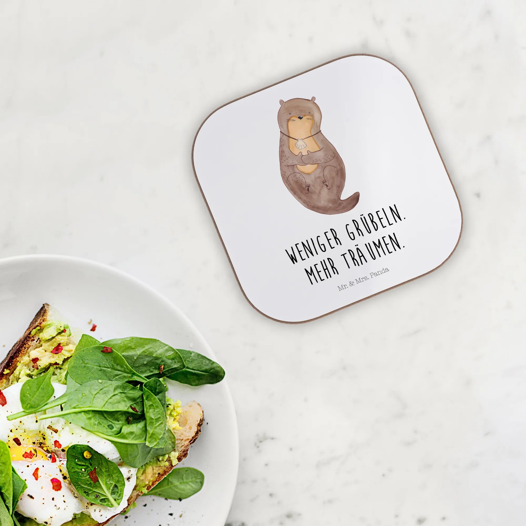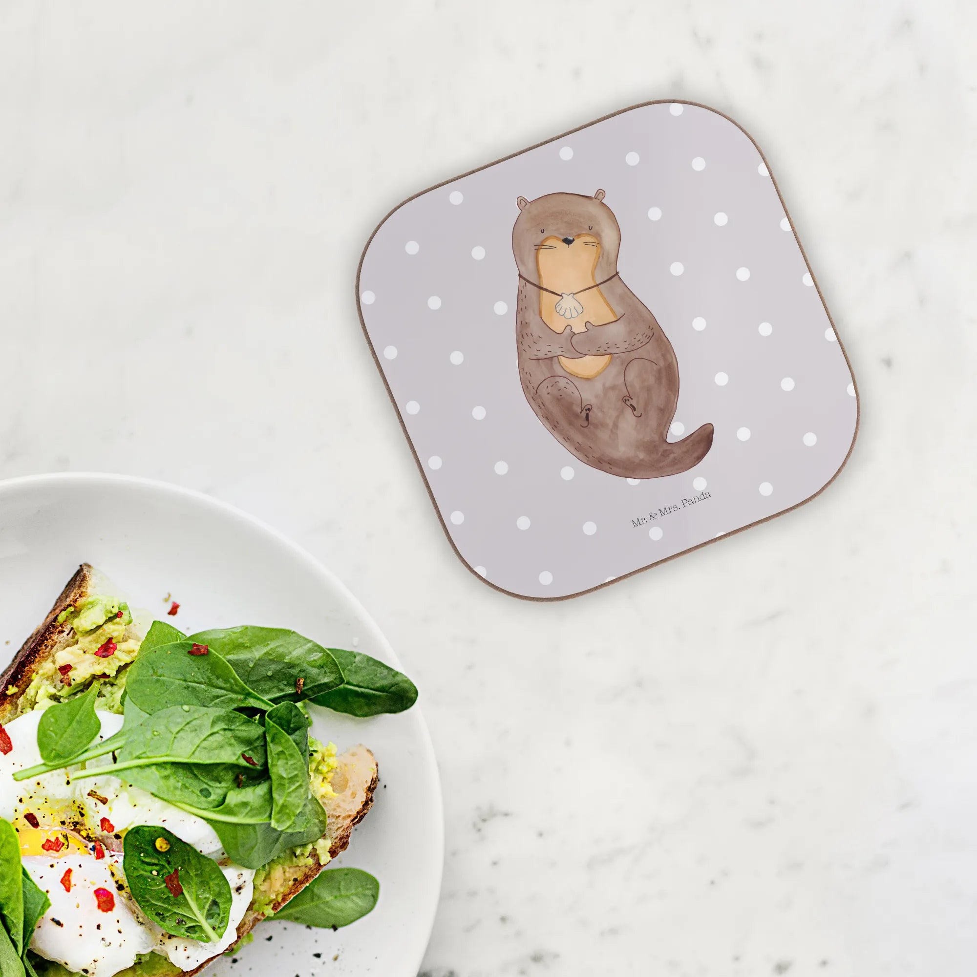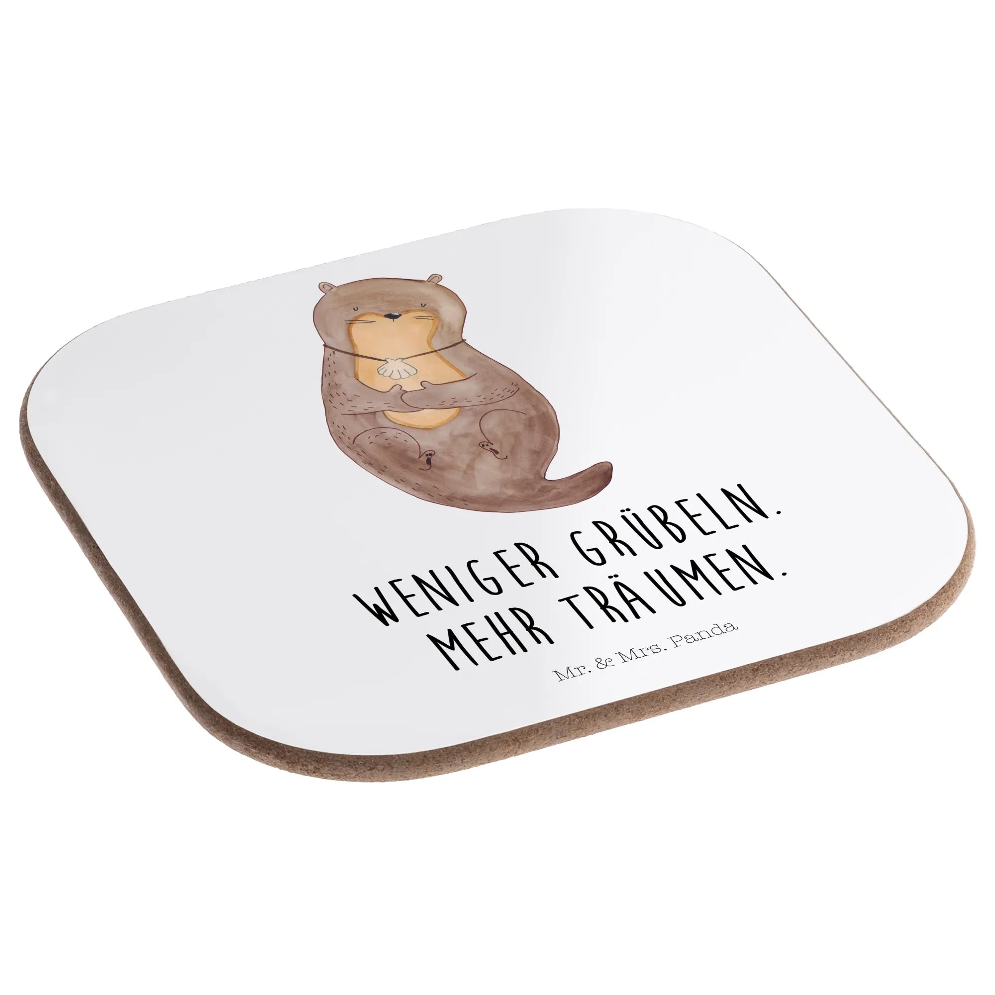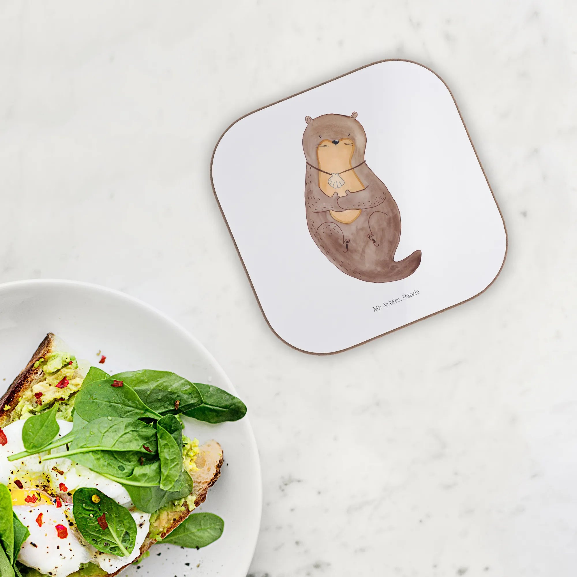 Mr. & Mrs. Panda Untersetzer „Otter mit Muschelmedaillon“ – Quadratisch, charmant und praktisch.