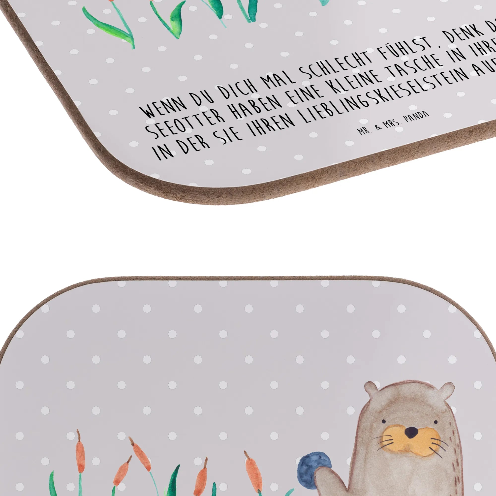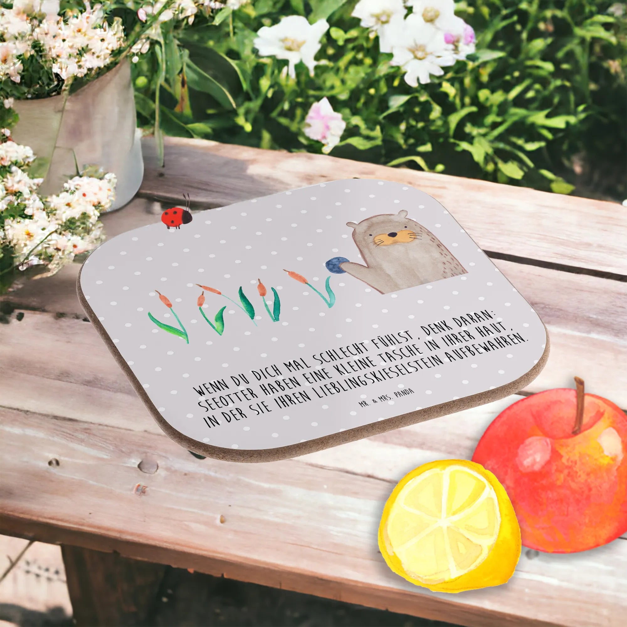 Tassenuntersetzer Otter Stein - mit Spruch - Grau Pastell