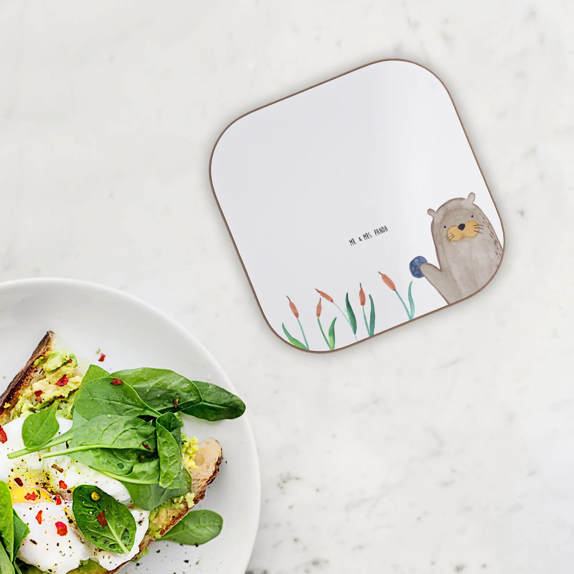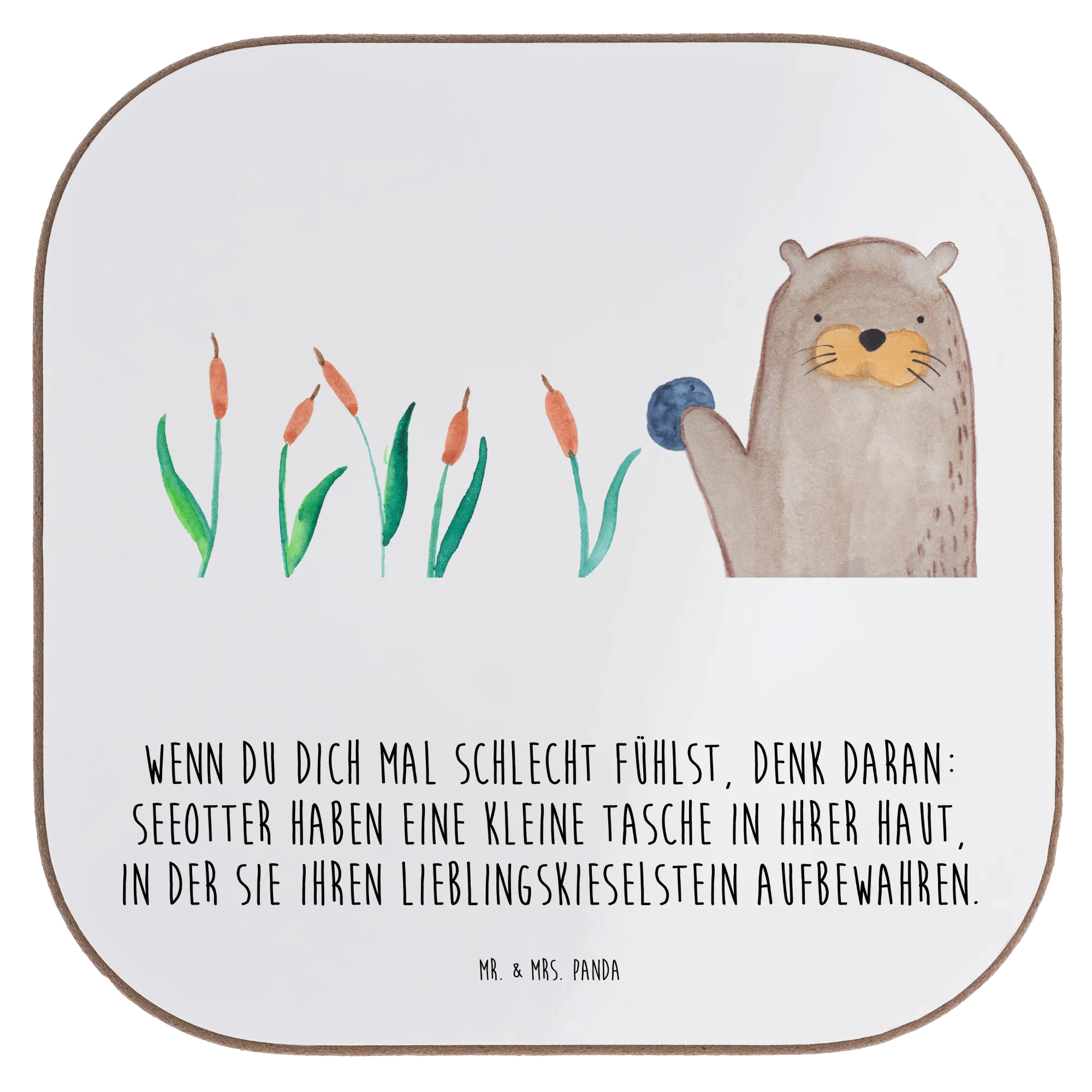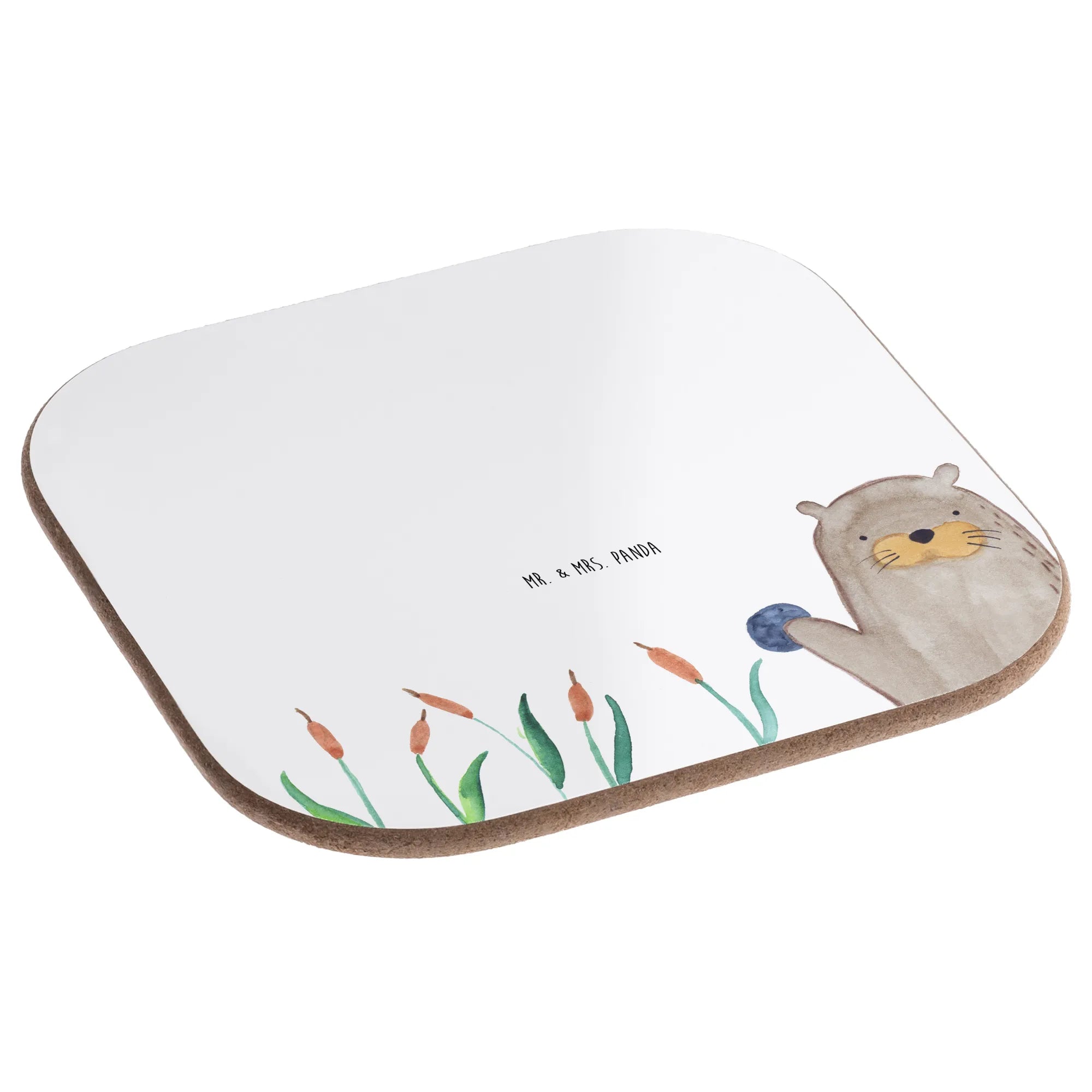Entdecke den perfekten Untersetzer für alle Otter-Fans: unseren quadratischen Untersetzer mit dem fröhlichen Motiv "Otter mit Stein" aus der Otter-Kollektion von Mr. & Mrs. Panda! Dieser wunderschöne Untersetzer schützt deinen Tisch nicht nur vor unschönen Getränkerändern und Kratzern, sondern bringt auch ein Stück Lebensfreude in dein Zuhause. Mit seiner glänzenden und hochwertigen Oberfläche wird der Untersetzer zum einzigartigen Accessoire auf deinem Ess- oder Couchtisch.