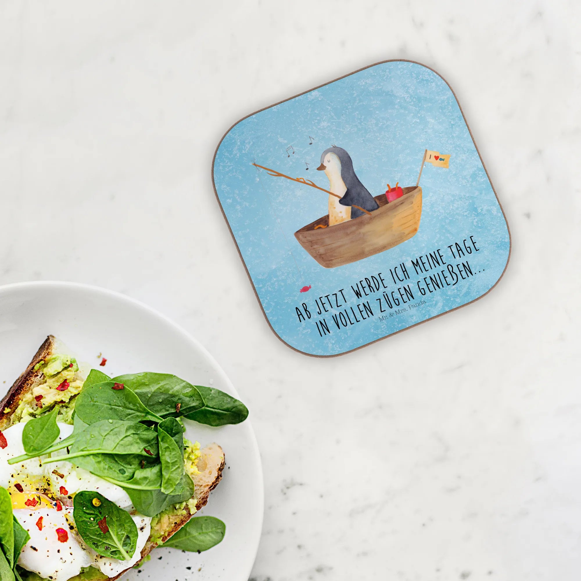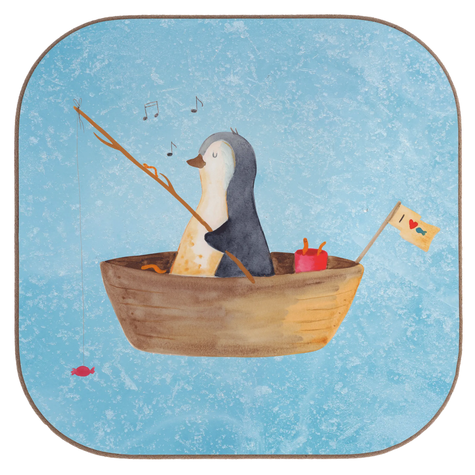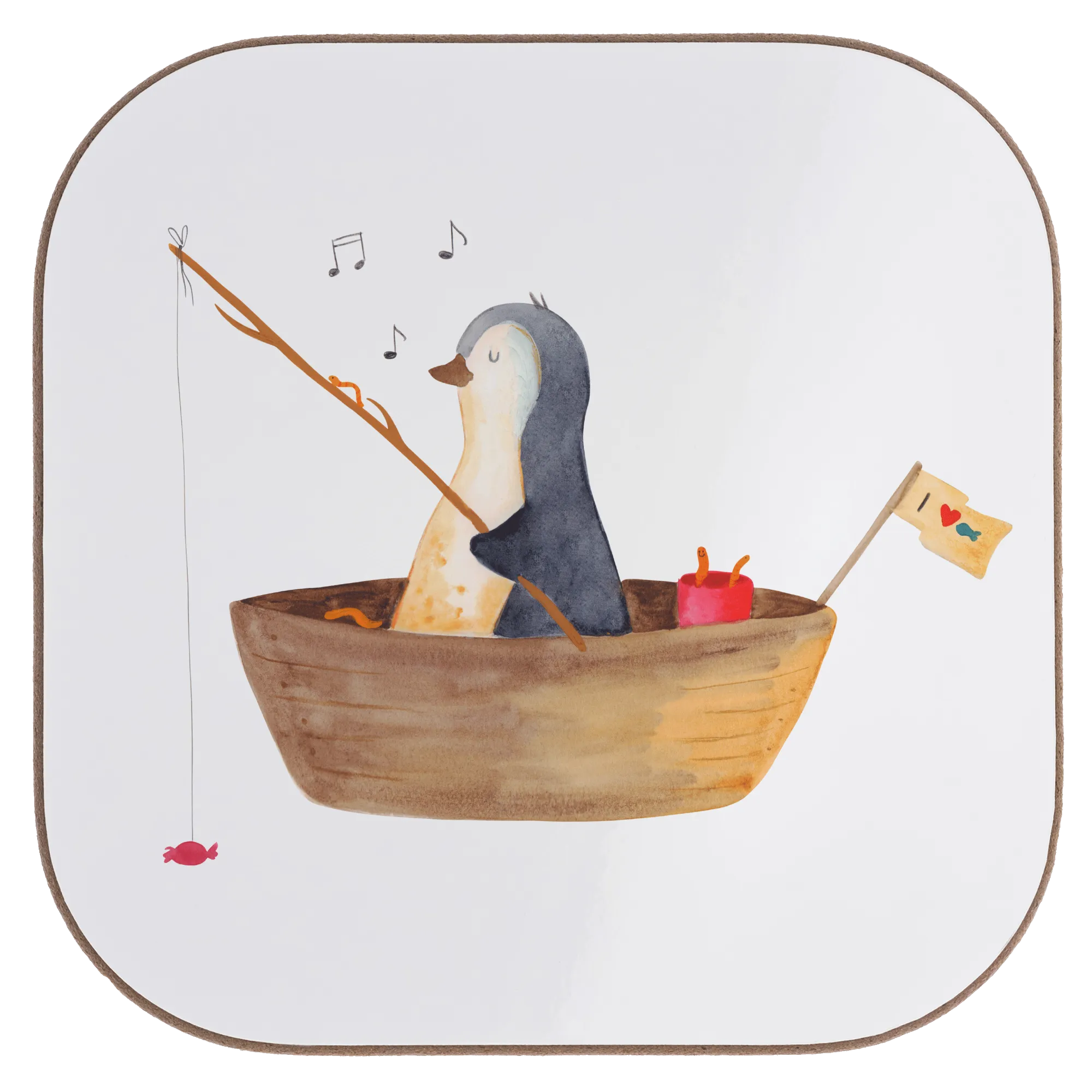 Entdecke unseren bezaubernden Untersetzer "Pinguin Angelboot" aus der Pinguin-Kollektion von Mr. & Mrs. Panda – das perfekte Geschenk für alle, die das Leben in vollen Zügen genießen wollen! Mit einem niedlichen Pinguin, der in einem kleinen Boot angelt und Bonbons am Haken hat, ist dieser quadratische Untersetzer ein echter Hingucker.