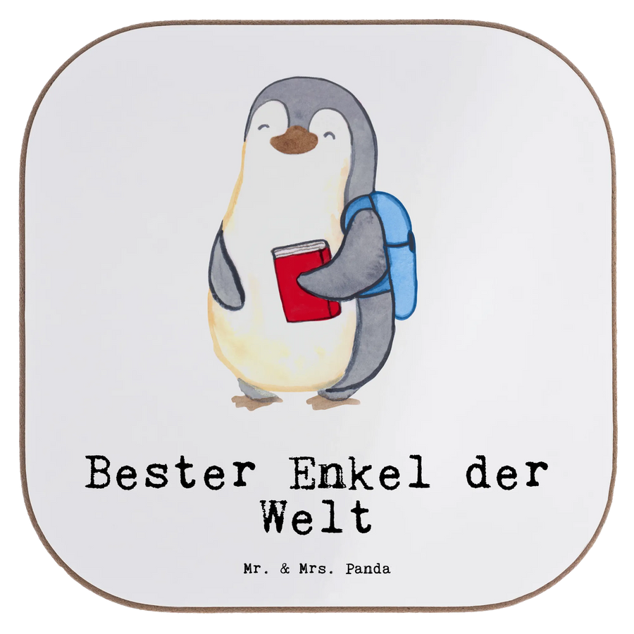 Der quadratische Untersetzer „Pinguin – Bester Enkel der Welt“ aus der Mr. & Mrs. Panda Kollektion Beziehungen verbindet Funktionalität mit Herz. Der niedliche Pinguin mit Rucksack und Buch und der Spruch „Bester Enkel der Welt“ machen diesen Untersetzer zu einer perfekten Geschenkidee für Oma, Opa und alle stolzen Großeltern – ideal zur Taufe, zum Geburtstag oder einfach so als kleine Freude.