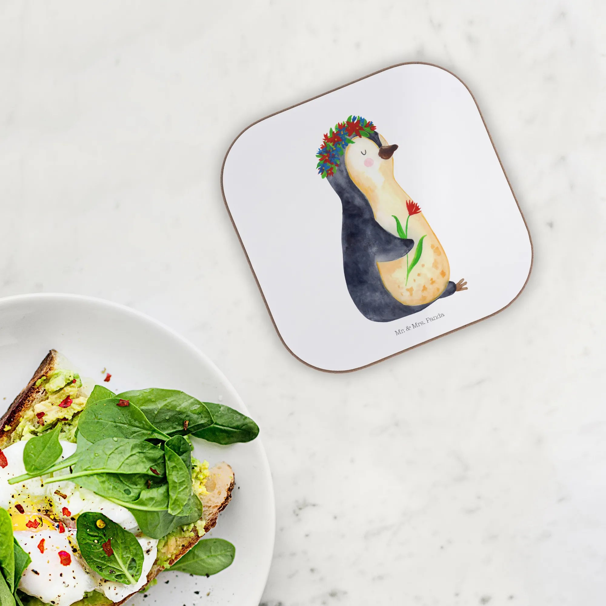 Entdecke die perfekten Untersetzer für dein Zuhause mit dem wundervollen Pinguin Blumenkranz von Mr. & Mrs. Panda! Diese quadratischen Untersetzer sind nicht nur praktisch, sondern auch ein echtes Highlight für jeden Tisch. Das süße Motiv, das einen niedlichen Pinguin mit einem Blumenkranz zeigt, versprüht Lebensfreude und macht jeden Schluck zu einem besonderen Moment.