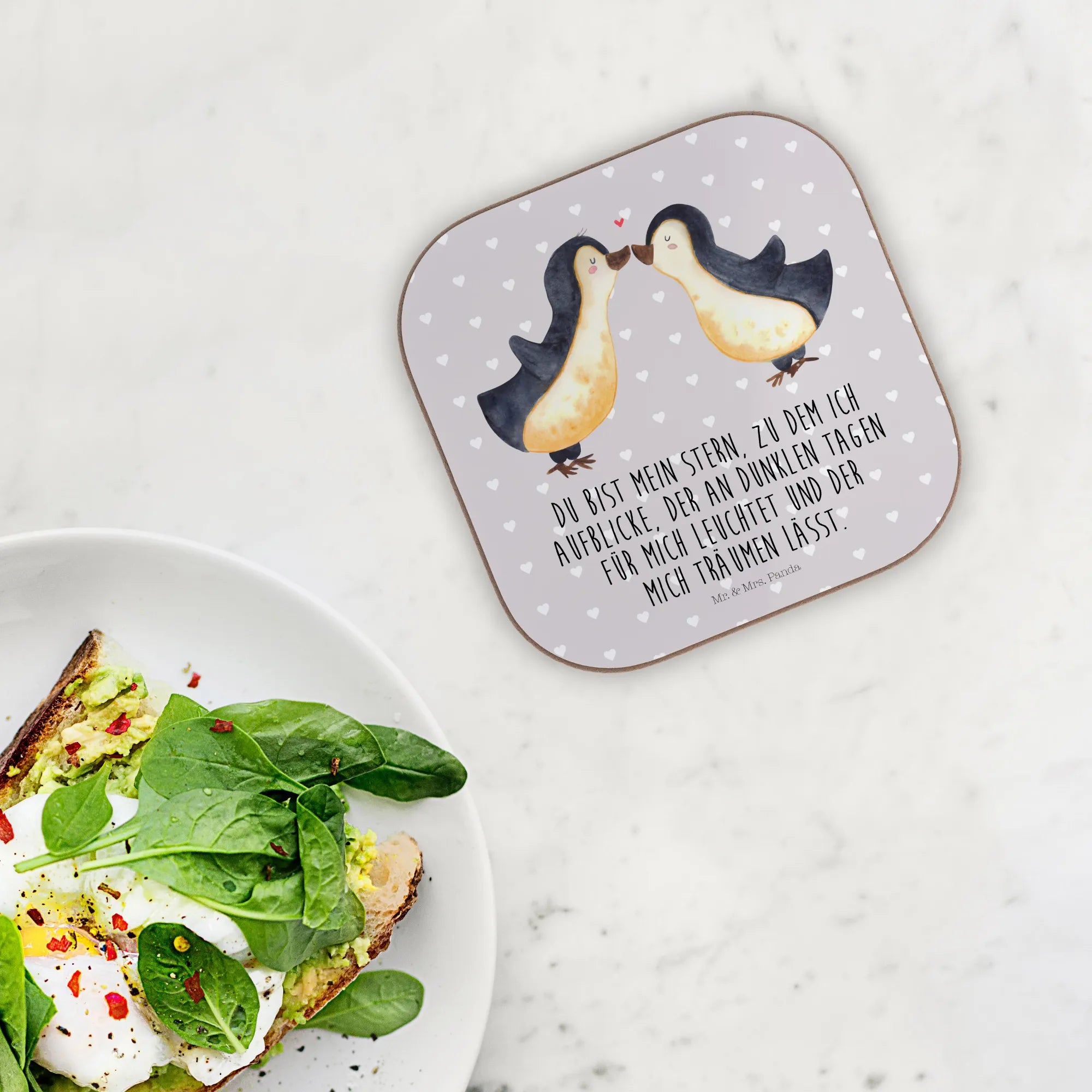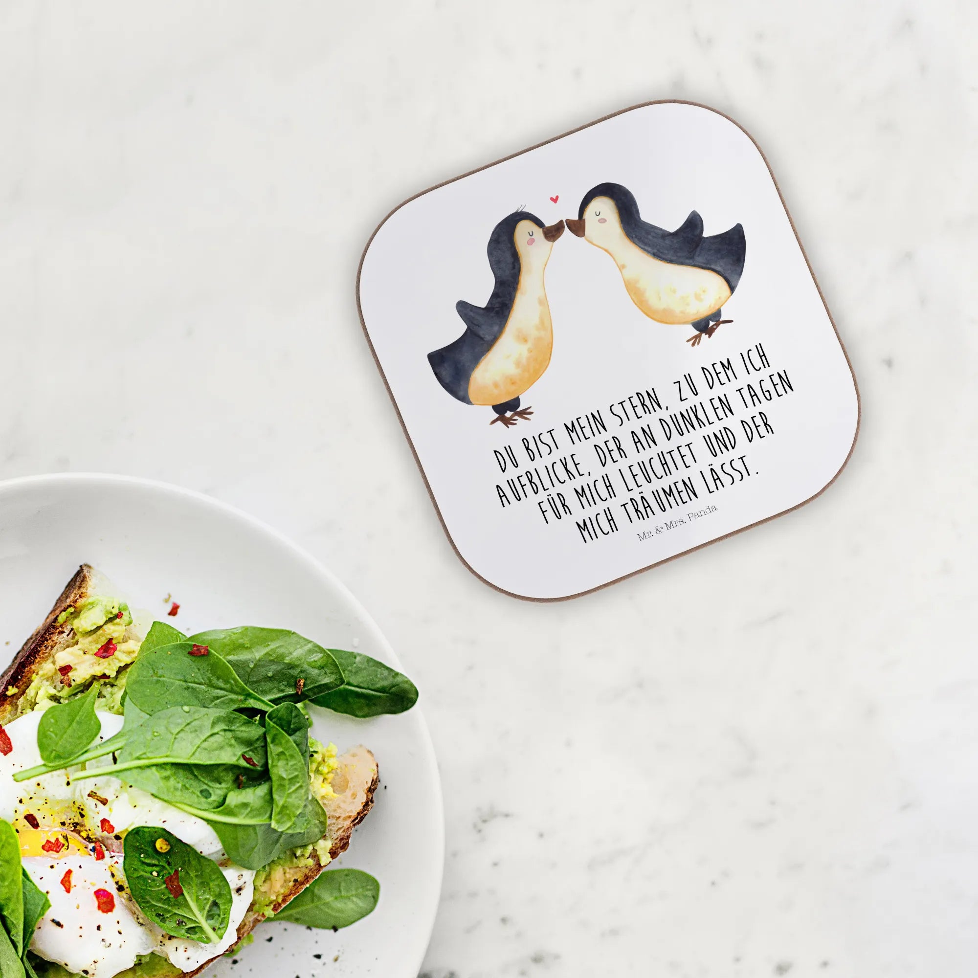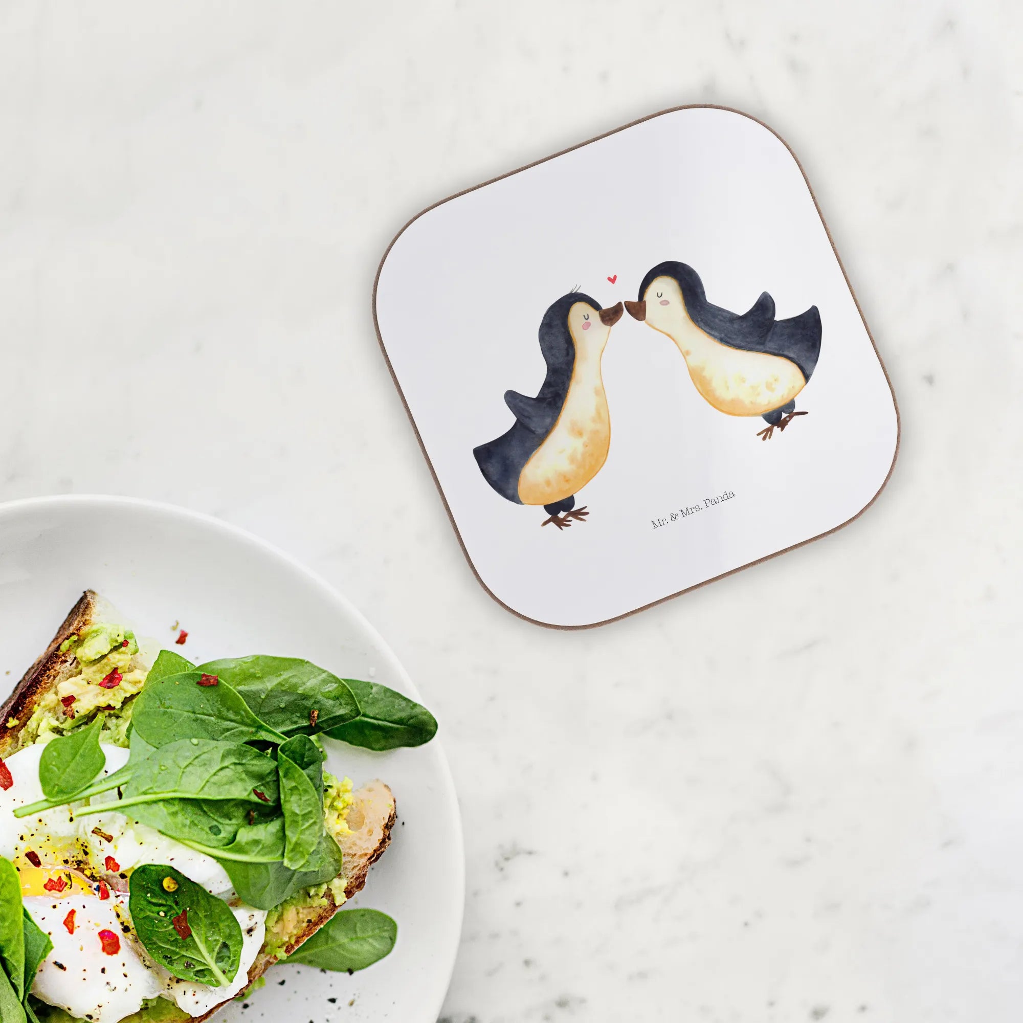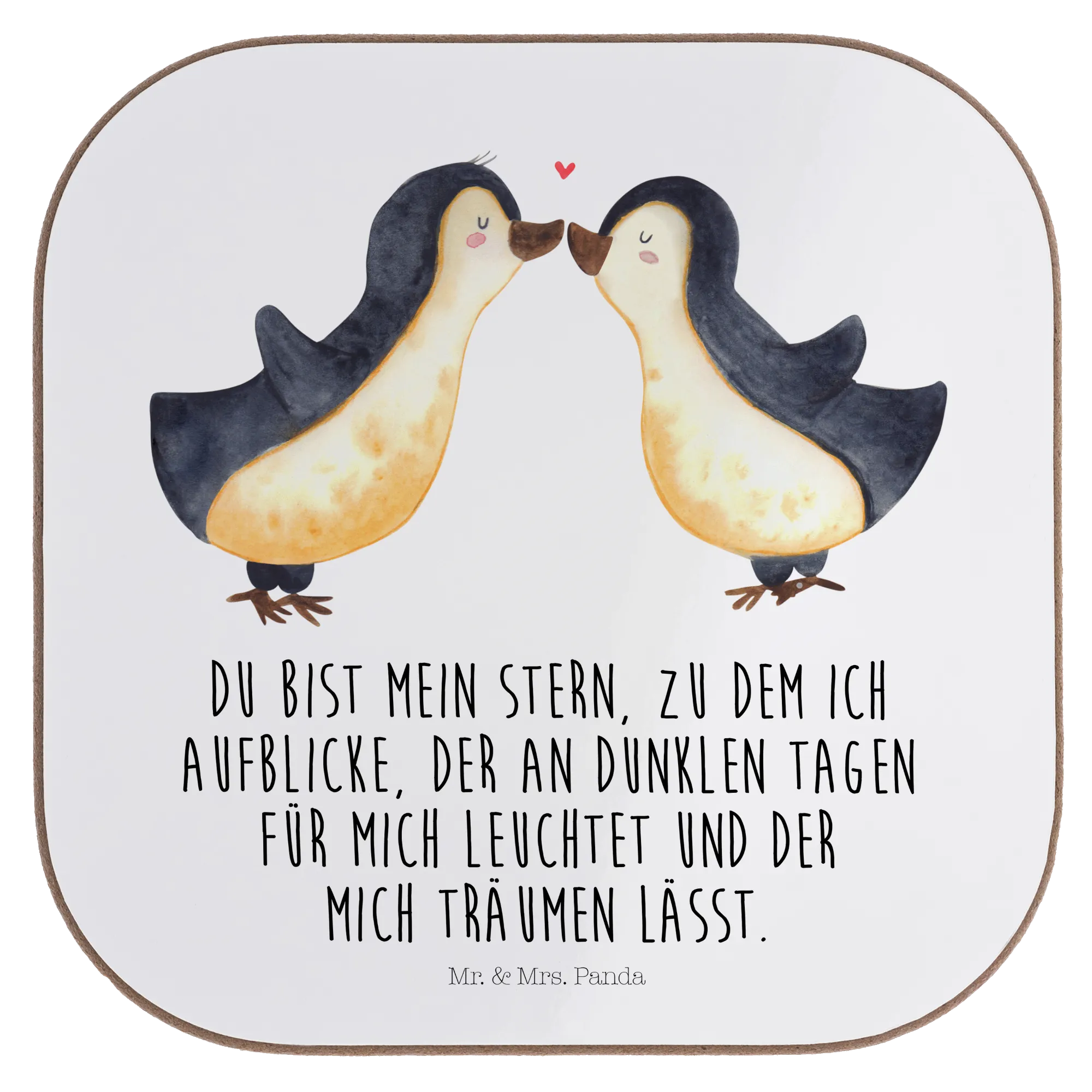 Du suchst nach dem perfekten Geschenk für dein Liebespaar oder deinen besonderen Menschen? Dann ist unser wunderschöner Untersetzer "Pinguin Liebe" von Mr. & Mrs. Panda genau das Richtige! Dieser quadratische Untersetzer, liebevoll gestaltet und gedruckt mit einem süßen Pinguinpaar, das sich zärtlich an den Schnäbeln berührt, ist nicht nur ein praktisches Accessoire, sondern auch eine zauberhafte Liebeserklärung.