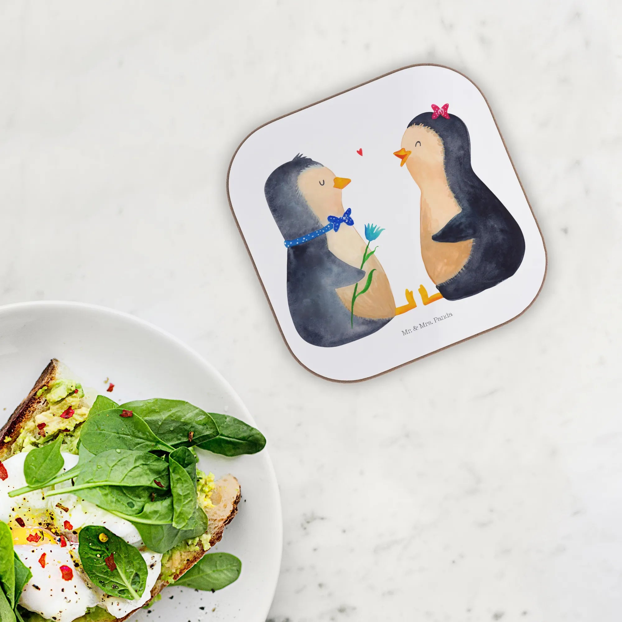 Mr. & Mrs. Panda präsentiert: Quadratischer Untersetzer „Pinguin Pärchen“
