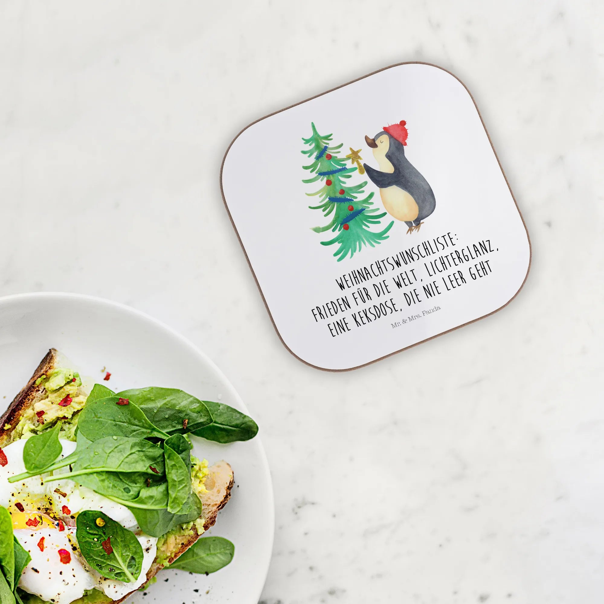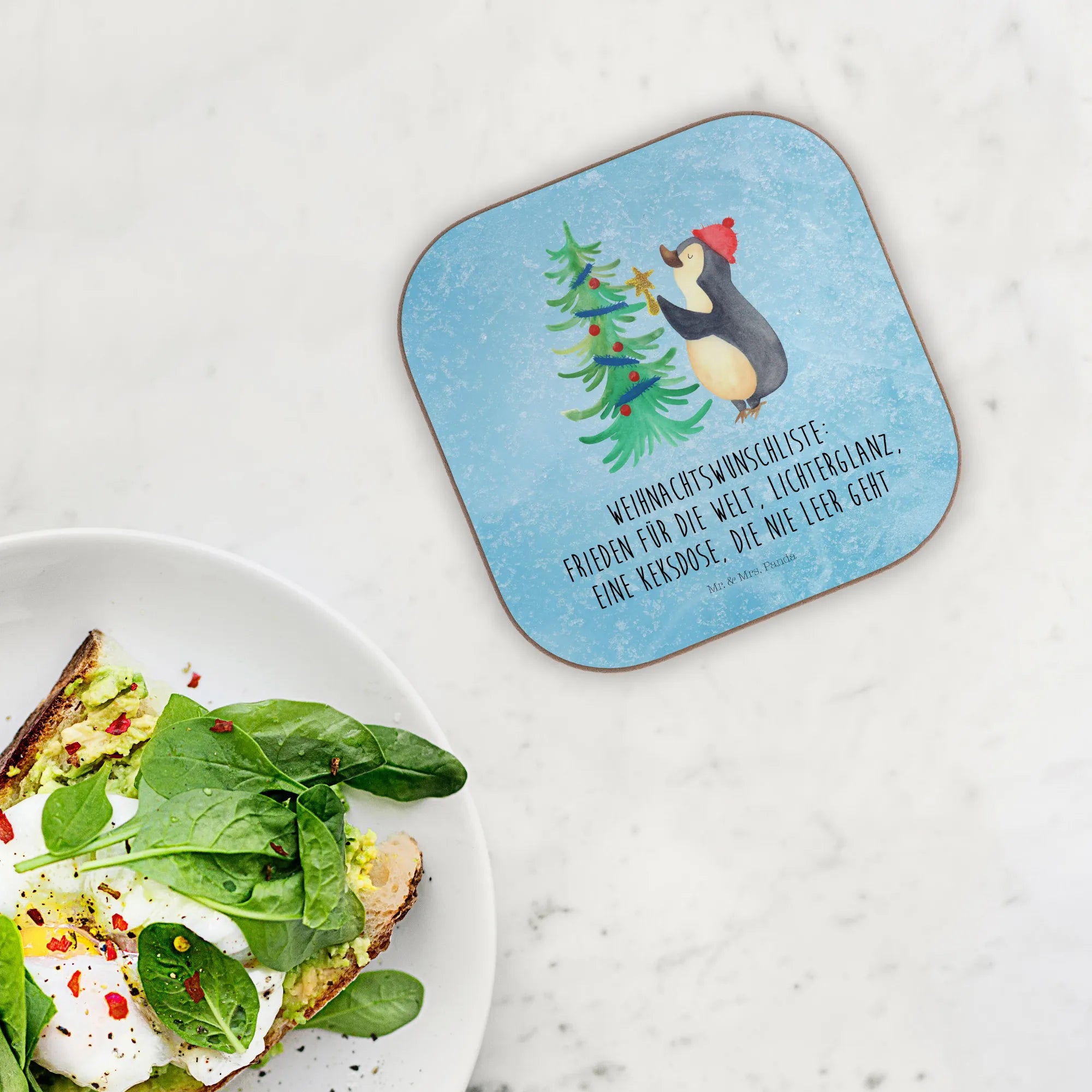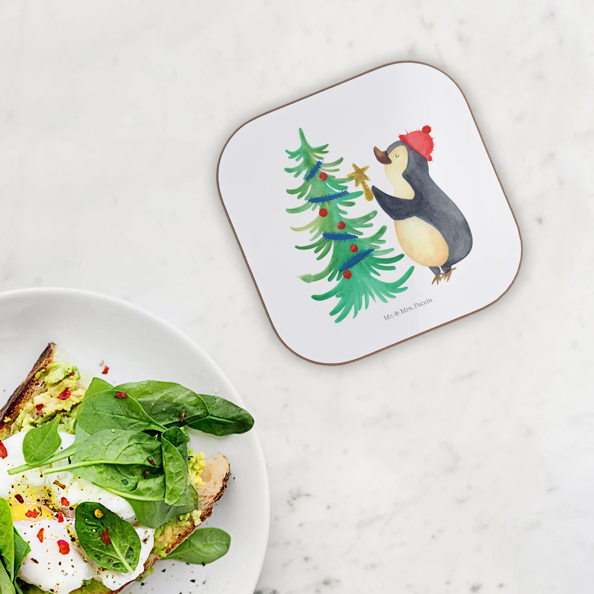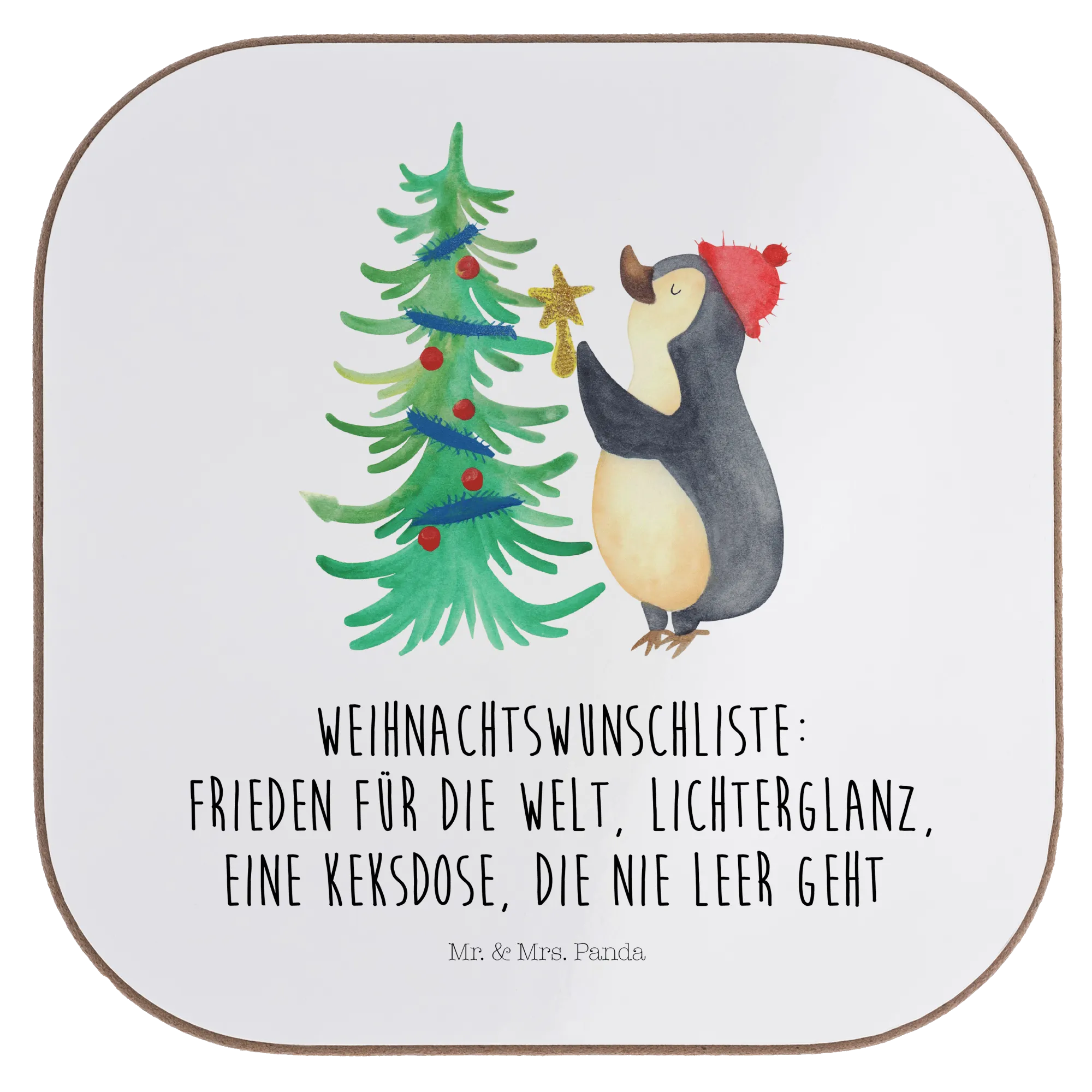 Entdecke den wundervollen Untersetzer mit dem niedlichen Pinguin Weihnachtsbaum aus der Winter Kollektion von Mr. & Mrs. Panda! Dieser quadratische Untersetzer ist nicht nur ein praktisches Accessoire, sondern auch ein echter Hingucker für dein Zuhause. Mit seinen Maßen von 100 mm x 100 mm und einer Dicke von 5 mm schützt er deinen Tisch vor unschönen Abdrücken und Kratzern.
