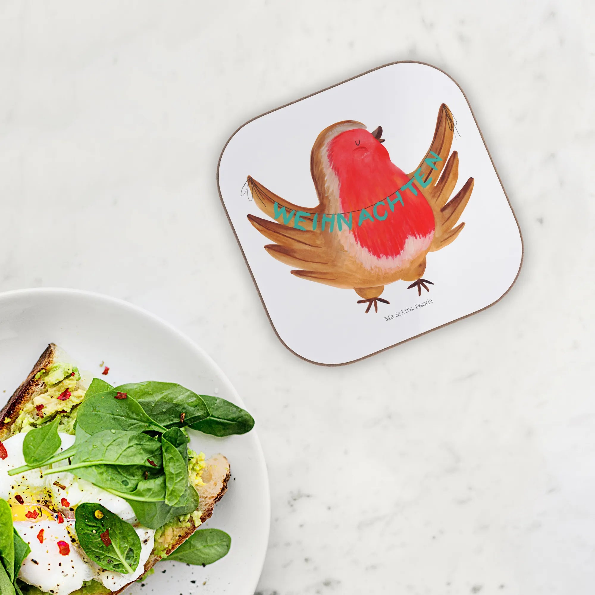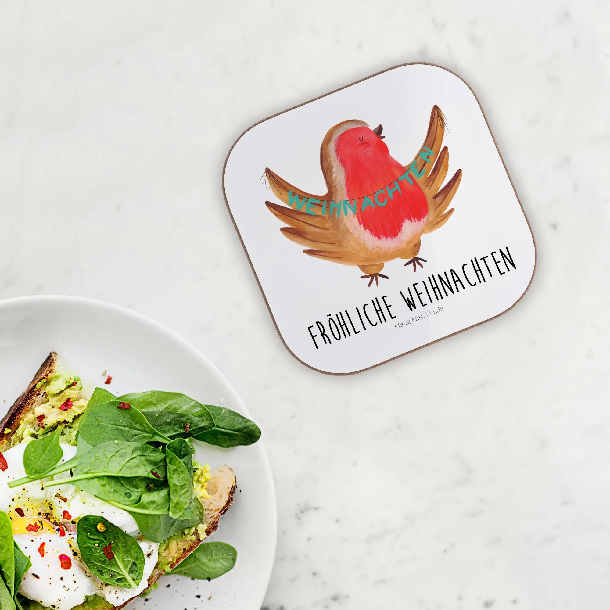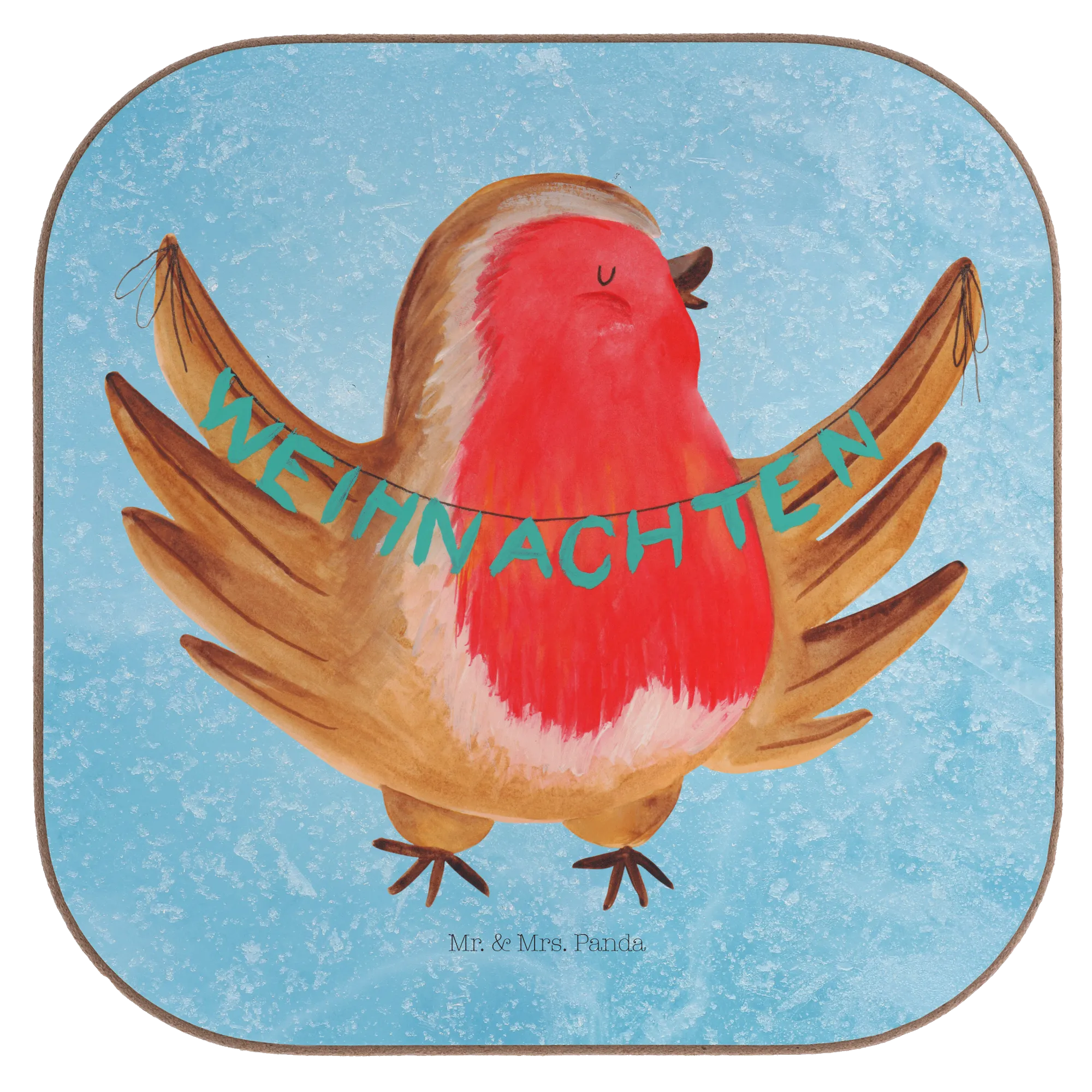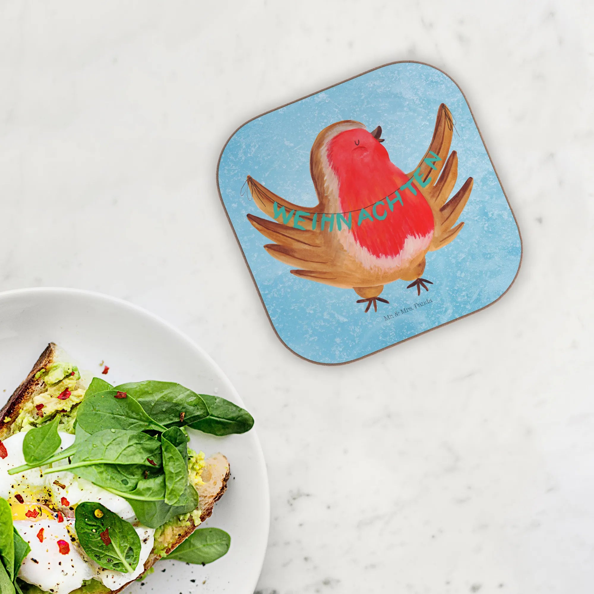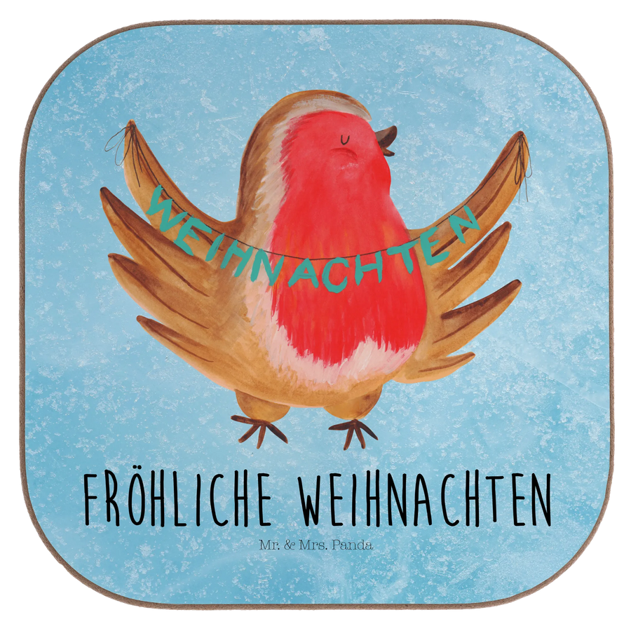 Untersetzer für Gläser Rotkehlchen Weihnachten - mit Spruch - Eisblau