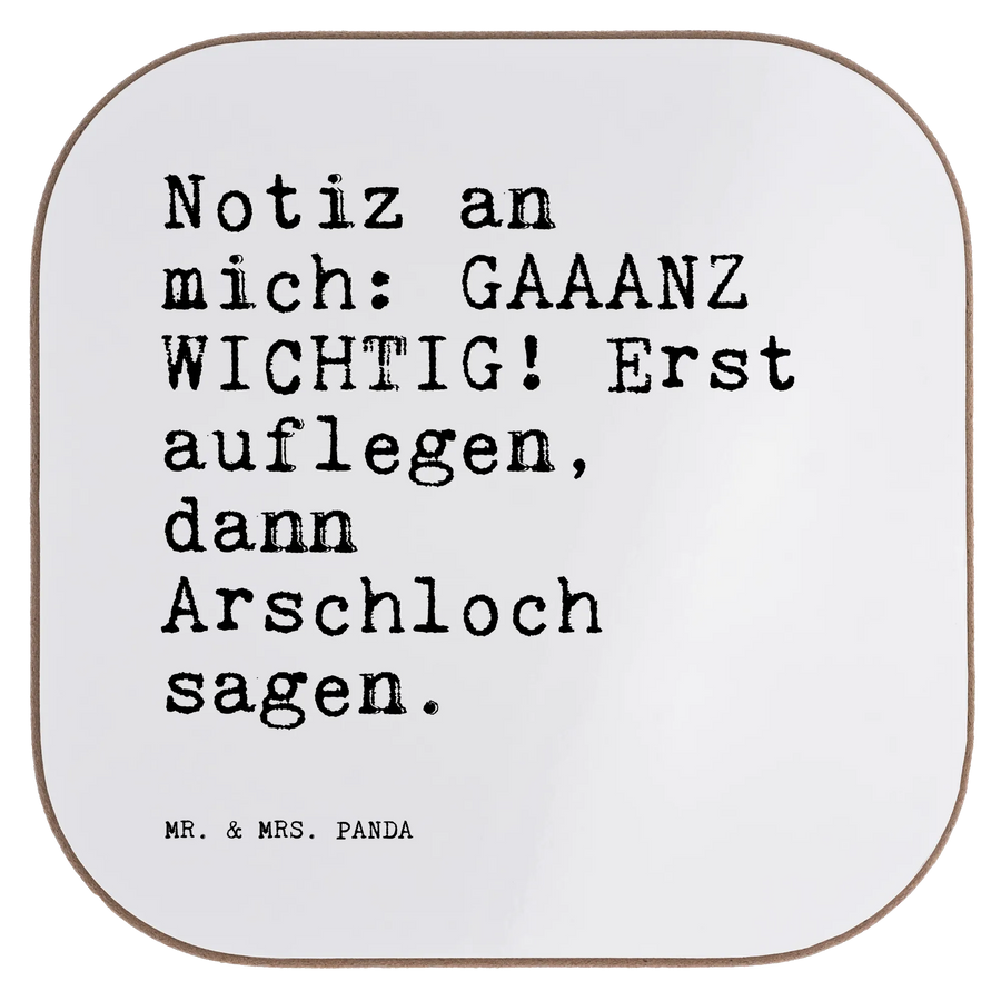 Suchst du das perfekte Geschenk für deine Freundin oder vielleicht für die nächste Party? Dann sind die Untersetzer von Mr. & Mrs. Panda genau das Richtige! Mit dem witzigen Spruch „Notiz an mich: GAAANZ WICHTIG! Erst auflegen, dann Arschloch sagen.“ bringst du garantiert ein Lächeln auf die Gesichter deiner Liebsten.