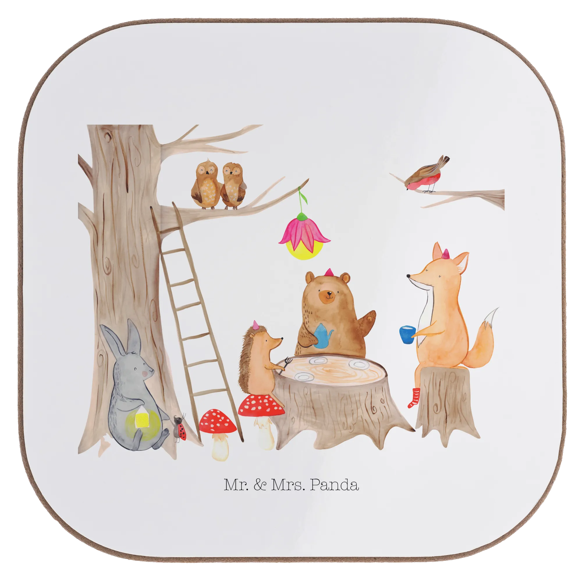Die niedlichen Tiere – Fuchs, Hase, Eichhörnchen und Maus – bringen die fröhliche Atmosphäre des Waldes direkt in dein Zuhause. Die Maße von 100 mm x 100 mm sind ideal, um auch etwas größere Tassen oder Gläser sicher abzustellen. Du kannst hier auf die schönen Grafiken vertrauen, die von Mrs. Panda liebevoll mit Aquarell handgezeichnet wurden.
