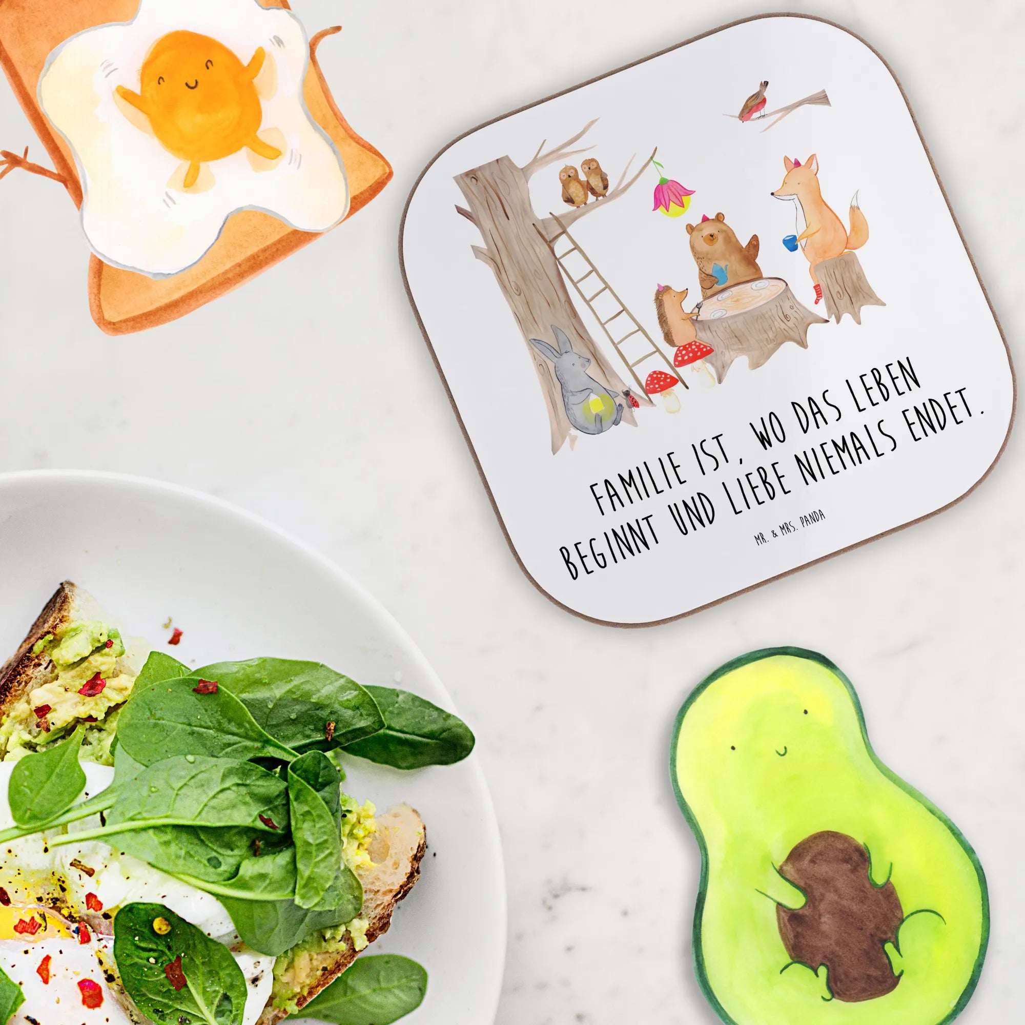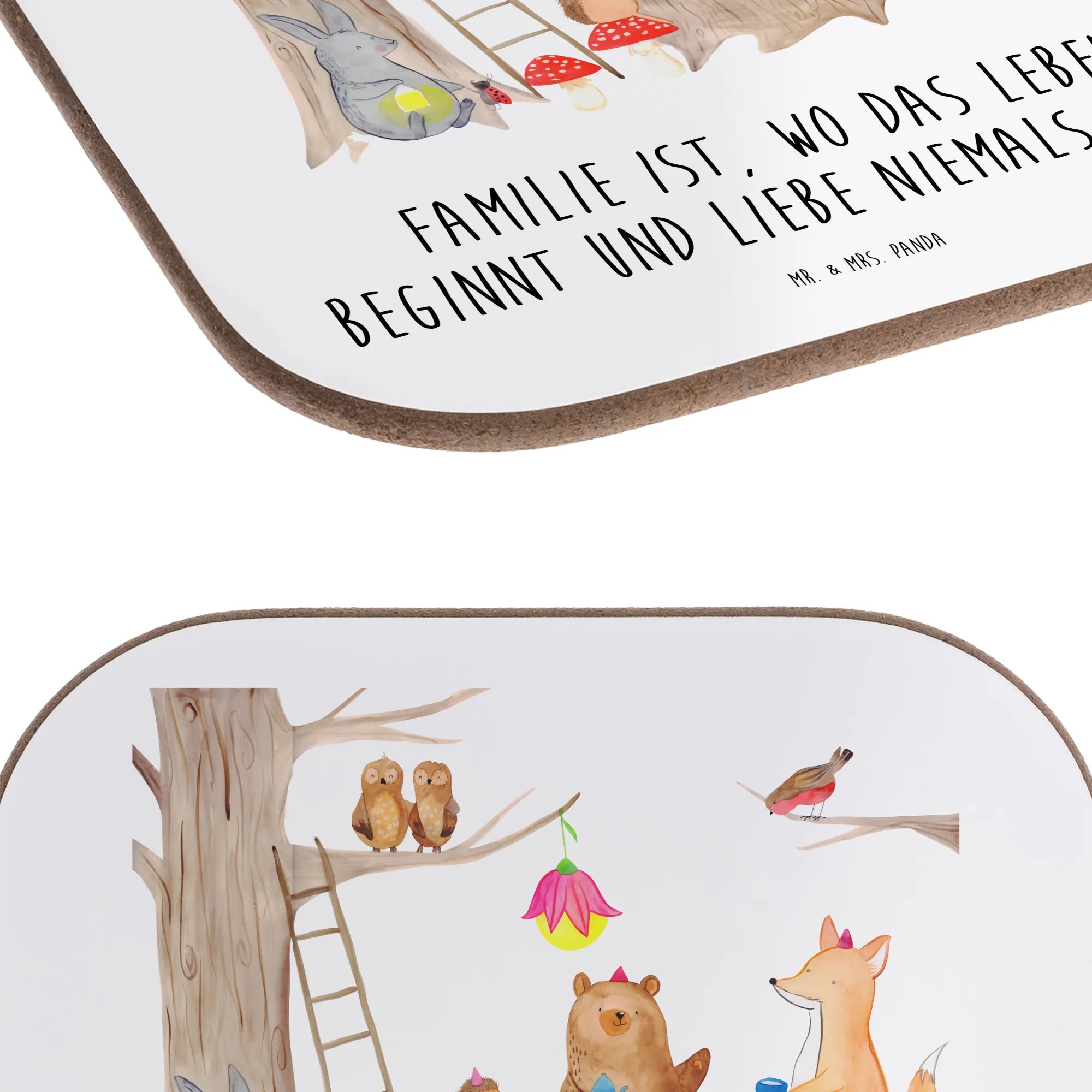 Ein Hauch Waldzauber für deinen Tisch. Der quadratische Untersetzer aus der Small World Kollektion von Mr. & Mrs. Panda bringt das Motiv „Waldtiere Picknick“ direkt zu dir nach Hause: Füchse, Hasen, Eichhörnchen, Igel und Mäuse feiern ein fröhliches Picknick und der liebe Spruch „Familie ist, wo das Leben beginnt und Liebe niemals endet.“ macht jeden Moment noch ein bisschen wärmer. 🌲🦊