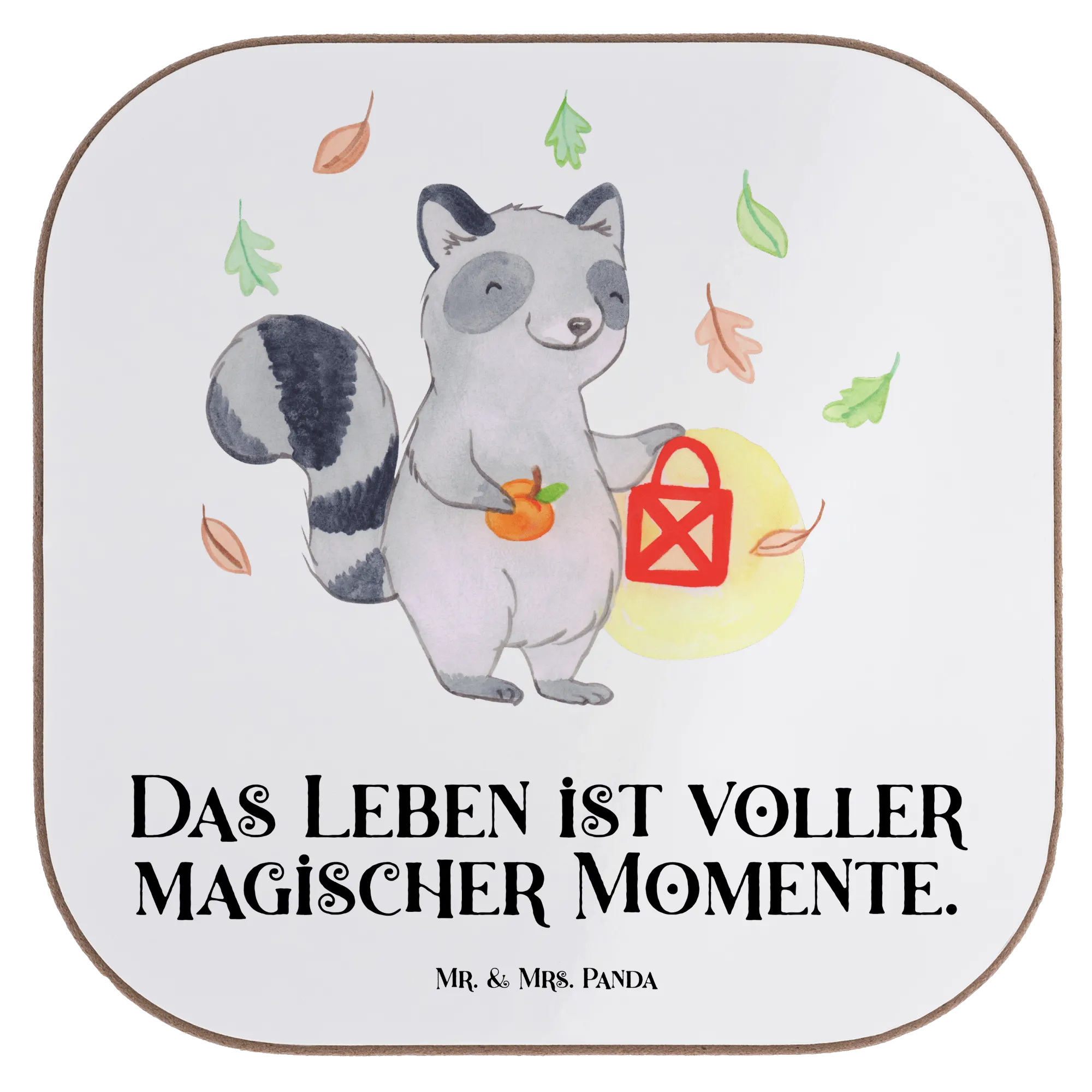 Mach dir die festliche Jahreszeit noch schöner mit unserem wundervollen Untersetzer im Halloween-Design von Mr. & Mrs. Panda! Dieser ganz besondere Untersetzer aus Holz ist bedruckt mit dem entzückenden Motiv eines Waschbären, der eine leuchtende Laterne in der Hand hält. Umgeben von buntem Herbstlaub strahlt das Design eine gemütliche, aber auch leicht gruselige Stimmung aus, die perfekt zur Halloween Zeit passt.
