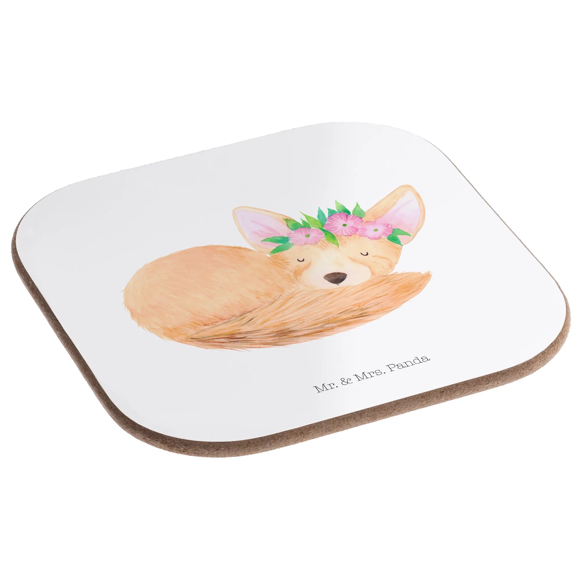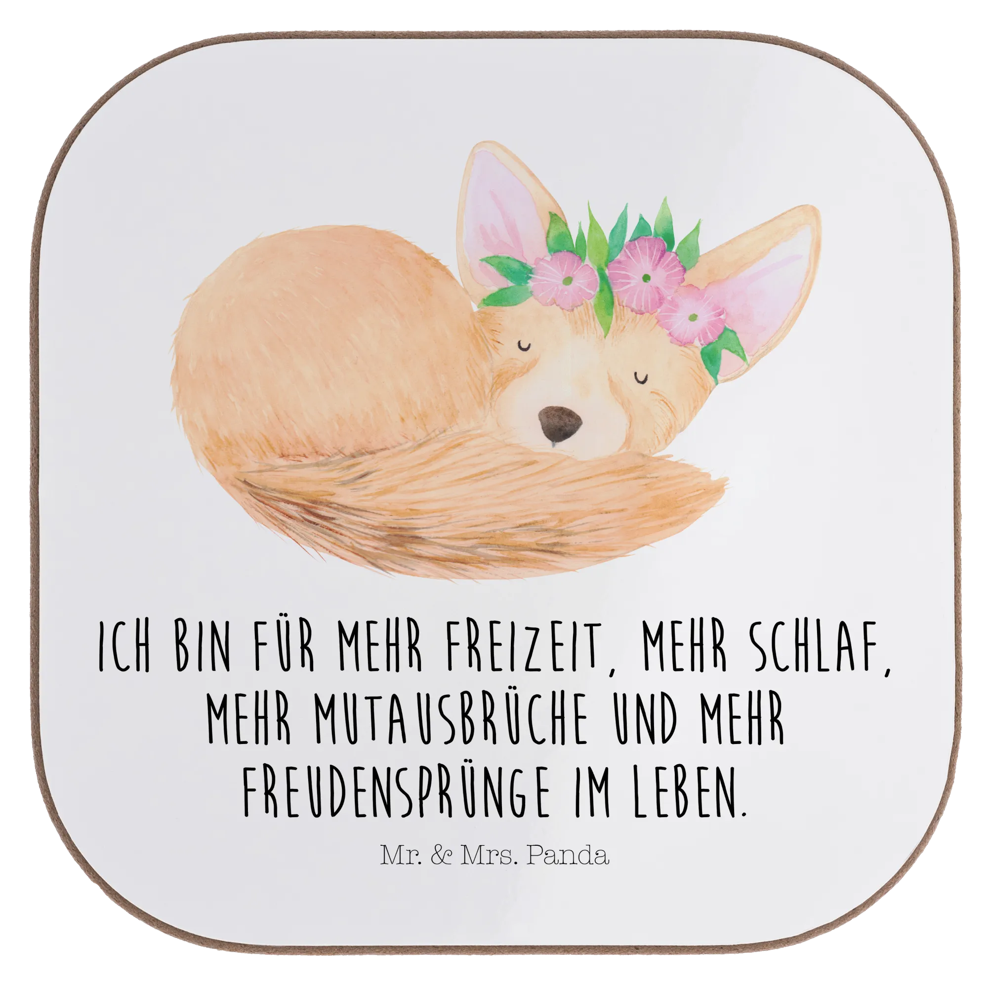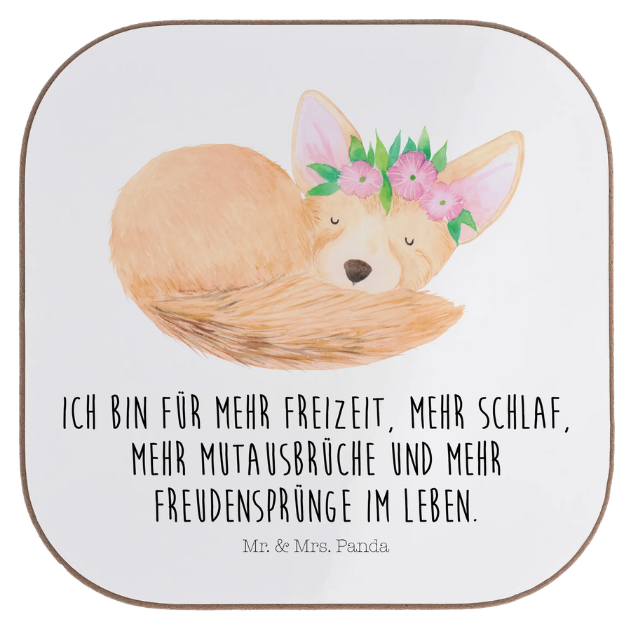 Entdecke den bezaubernden Untersetzer mit dem süßen Wüstenfuchs und dem strahlenden Blumenkranz von Mr. & Mrs. Panda! 🦊🌼 Dieser wunderschöne quadratische Untersetzer (100 mm x 100 mm) ist nicht nur ein praktisches Accessoire für deinen Tisch, sondern auch ein echter Hingucker! Mit einem stilvollen Design und einer glänzenden, hochwertigen Oberfläche schützt er deinen Tisch vor Abdrücken, Kratzern und extremen Temperaturen.