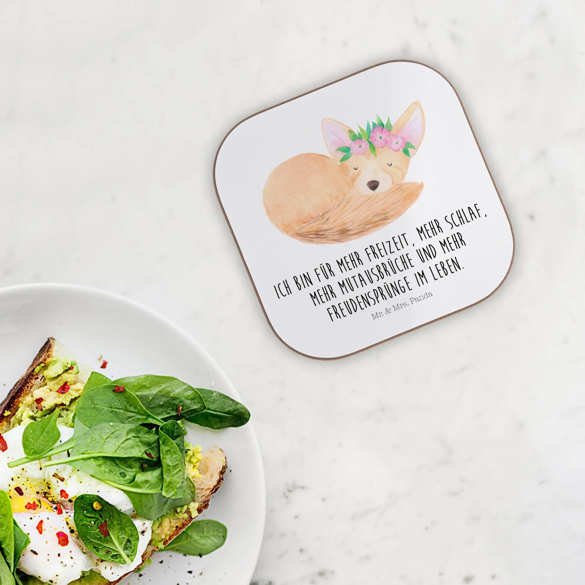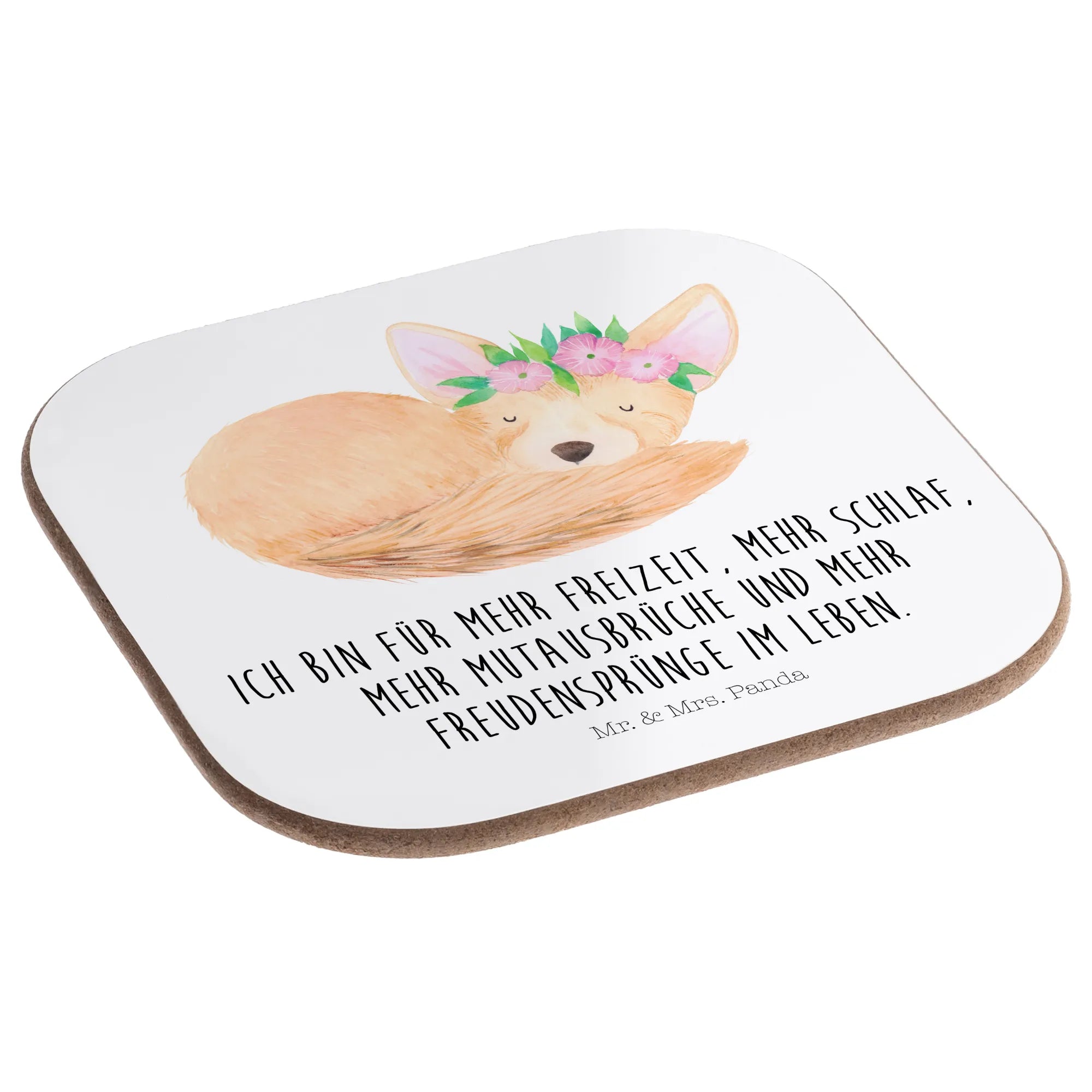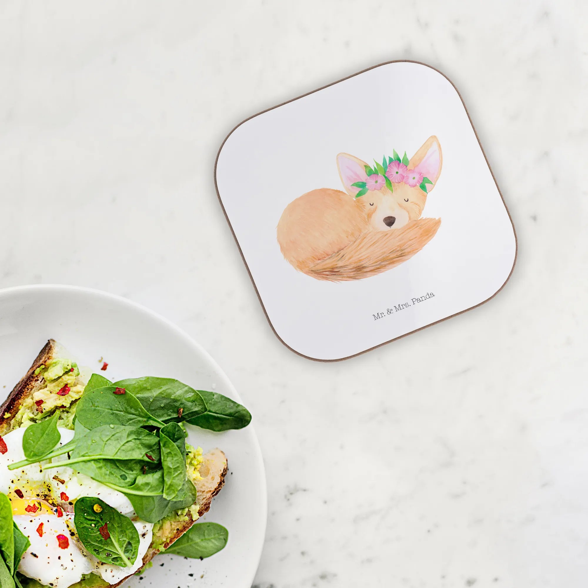 Entdecke den bezaubernden Untersetzer mit dem süßen Wüstenfuchs und dem strahlenden Blumenkranz von Mr. & Mrs. Panda! 🦊🌼 Dieser wunderschöne quadratische Untersetzer (100 mm x 100 mm) ist nicht nur ein praktisches Accessoire für deinen Tisch, sondern auch ein echter Hingucker! Mit einem stilvollen Design und einer glänzenden, hochwertigen Oberfläche schützt er deinen Tisch vor Abdrücken, Kratzern und extremen Temperaturen.
