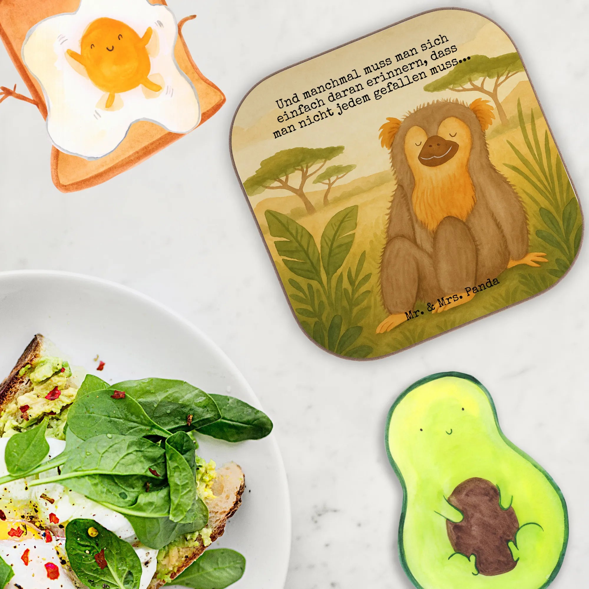 In einer Welt, die oft nach Perfektion strebt, bringt unser fröhlicher Affe eine Botschaft von Selbstliebe und Authentizität. „Und manchmal muss man sich einfach daran erinnern, dass man nicht jedem gefallen muss...“. Diese Weisheit ermutigt uns, uns selbst zu akzeptieren, auch mit unseren Macken und Unvollkommenheiten. Der Affe versprüht Lebensfreude und zeigt uns, dass es viel schöner ist, echt zu sein, als sich ständig anzupassen. Er erinnert uns daran, dass echte Liebe bei uns selbst beginnt und dass wir mit Respekt und Aufmerksamkeit für unsere eigenen Bedürfnisse sorgen sollten. Lebe dein Leben authentisch und feiere dich selbst!