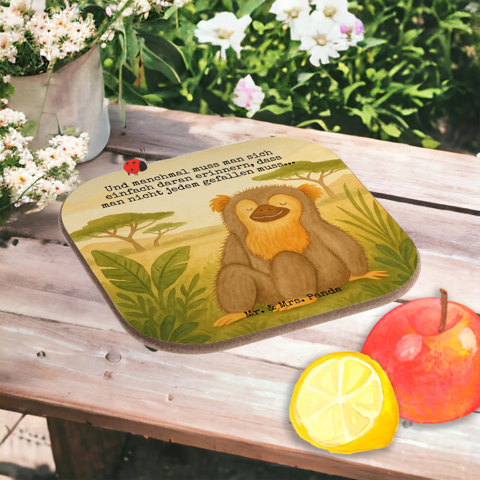 Präsentiert wird der charmante Untersetzer von Mr. & Mrs. Panda in einem ansprechenden quadratischen Design mit einer Größe von 100 mm x 100 mm und einer Dicke von 5 mm. Dieser Untersetzer ist nicht nur praktisch, sondern bringt auch eine fröhliche Note auf deinen Tisch! Er schützt effektiv vor unschönen Abdrücken und Kratzern und hält starken Temperaturschwankungen stand. Mit liebevollen Motiven sorgt dieser Untersetzer nicht nur für Funktionalität, sondern auch für stilvolle Akzente in deiner Wohnlandschaft! Zudem ist er pflegeleicht und kann ganz einfach mit einem feuchten Tuch gereinigt werden. Ein Muss für jeden Haushalt!