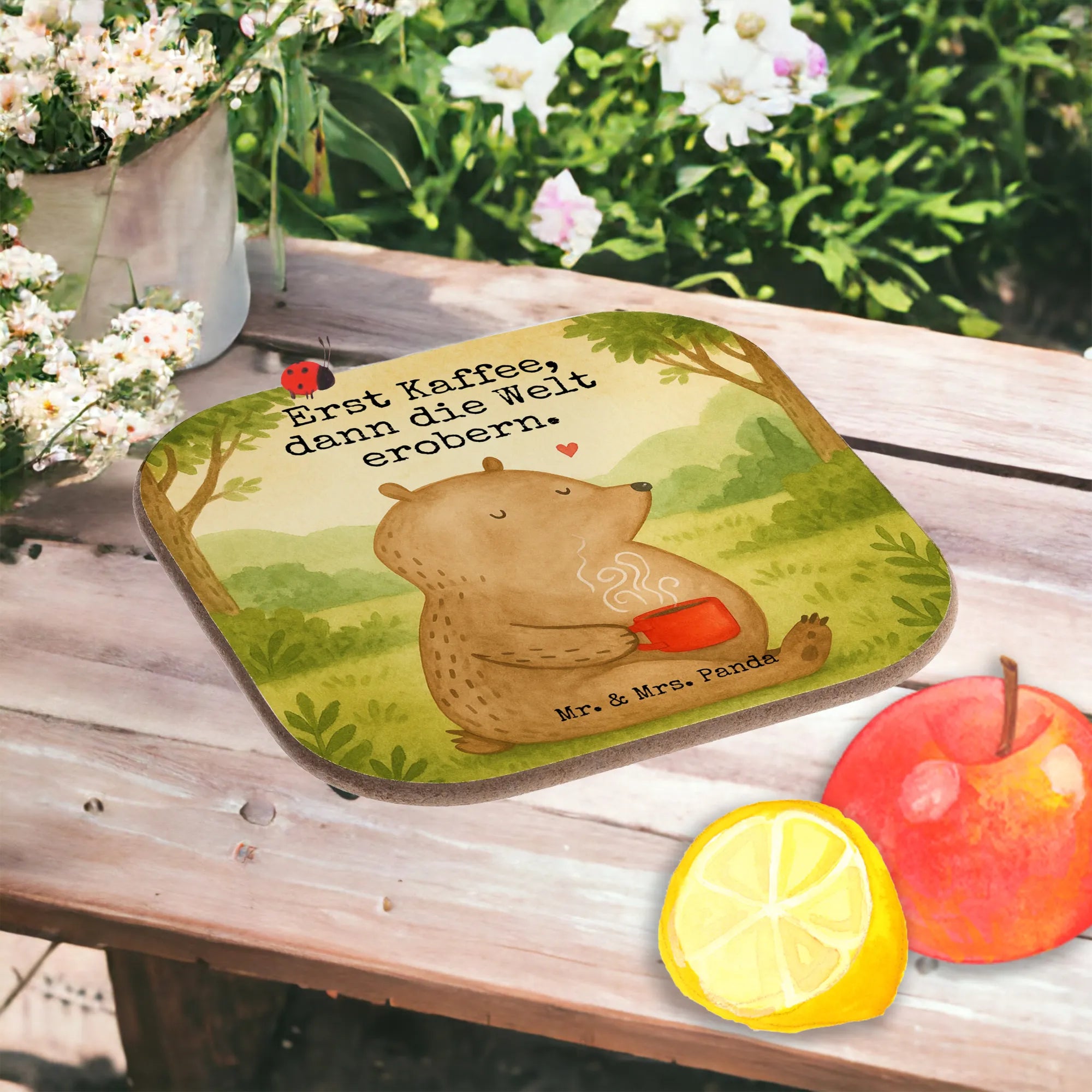 Präsentiert wird der charmante Untersetzer von Mr. & Mrs. Panda in einem ansprechenden quadratischen Design mit einer Größe von 100 mm x 100 mm und einer Dicke von 5 mm. Dieser Untersetzer ist nicht nur praktisch, sondern bringt auch eine fröhliche Note auf deinen Tisch! Er schützt effektiv vor unschönen Abdrücken und Kratzern und hält starken Temperaturschwankungen stand. Mit liebevollen Motiven sorgt dieser Untersetzer nicht nur für Funktionalität, sondern auch für stilvolle Akzente in deiner Wohnlandschaft! Zudem ist er pflegeleicht und kann ganz einfach mit einem feuchten Tuch gereinigt werden. Ein Muss für jeden Haushalt!