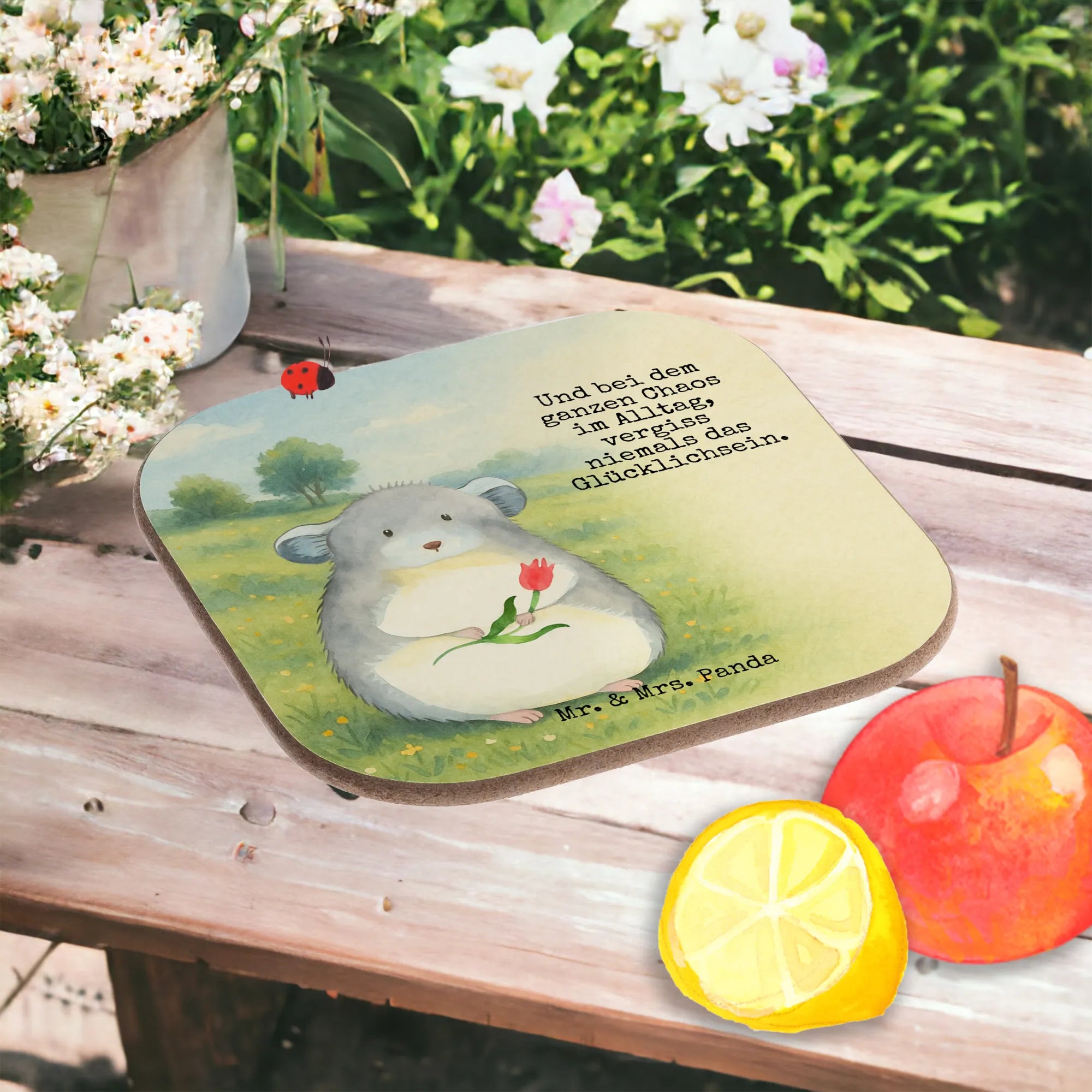 Untersetzer Chinchilla Blume Design - mit Spruch