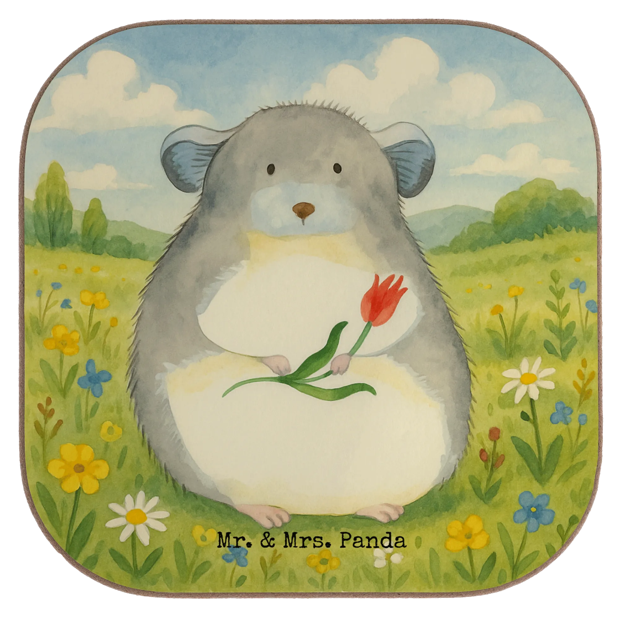Mr. & Mrs. Panda Hoffnungsvoller Chinchilla mit Blume - Zeichen der Liebe und Freude im Büroalltag