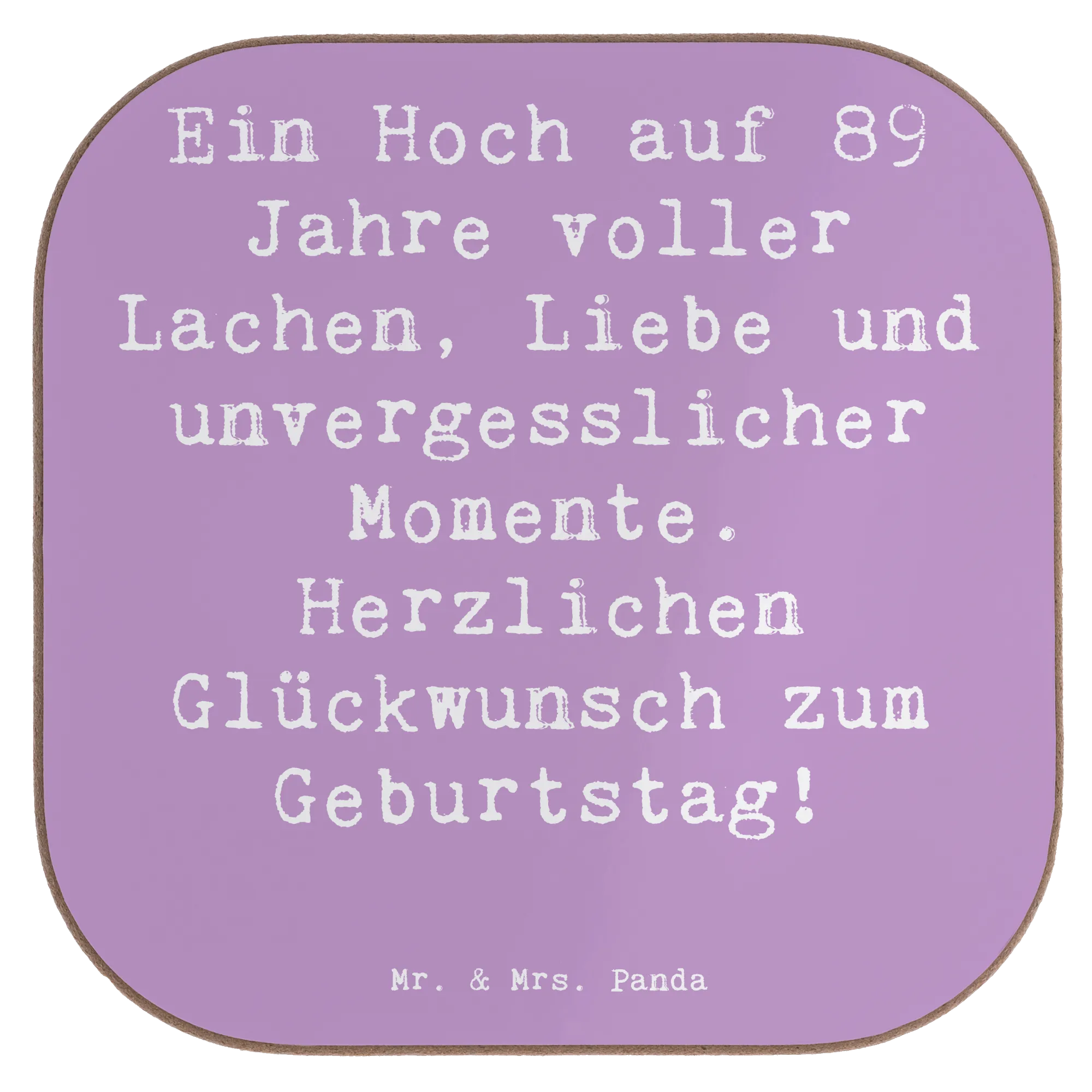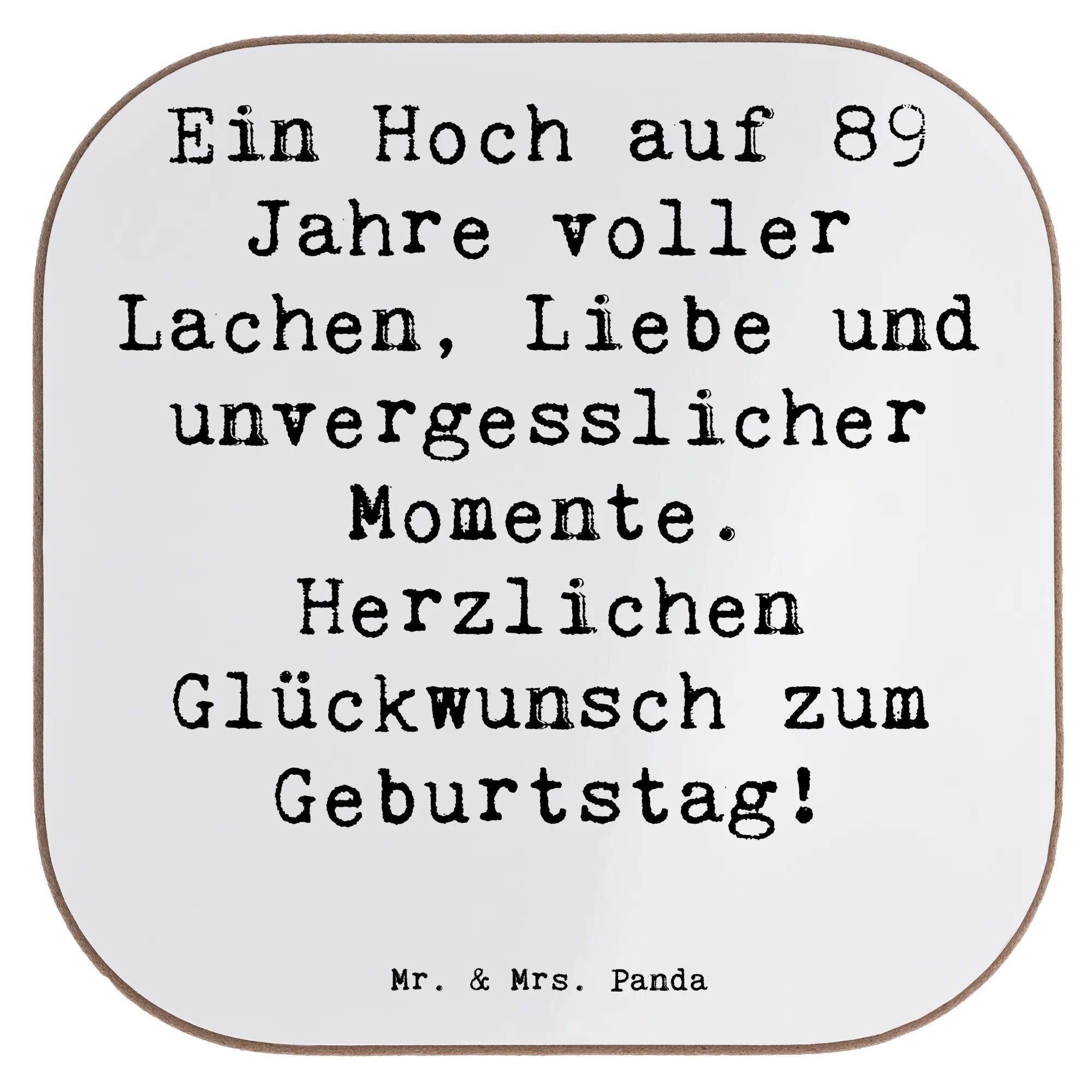Ein 89. Geburtstag ist ein Moment des Innehaltens und der Freude über ein langes, erfülltes Leben. 🎂 Unser quadratischer Untersetzer von Mr. & Mrs. Panda ist das ideale Geschenk, um diesen besonderen Tag zu ehren. Mit dem herzlichen Slogan "Ein Hoch auf 89 Jahre voller Lachen, Liebe und unvergesslicher Momente" schenkst du nicht nur ein nützliches Accessoire, sondern eine tägliche Portion Glück.