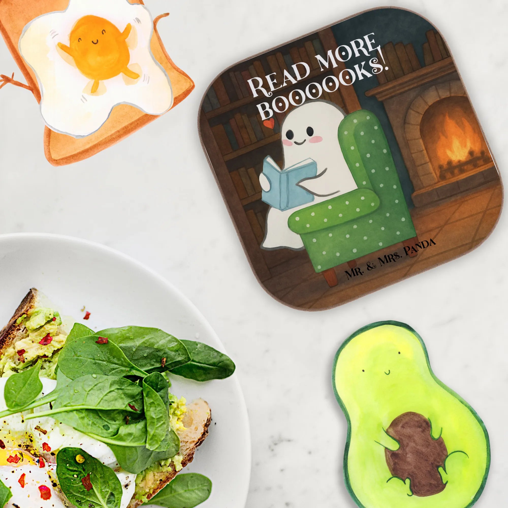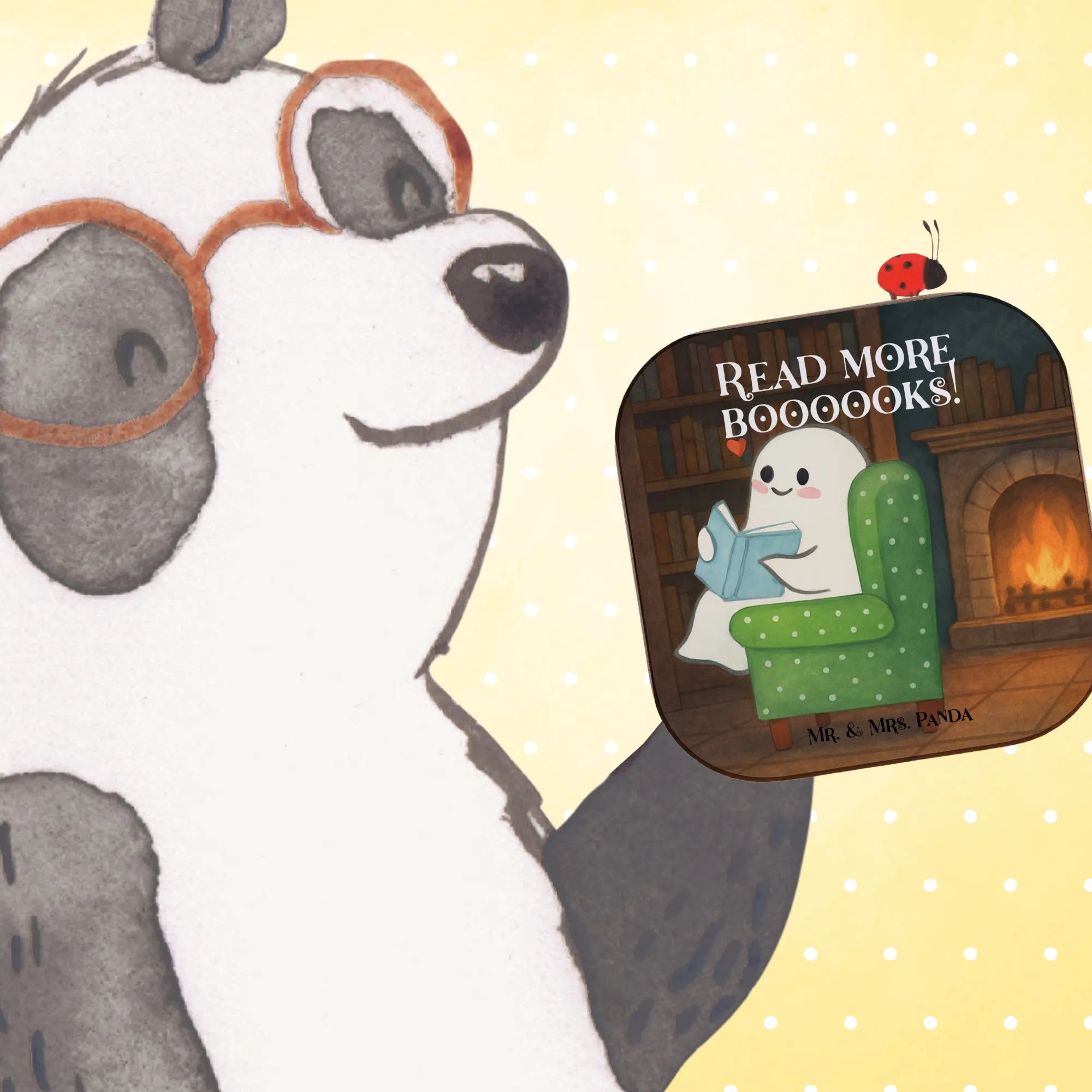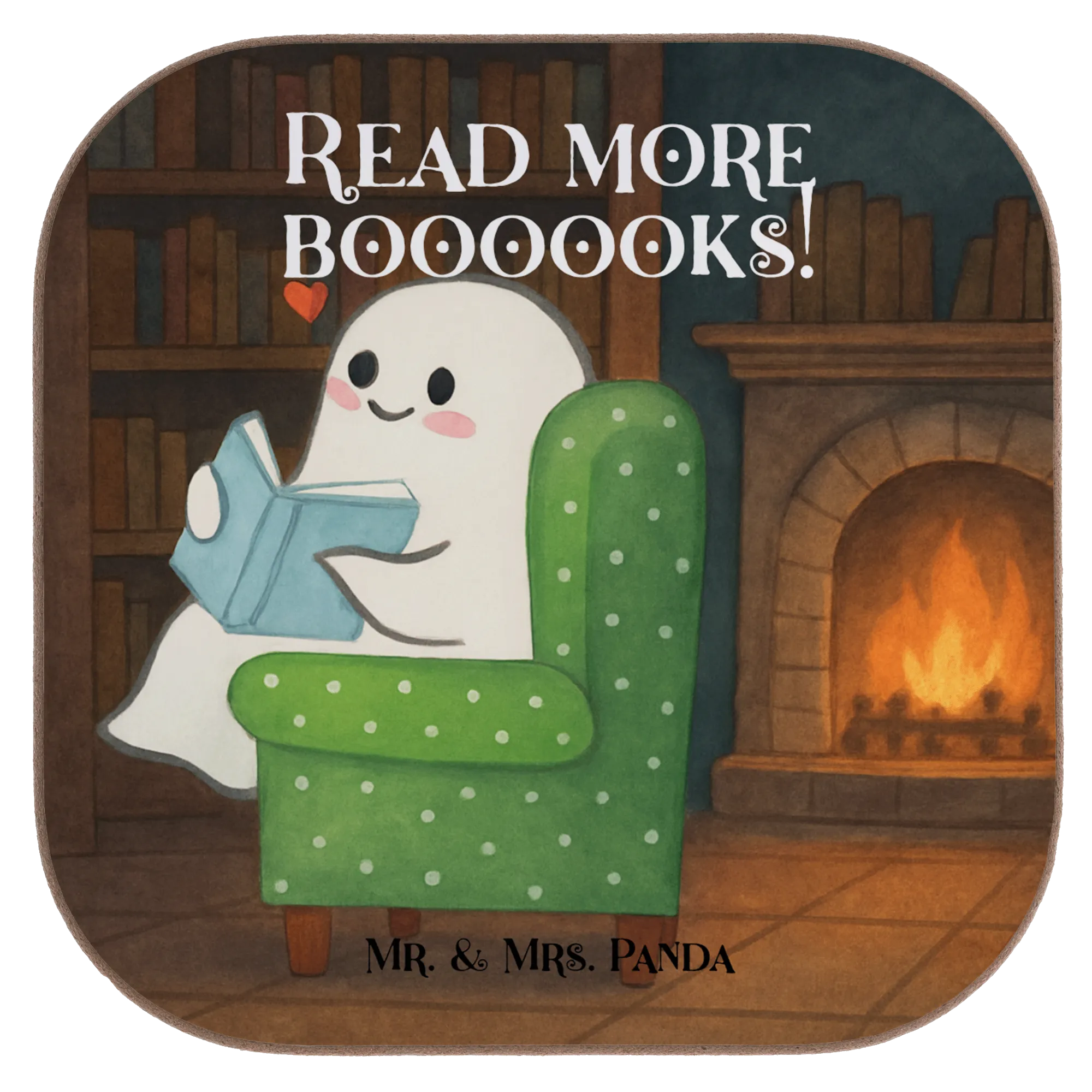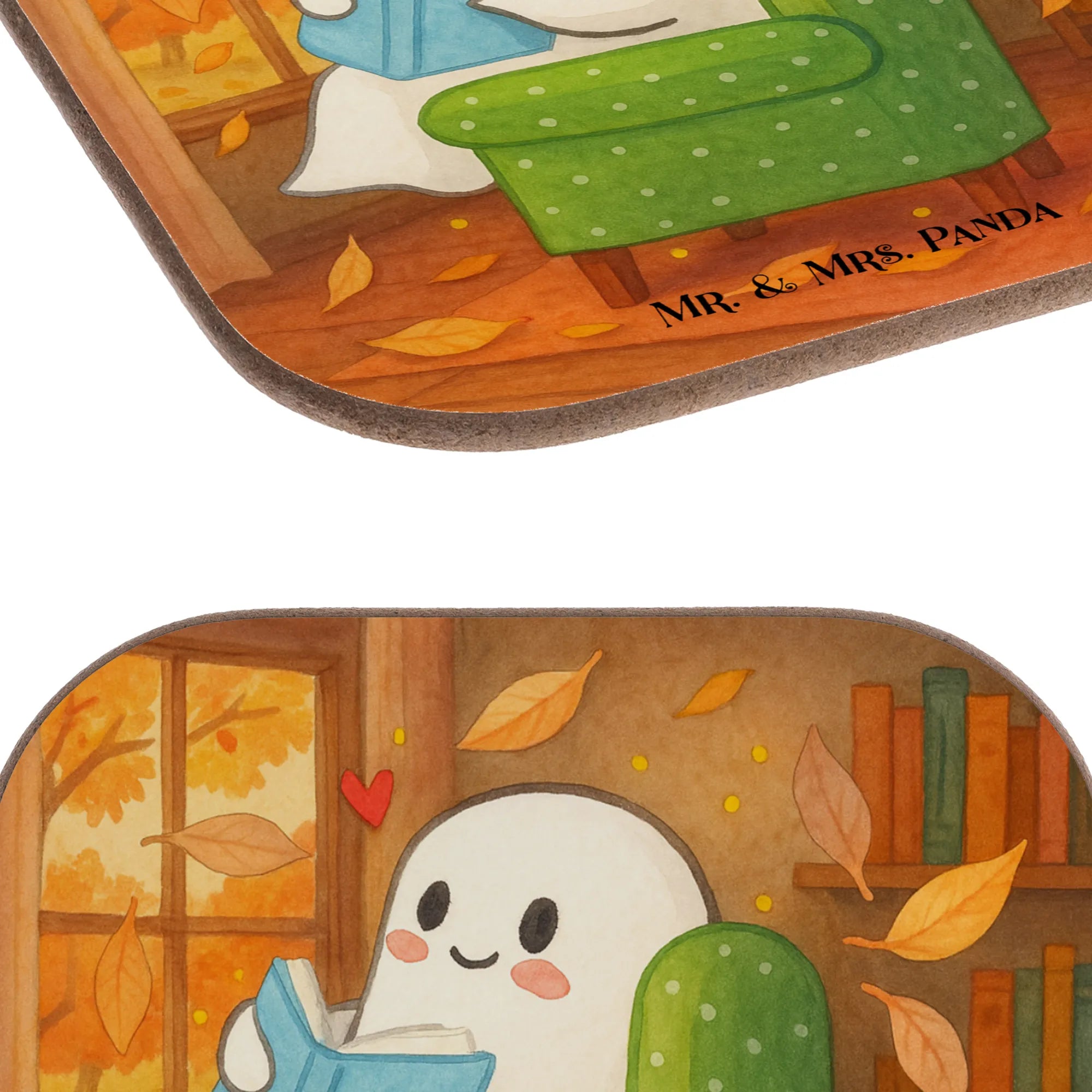 Mr. & Mrs. Panda Untersetzer „Gespenst Buch“ – perfekt für gemütliche Herbstabende, Lese-Sessions und niedliche Halloween-Deko. Das liebevoll illustrierte Gespenst sitzt in einem grünen Sessel und liest ein blaues Buch, umgeben von fallenden Herbstblättern und einem kleinen roten Herz. Dieses Motiv zaubert sofort Wohlfühlstimmung in Dein Zuhause. 🍂📚👻