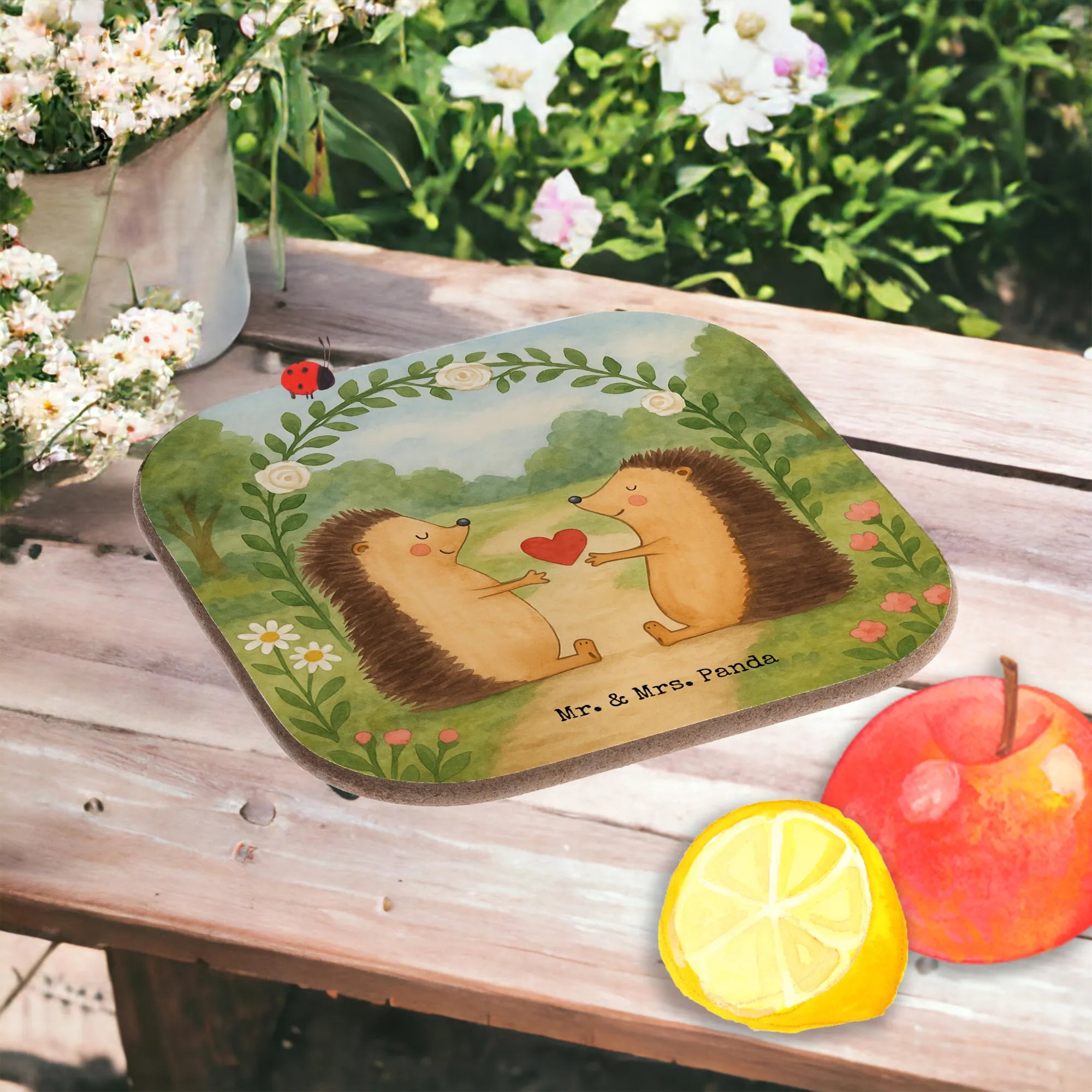 Tassenuntersetzer Hochzeit Igel Design - mit Spruch