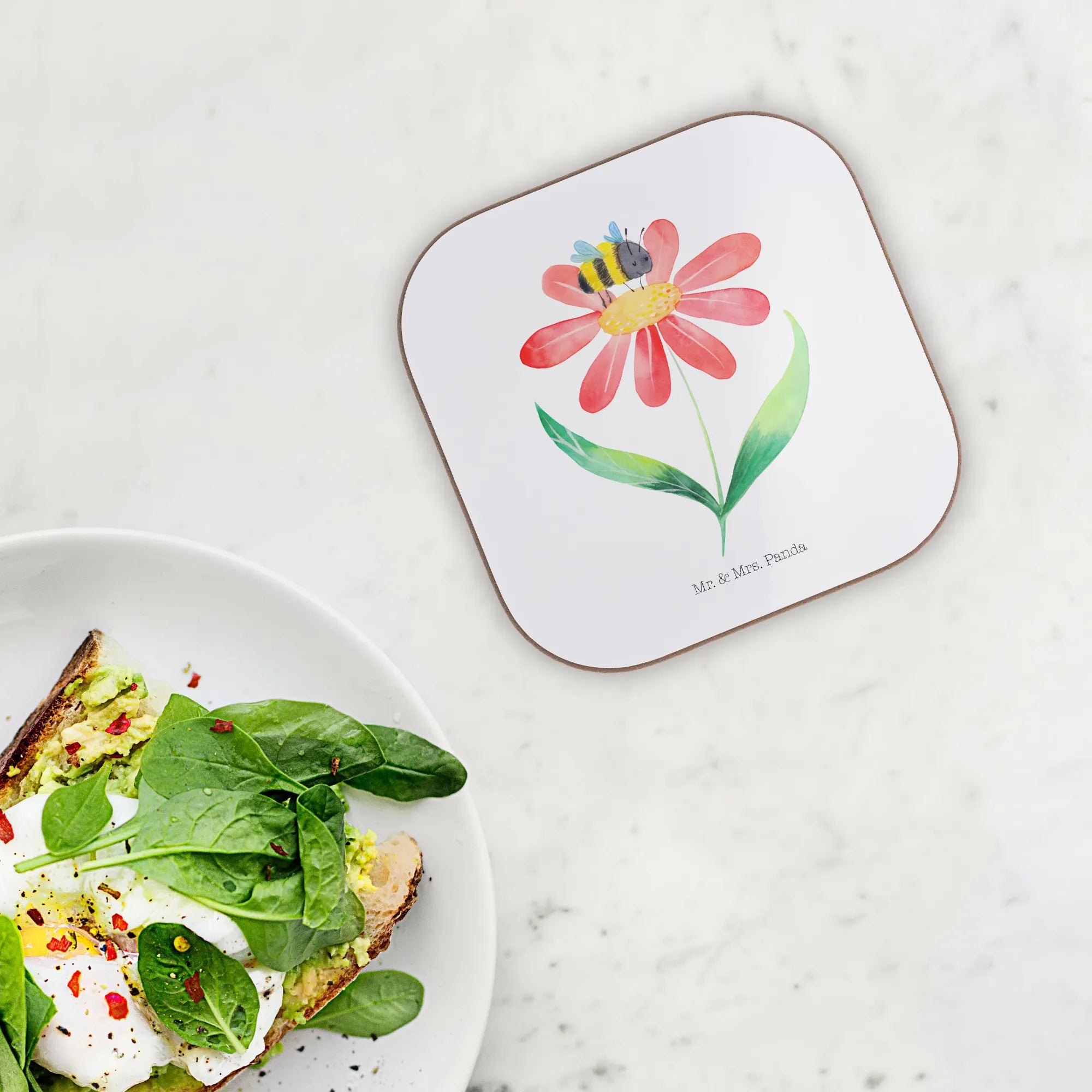 Liebevoll handgezeichnet von Mr. & Mrs. Panda zeigt dieser Untersetzer eine bezaubernde Hummel, die auf einer Blüte landet. Die bunten Farben und die süße Illustration bringen den fröhlichen Summen der Bienen in dein Zuhause und erinnern uns daran, dass auch kleine Wesen Großes bewirken können.