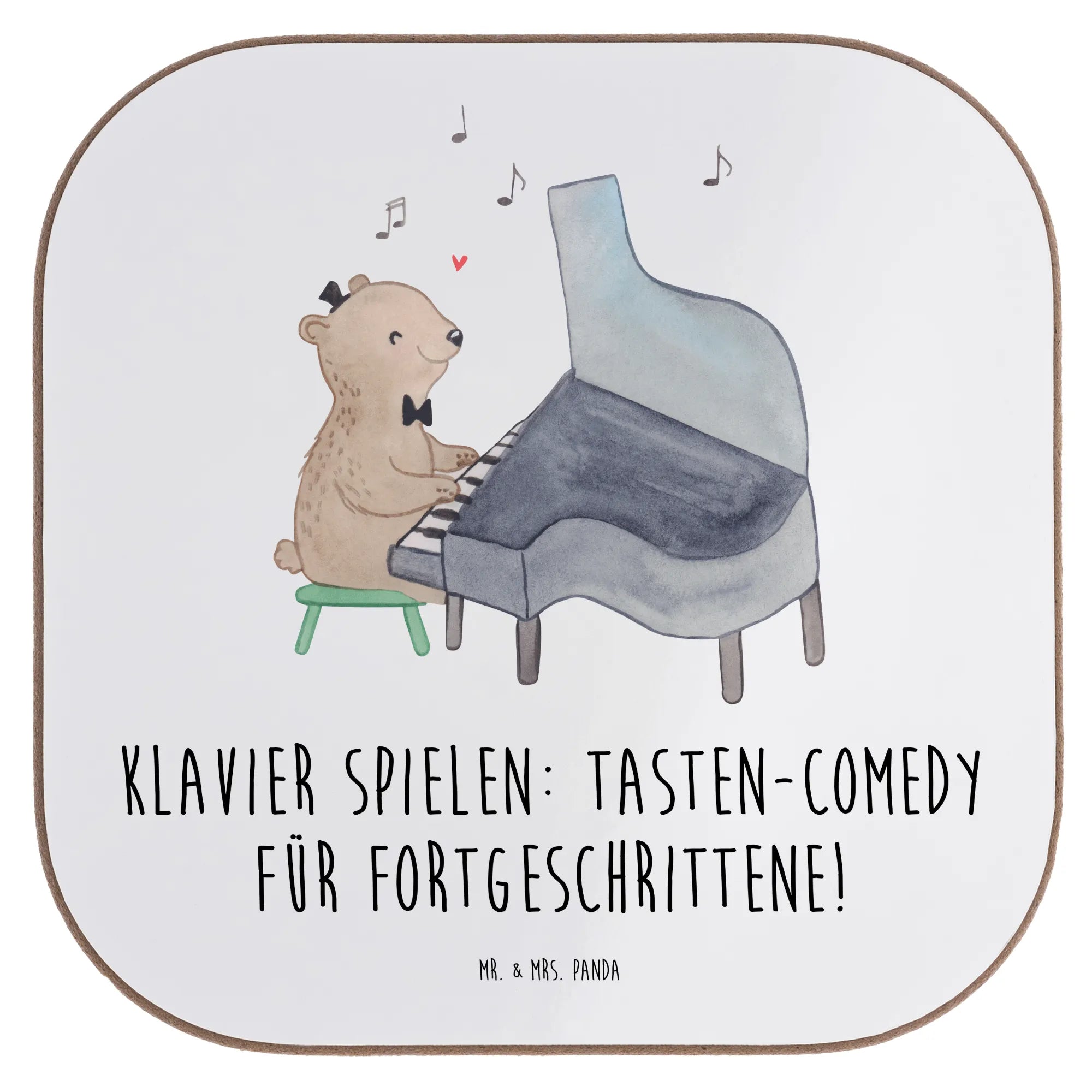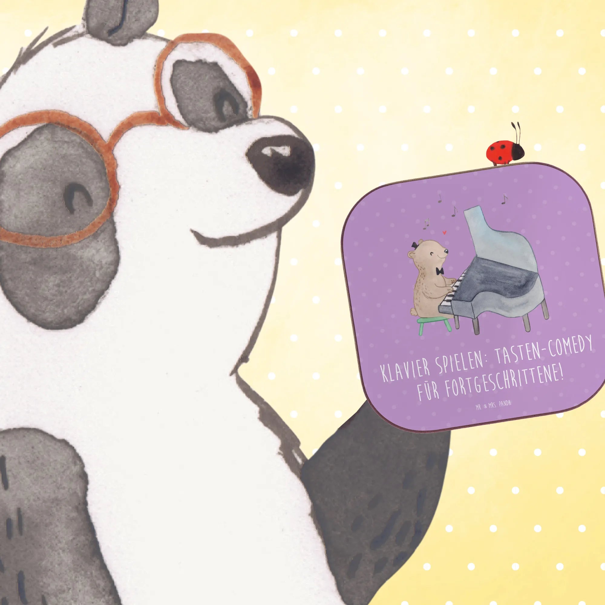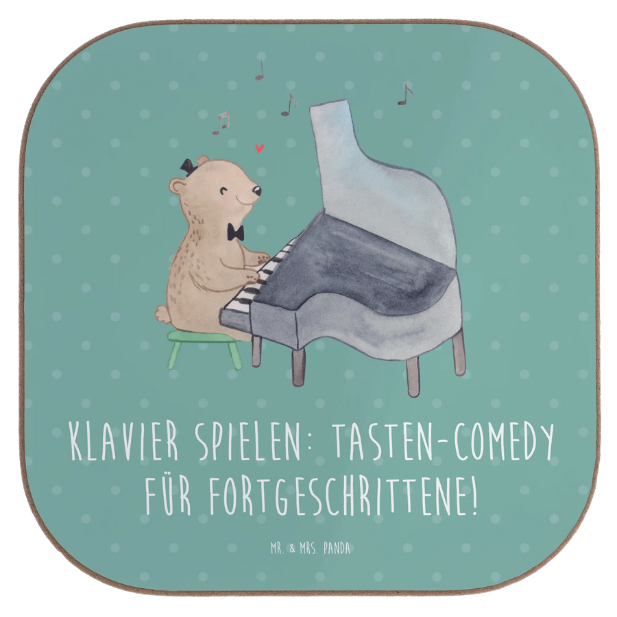 Ein wunderschöner quadratischer Untersetzer von Mr. & Mrs. Panda aus der Kollektion Musizieren & Instrumente – bedruckt mit dem liebevollen Klavier-Motiv. Die sanften Elfenbeintasten vor dem zarten Lavendeltraum-Hintergrund und der humorvolle Spruch „Klavier spielen: Tasten-Comedy für Fortgeschrittene!“ machen diesen Untersetzer zu einem kleinen Kunstwerk für deinen Tisch.