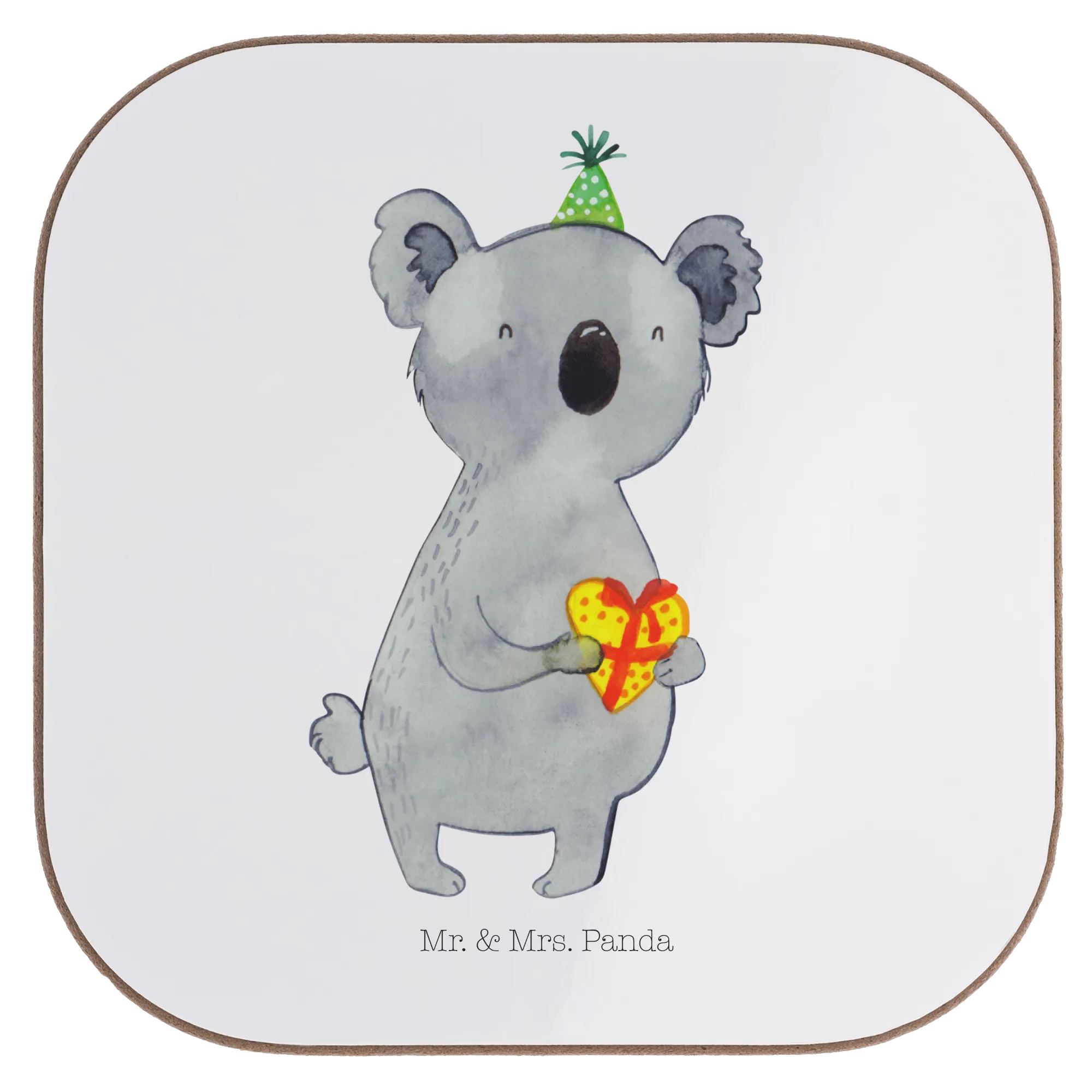 Mr. & Mrs. Panda Koala Motiv – kleiner Koala mit Partyhut & Herzgeschenk, perfekt für Fans & Tierliebhaber