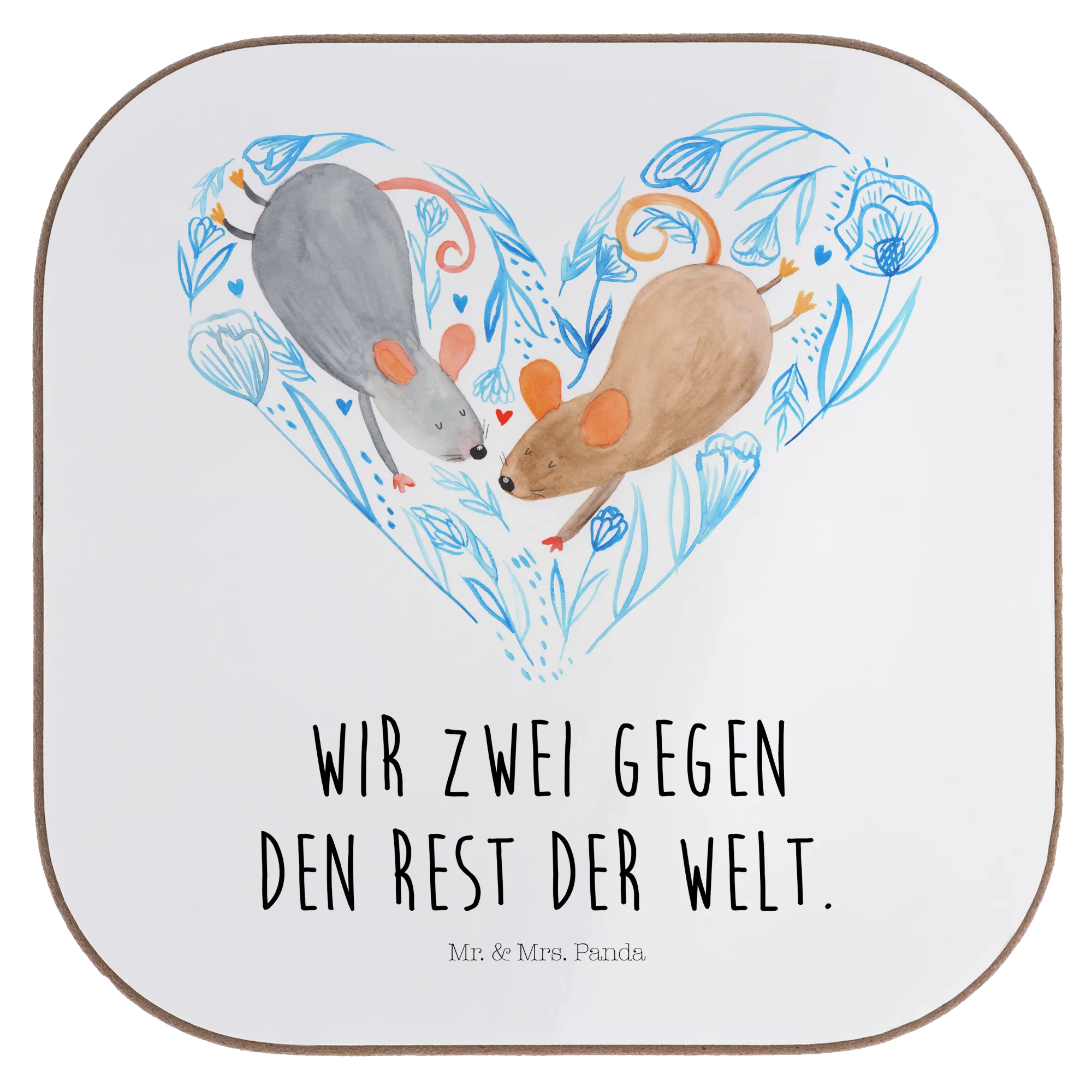 In der zauberhaften Welt von Mr. & Mrs. Panda erstrahlen zwei niedliche Mäuse in einem liebevollen Herzen. Ihre sanften Aquarellfarben, grau und beige, umhüllen uns mit einem Gefühl von Wärme und Geborgenheit. Die Mäuse, die sich mit ihren Schwänzen zu einem Herz vereinen, verkörpern die Kraft der Liebe und die Verbundenheit zwischen zwei Menschen. Zarte florale Elemente und kleine Herzen im Hintergrund unterstreichen das romantische Ambiente und geben dem Bild eine besondere Note. Mit dem Motto 'Wir zwei gegen den Rest der Welt' erinnern uns diese beiden Mäuse daran, dass die wahre Liebe alle Hindernisse überwinden kann. Ob als Liebesbeweis, zum Jahrestag oder einfach als Geschenk für den Lieblingsmenschen – dieses Motiv bringt mit seiner liebevollen Botschaft joy und positivity in jeden Raum. Es ist ein wunderschönes Liebesgeschenk, das die Herzen höher schlagen lässt und zum Schmunzeln einlädt. Diese schöne Darstellung von Gemeinsamkeit ist ein wahrer Schatz in der modernen Welt.