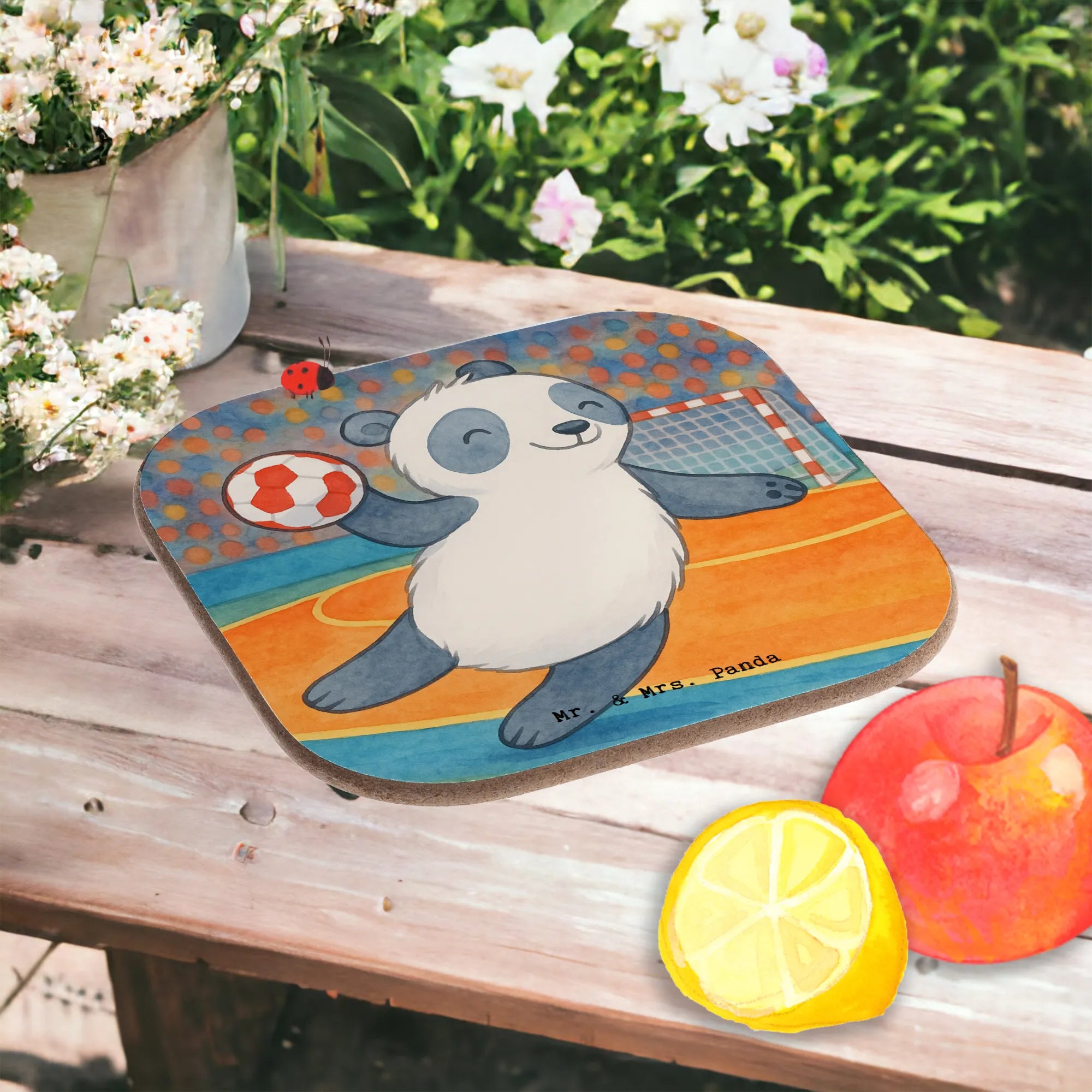 Untersetzer für Gläser Panda Handball spielen Design