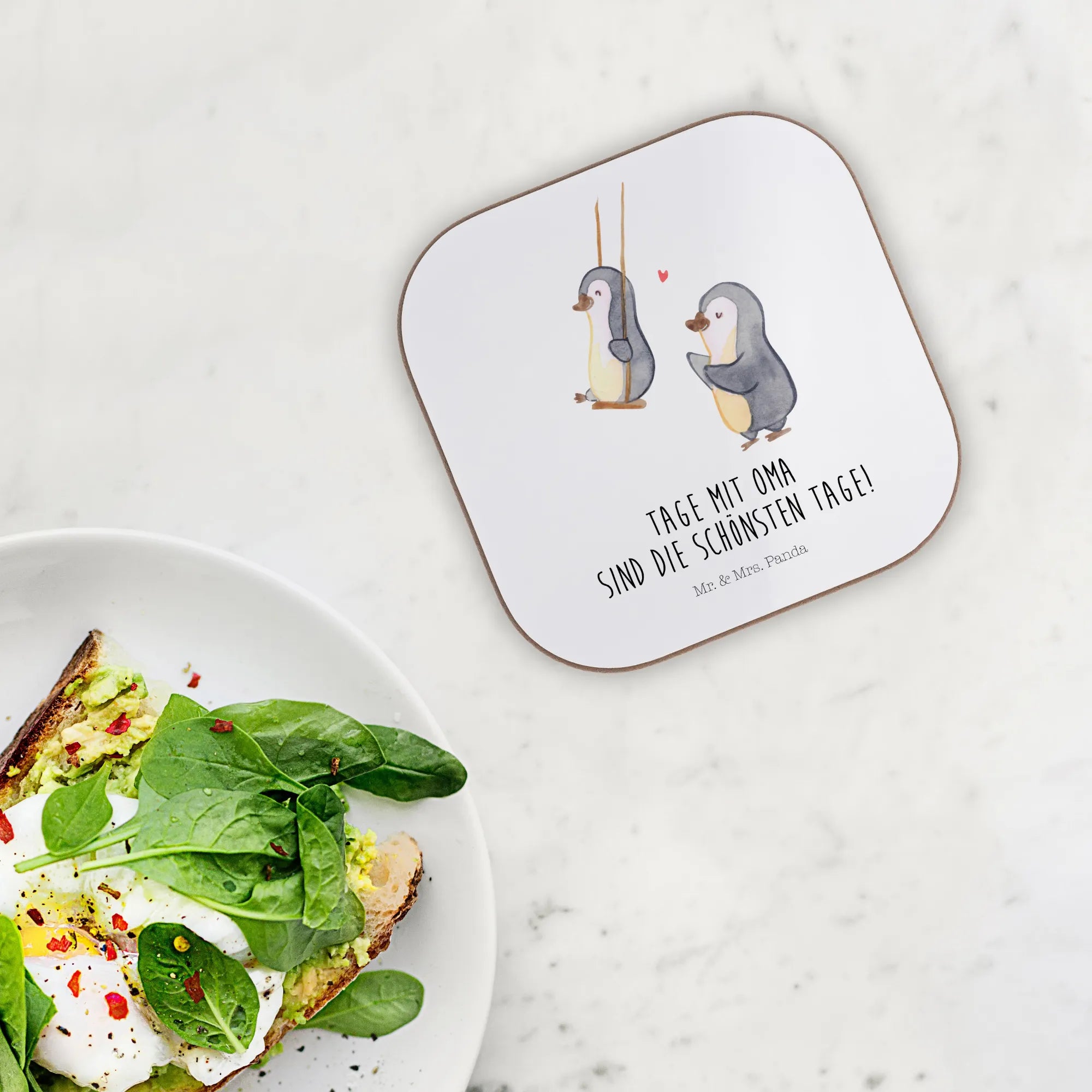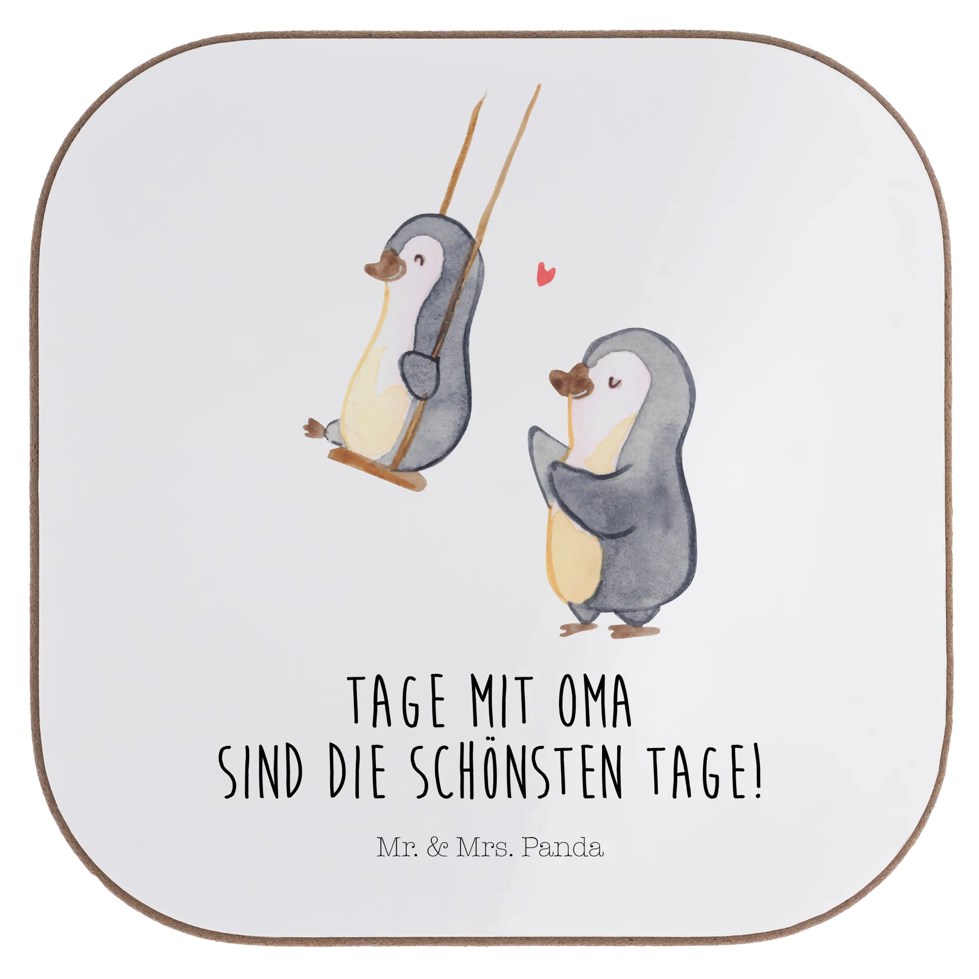 Der wunderschöne Untersetzer "Pinguin Oma schaukeln" von Mr. & Mrs. Panda ist das ideale Geschenk für all jene, die ihre Großmutter besonders schätzen! Mit einem charmanten Motiv, das zwei fröhliche Pinguine zeigt, die auf Schaukeln sitzen, wird dieser Untersetzer zu einem liebevollen Erinnerungsstück.