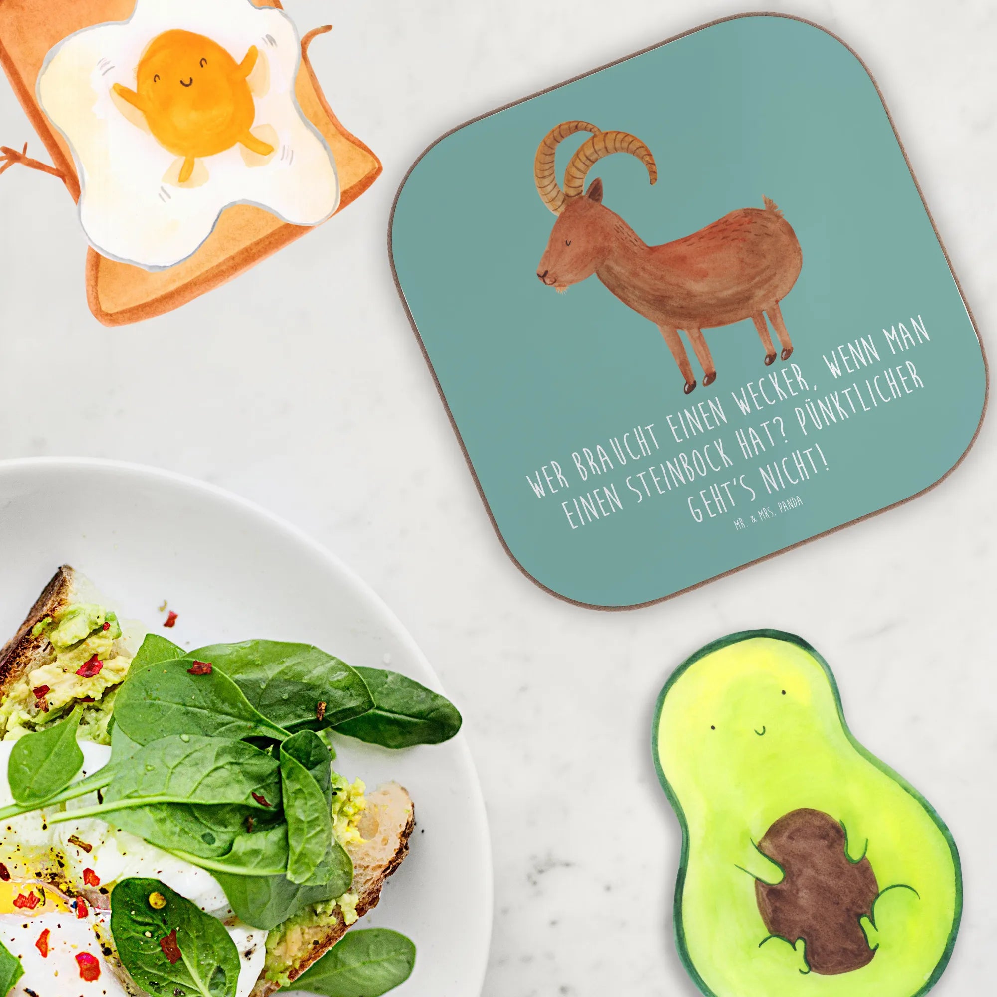 Entdecke den perfekt gestalteten Untersetzer Steinbock von Mr. & Mrs. Panda – ideal für alle Astrologie-Enthusiasten! Dieser wunderschöne quadratische Untersetzer ist mehr als nur ein praktisches Accessoire; er ist eine liebevolle Hommage an das Sternzeichen Steinbock. Mit dem charmanten Spruch 'Wer braucht einen Wecker, wenn man einen Steinbock hat? Pünktlicher geht's nicht!' bringt er nicht nur einen Hauch von Humor in dein Zuhause, sondern schützt auch deinen Tisch vor unschönen Abdrücken und Kratzern.