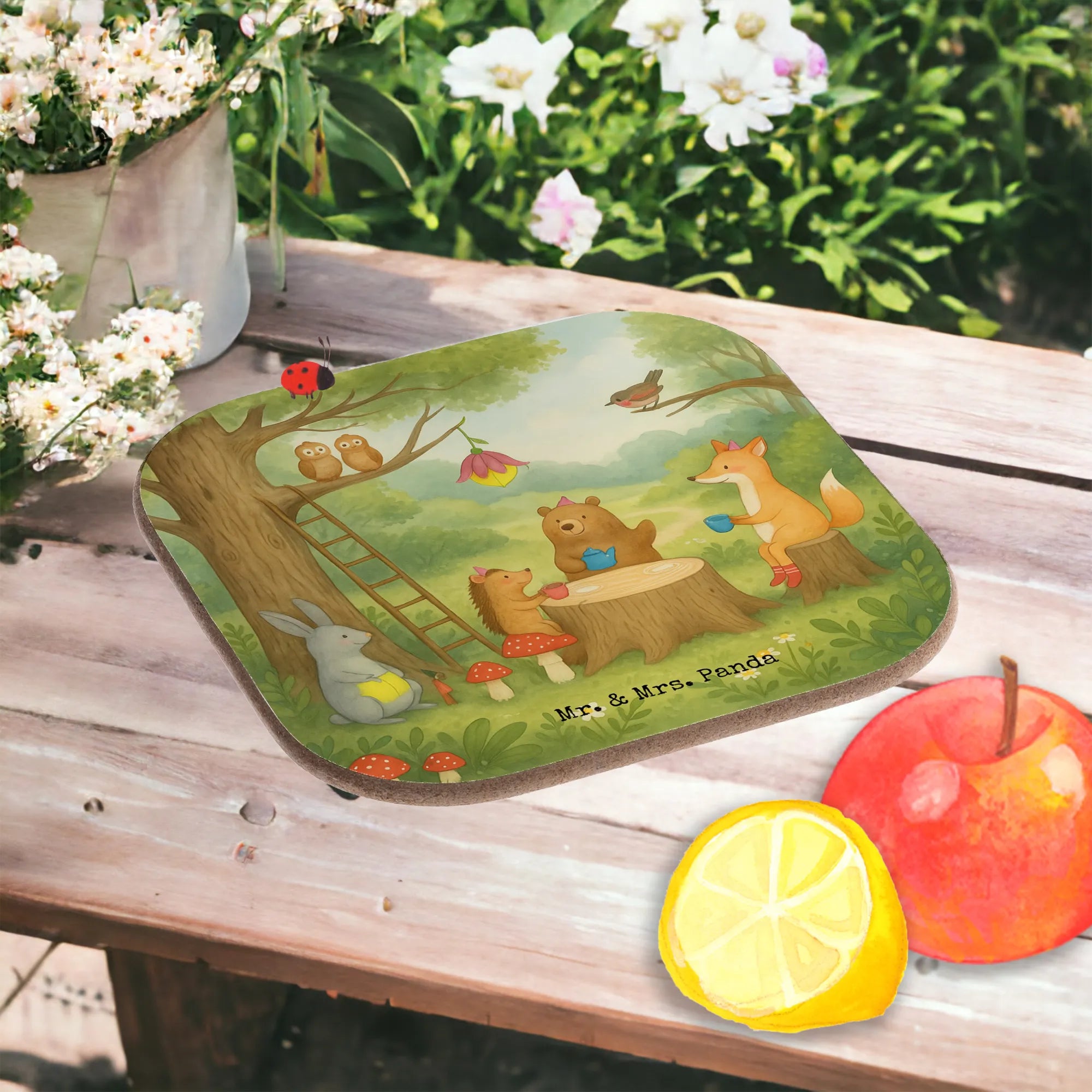 Untersetzer Glas Waldtiere Picknick Design - mit Spruch