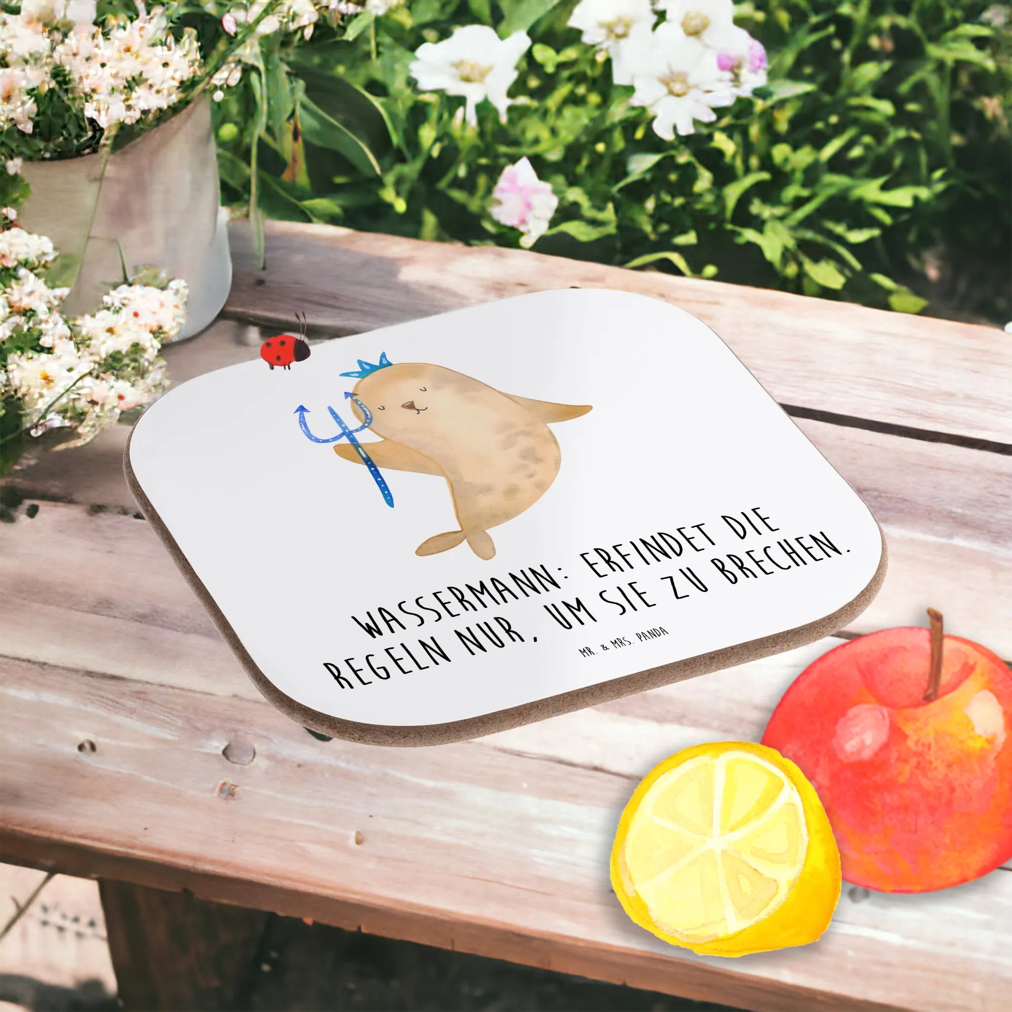 Du suchst nach dem perfekten Geschenk für einen Wassermann? Dann hast du ihn gefunden! Der quadratische Untersetzer von Mr. & Mrs. Panda ist nicht nur ein praktisches Accessoire, sondern auch ein liebevolles Stück, das den einzigartigen Charakter des Wassermanns zelebriert. Bedruckt mit dem charmanten Slogan „Wassermann: Erfindet die Regeln nur, um sie zu brechen.“, bringt dieser Untersetzer eine humorvolle Note in jede Runde Bier oder den nächsten Cocktail-Abend.