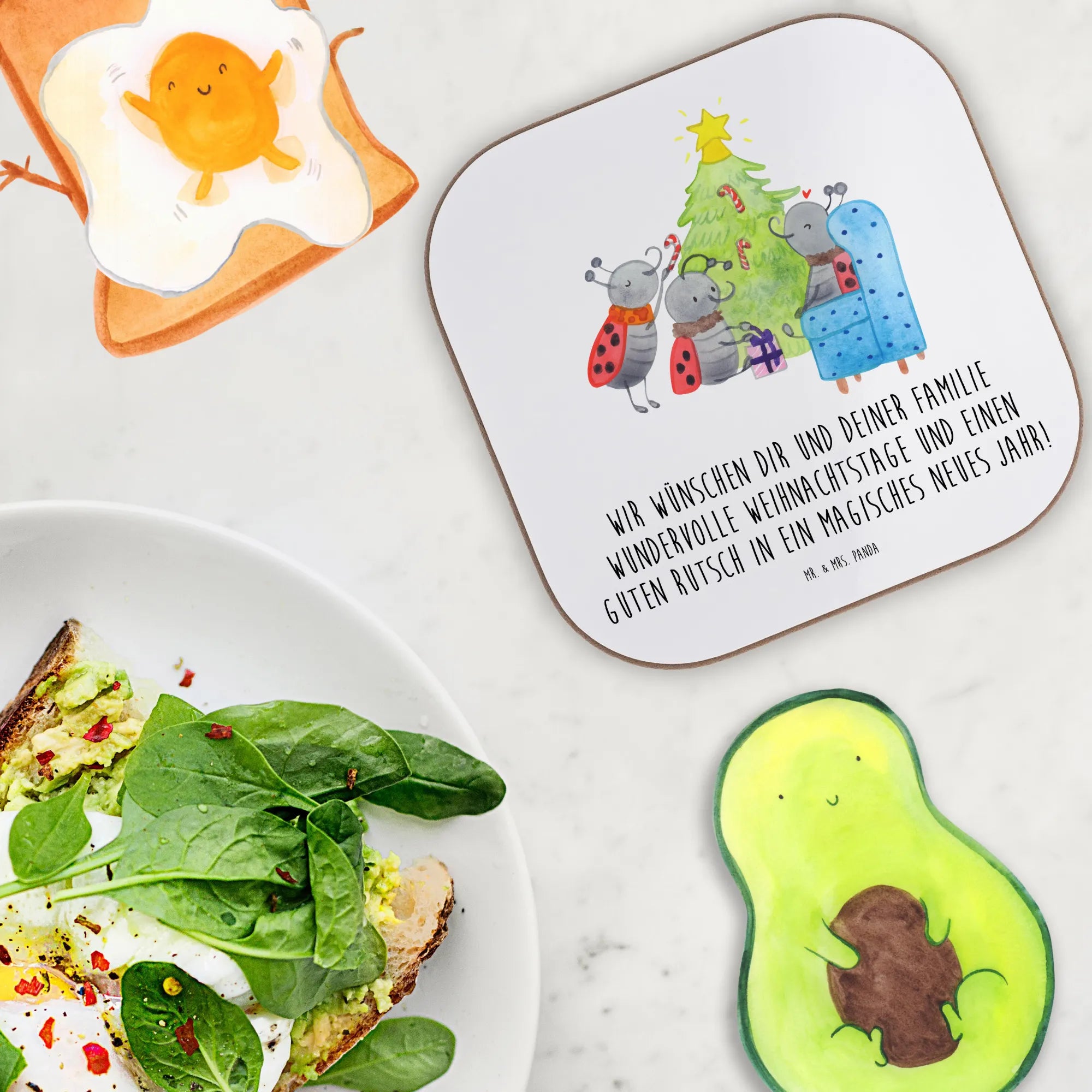 Entdecke die zauberhaften Untersetzer Weihnachten Smörle von Mr. & Mrs. Panda – das perfekte Geschenk für die diesjährige Winter- und Weihnachtszeit! Diese liebevoll gestalteten Glasuntersetzer sind nicht nur ein praktisches Accessoire, um deinen Tisch vor unschönen Abdrücken und Kratzern zu schützen, sondern bringen auch das weihnachtliche Flair direkt in dein Zuhause. Das Design zeigt eine märchenhafte Szene mit drei fröhlichen Marienkäfern beim Schmücken eines Weihnachtsbaums voller Pfefferminzstangen und Geschenken. Hierbei handelt es sich um ein außergewöhnliches Motiv, das Herz und Seele erwärmt und Kindheitserinnerungen weckt. Die Untersetzer sind 100 mm x 100 mm groß und 5 mm dick, bestehen aus hochwertigem Hartfaser-Material und haben eine glänzende Oberfläche, die sie zu einem echten Hingucker macht.