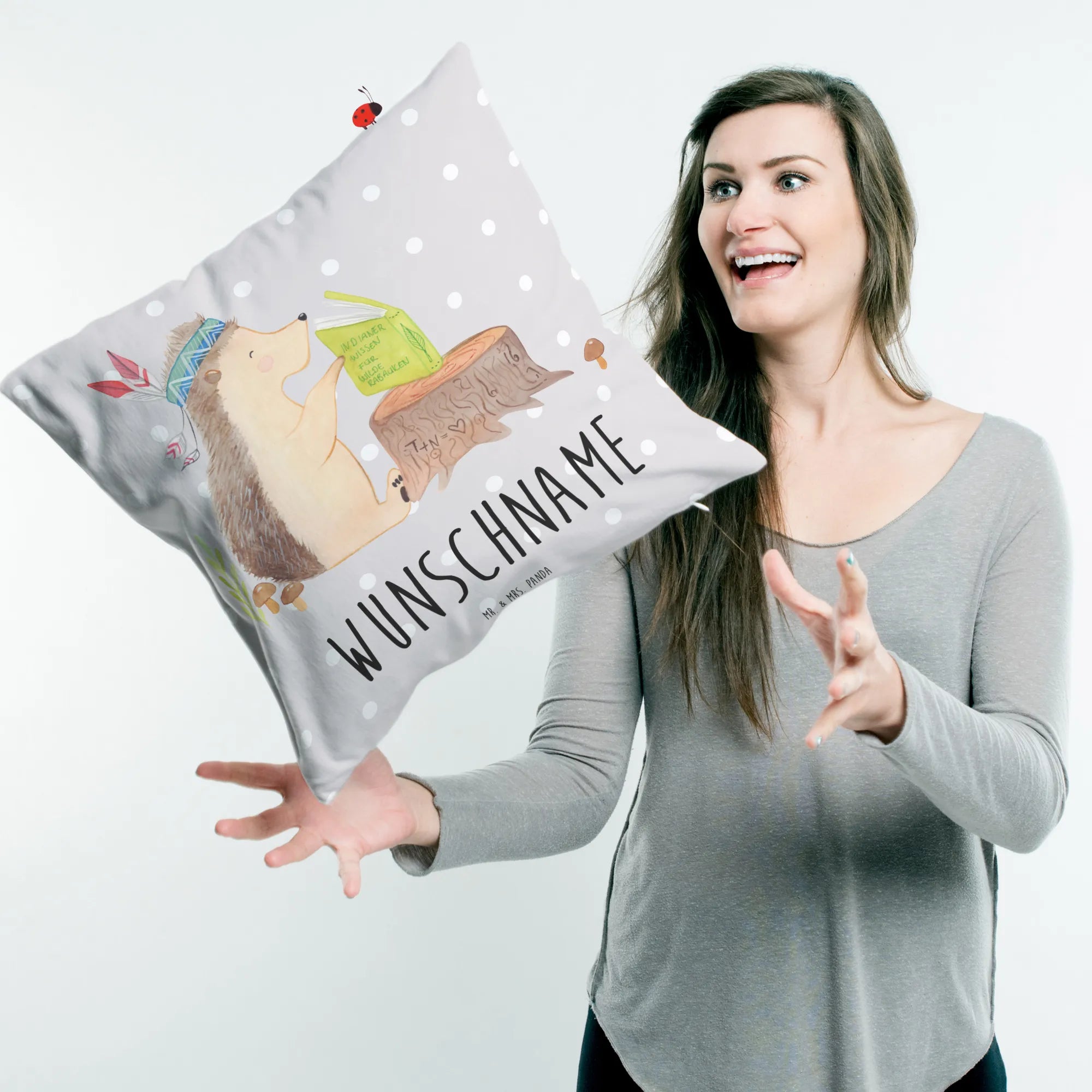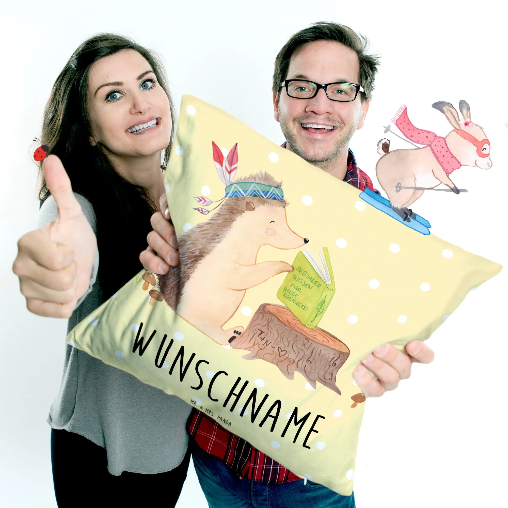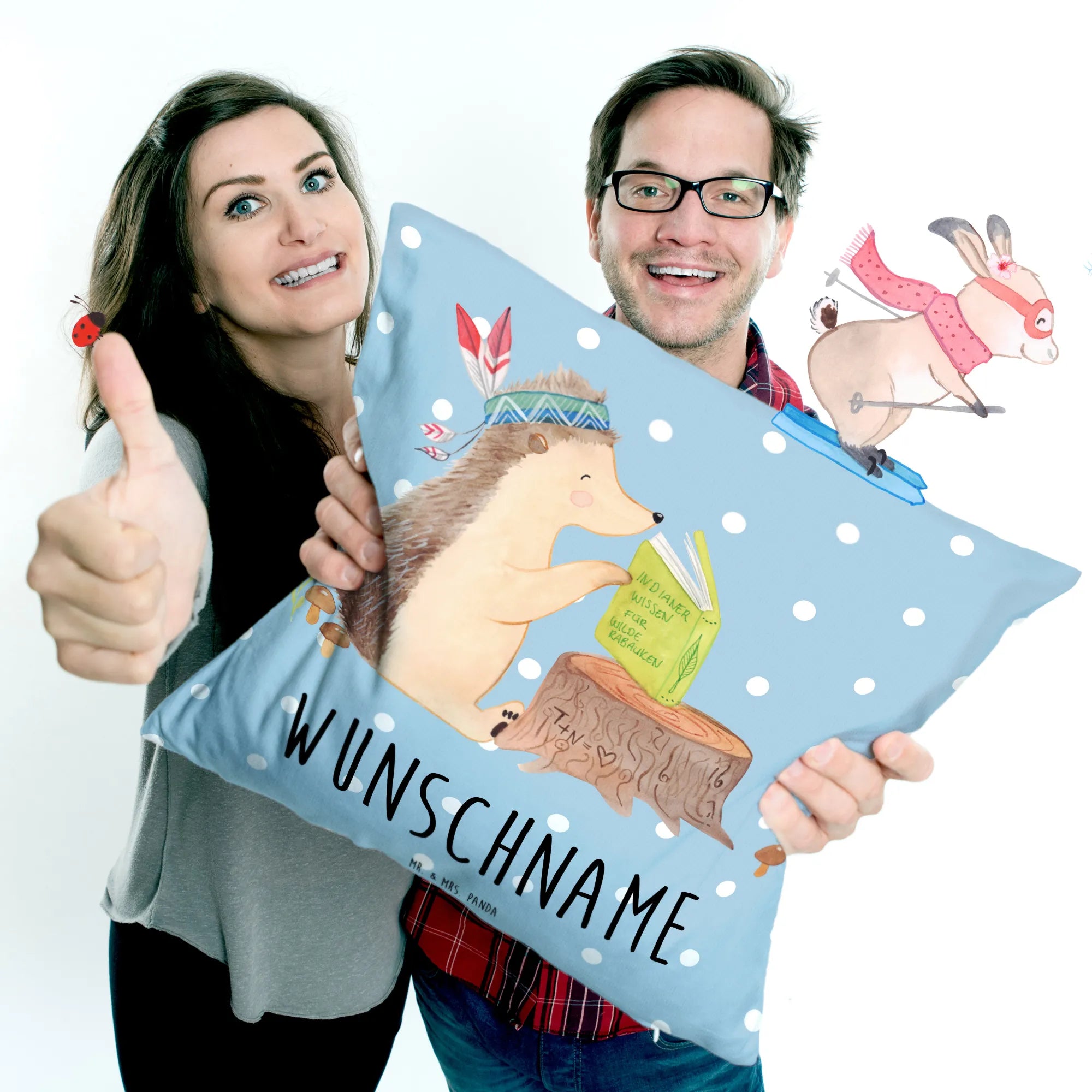 Verschenke Glücksmomente mit Mr. & Mrs. Panda und sorge dafür, dass die Augen deiner Liebsten leuchten! Ob für Kinder oder Junggebliebene, unser "Igel Indianer" Kissen ist das perfekte Geschenk – und du wirst sehen, wie die Freude bei der Übergabe groß ist!