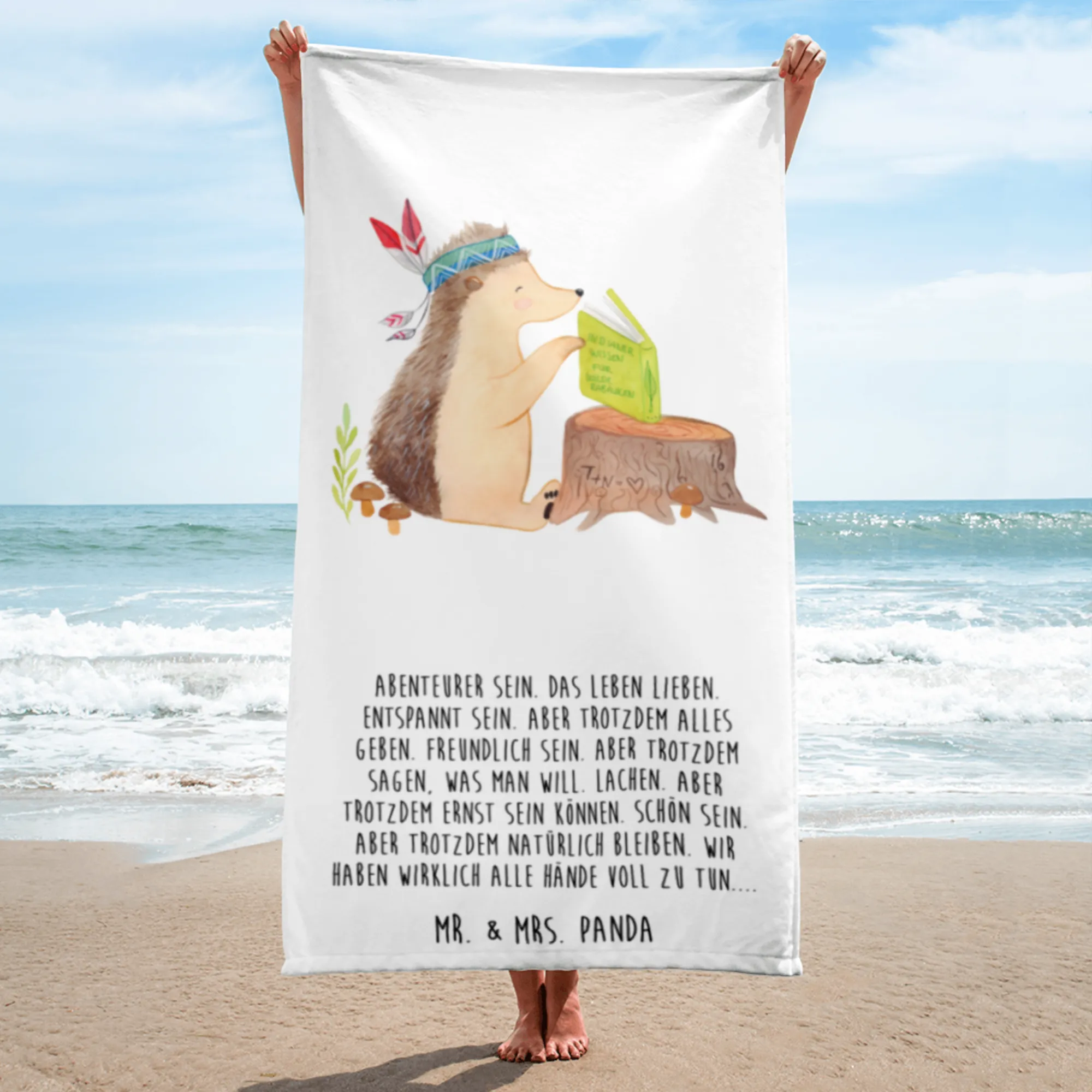 Suchst du nach dem perfekten Geschenk für Abenteuerlustige oder Naturfreunde? Dann ist das große XL Badehandtuch mit dem süßen Igel Indianer Motiv aus der Waldtiere Kollektion von Mr. & Mrs. Panda genau das Richtige!