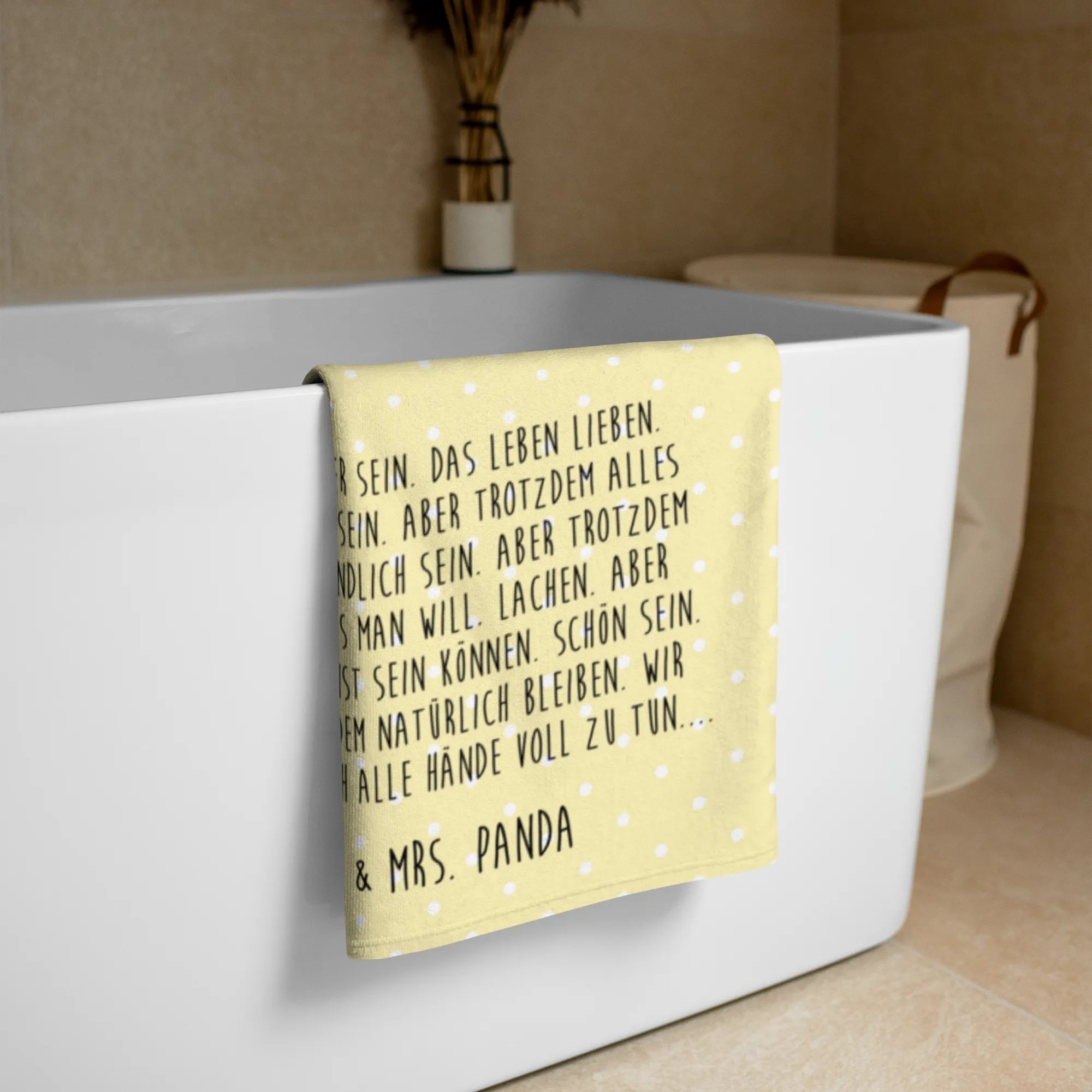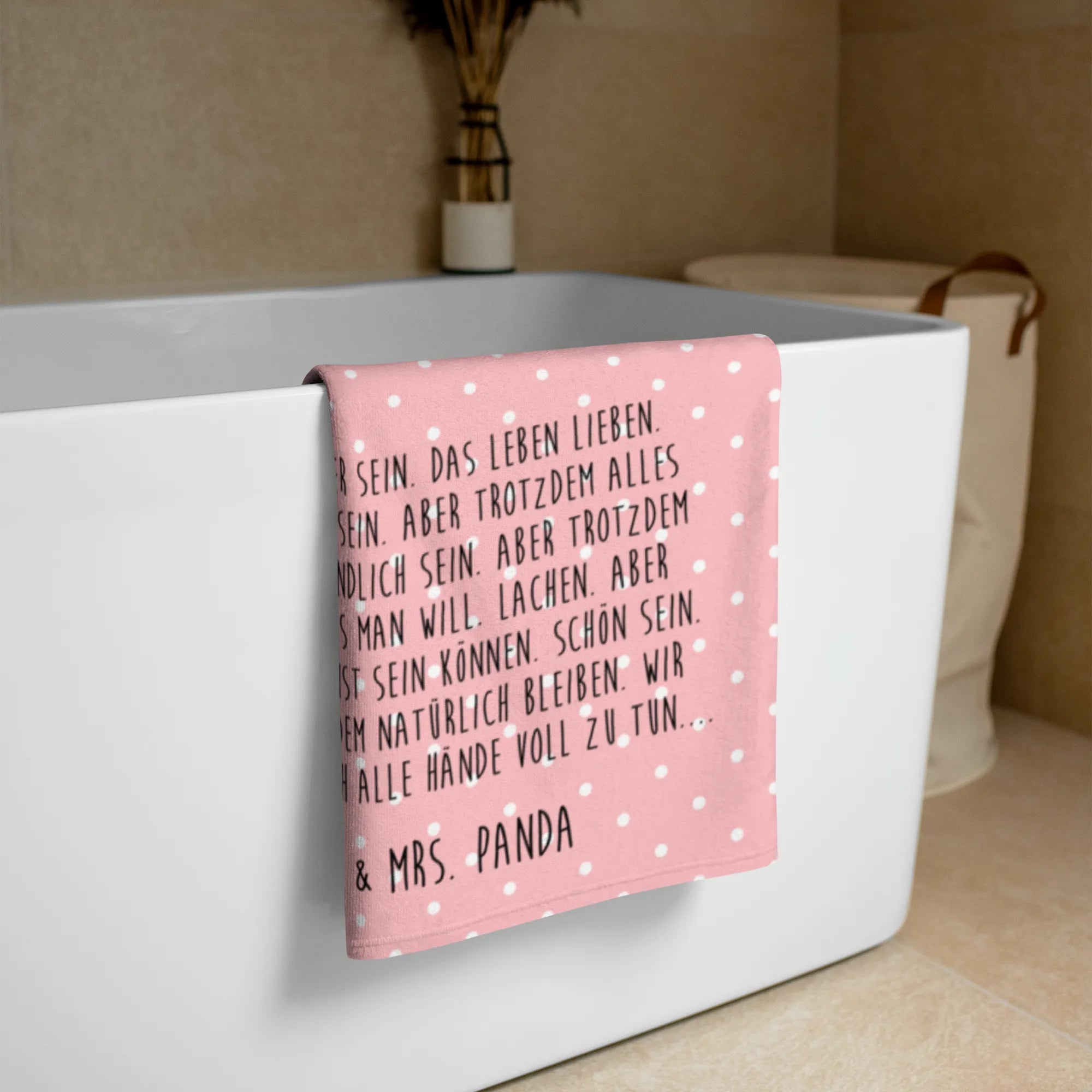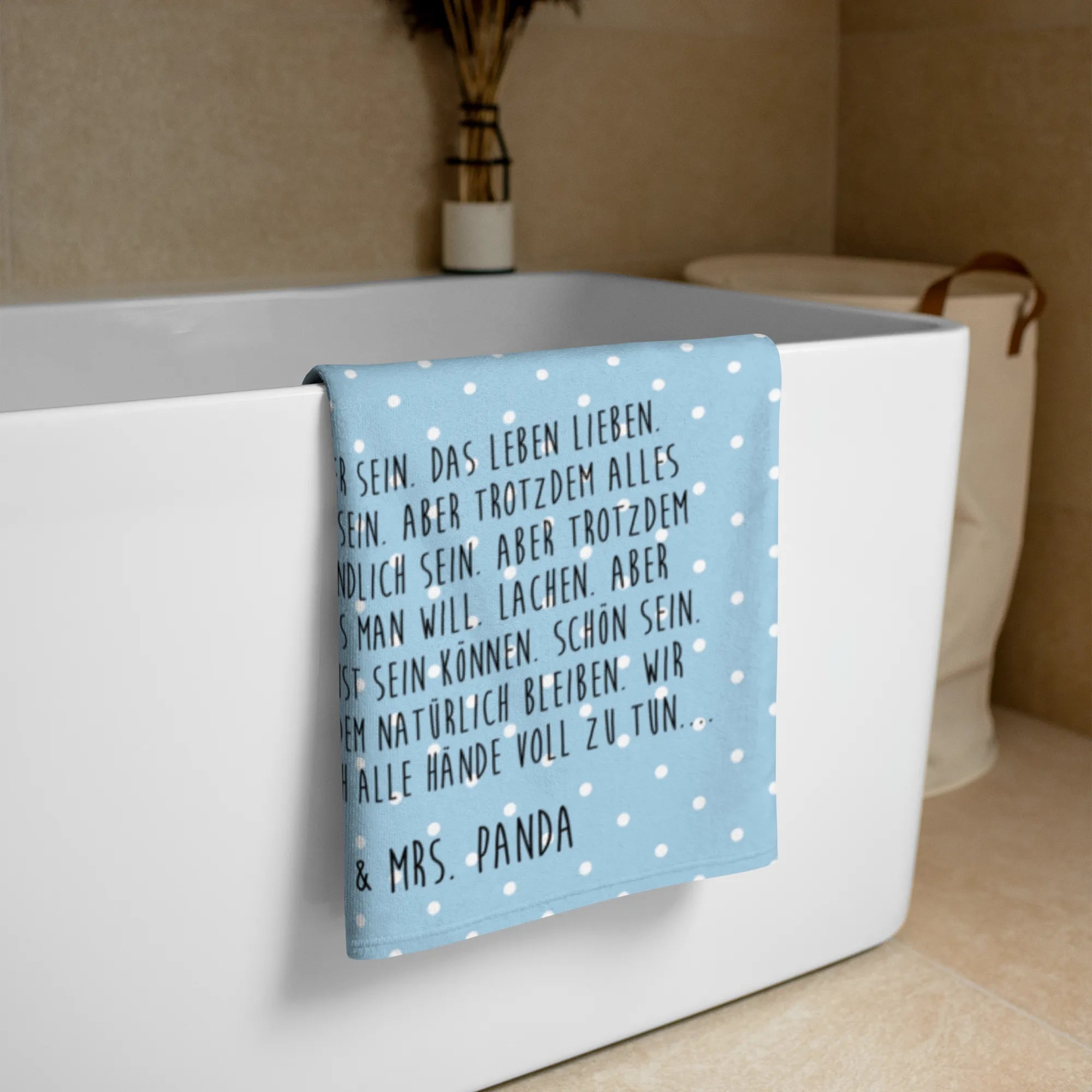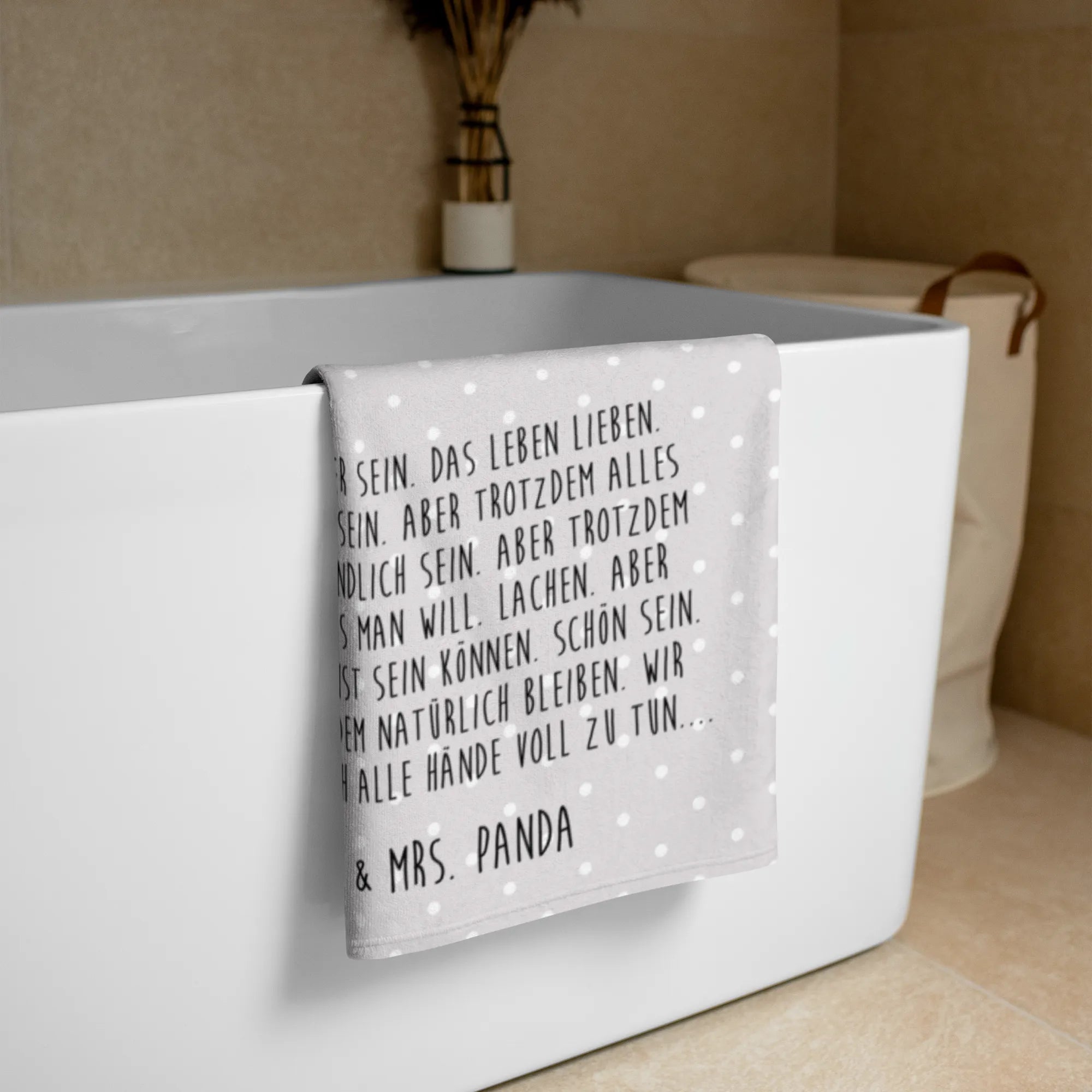 Neben seiner praktischen Funktionalität wird es auch durch den handgeschriebenen Spruch "Abenteurer sein. Das Leben lieben..." abgerundet. Dieses Handtuch wurde liebevoll von Mrs. Panda entworfen und eignet sich hervorragend als Geschenk für Freundinnen, Kinder oder die eigene Familie.
