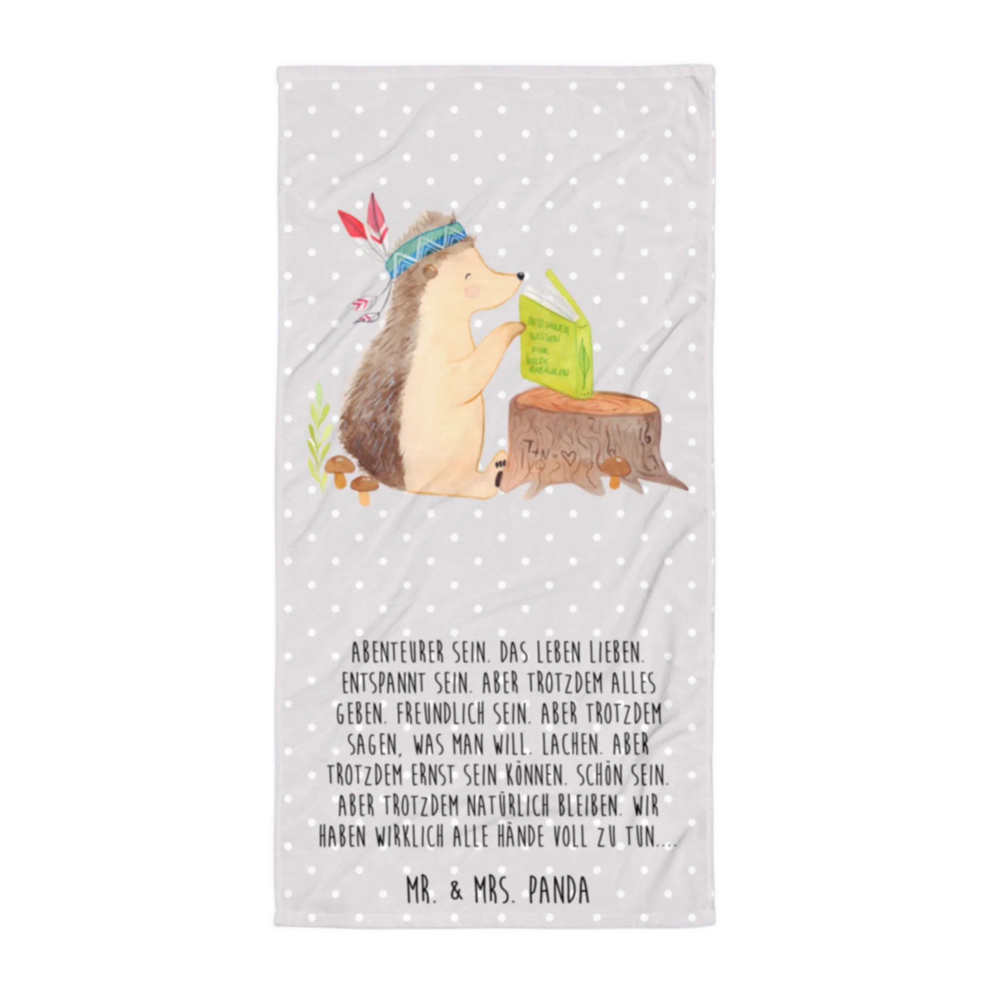 Das XL Badehandtuch mit dem niedlichen Igel Indianer Motiv aus der Waldtiere Kollektion von Mr. & Mrs. Panda ist das perfekte Geschenk für Abenteuerlustige und Naturfreunde.