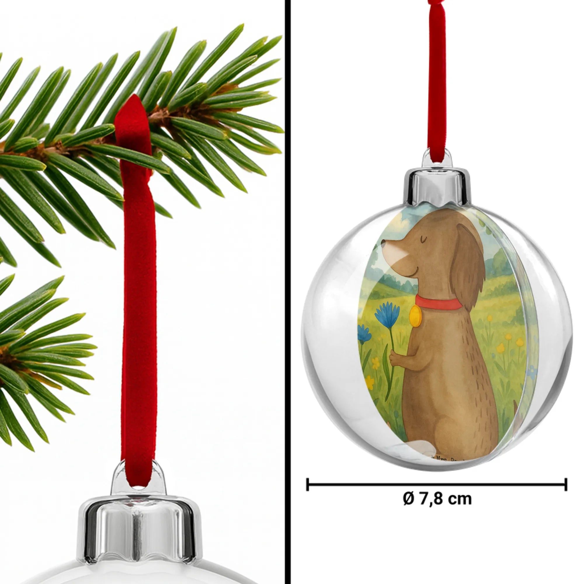 Weihnachtskugel Hund Blume Design