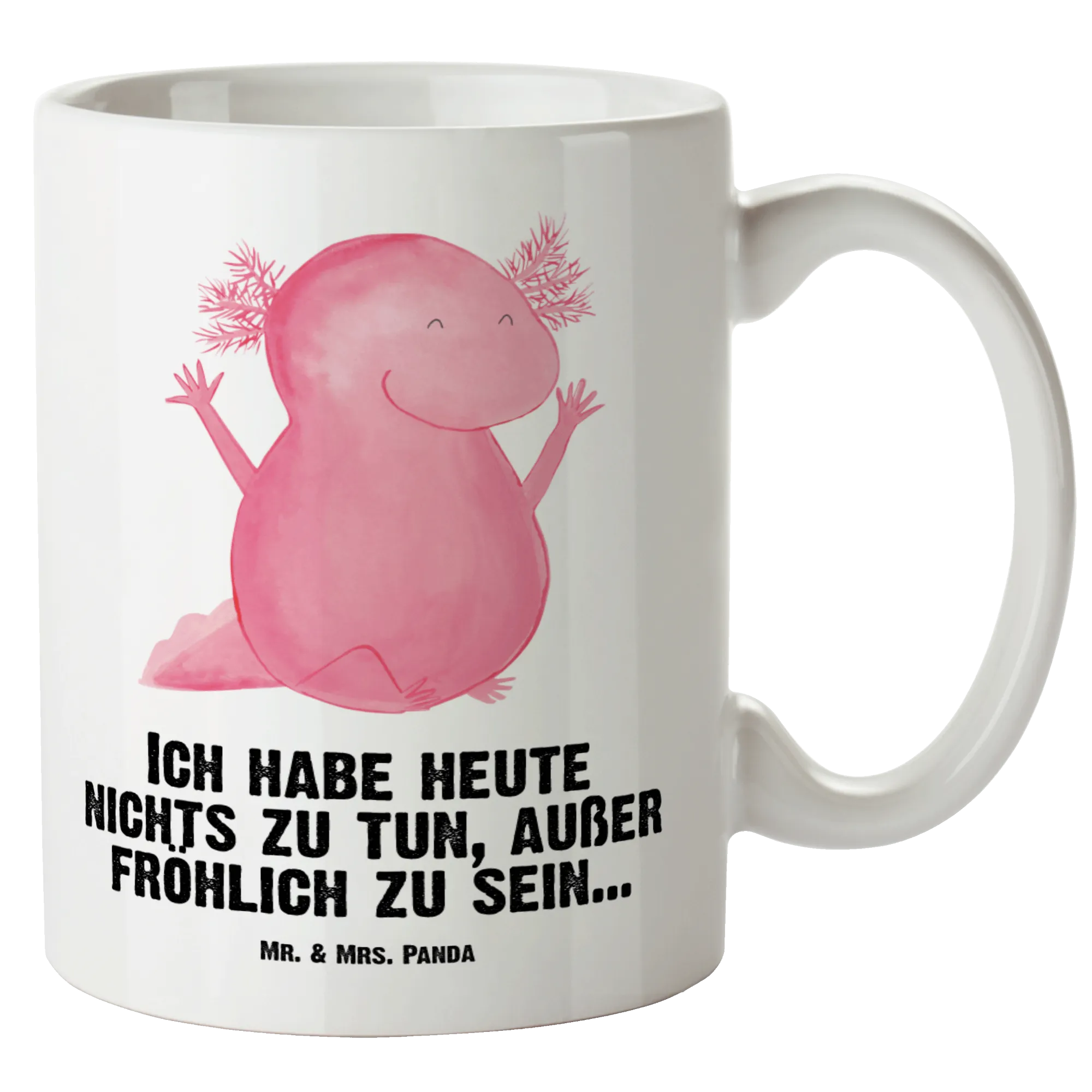Die XL Tasse Axolotl Hurra von Mr. & Mrs. Panda ist das perfekte Geschenk für alle Tierliebhaber und Axolotl-Fans! Mit ihrem fröhlichen Design und dem spritzigen Spruch "Ich habe heute nichts zu tun, außer fröhlich zu sein..." zaubert sie jedem ein Lächeln ins Gesicht. Diese große Kaffeetasse hat mit einem Füllvolumen von 500 ml genügend Platz für Deinen morgendlichen Kaffee oder Tee und wird so zum perfekten Begleiter durch den Alltag.