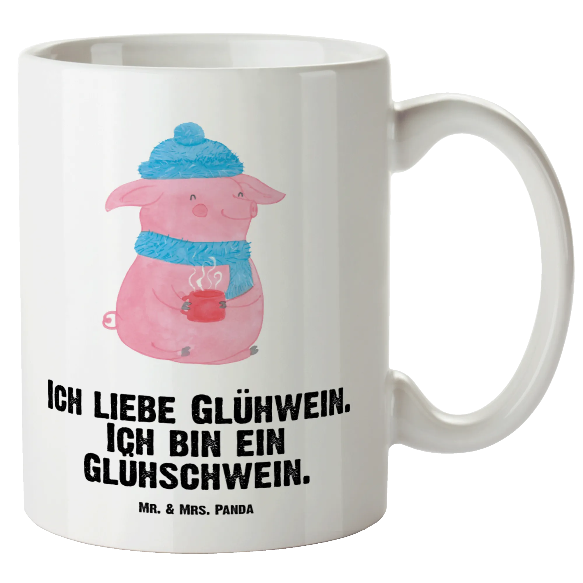 Glühschwein Motiv – süßes Schwein mit Glühwein, Mütze & Schal | Winterliches Geschenk & Deko