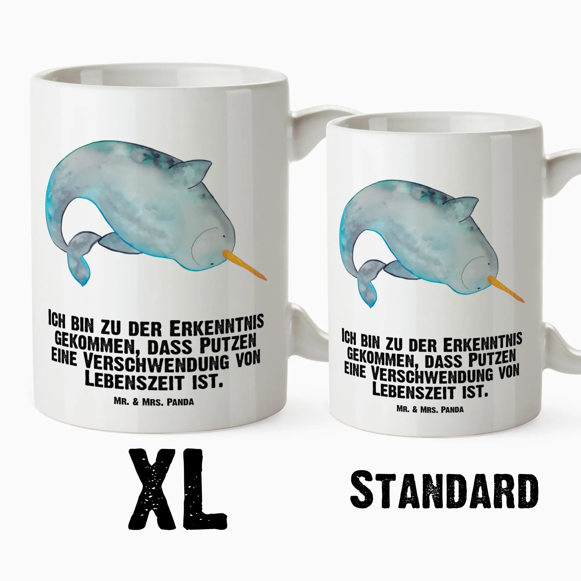 Unser Narwal, ein echter Schmeichler der Meere, stellt mit seiner harmoniausstrahlenden Erscheinung die Frage, was wirklich wichtig im Leben ist. Mit einem Spruch, der uns zum Schmunzeln bringt – 'Ich bin zu der Erkenntnis gekommen, dass Putzen eine Verschwendung von Lebenszeit ist' – fordert er uns heraus, uns weniger um die kleinen Details zu kümmern und stattdessen das große Bild zu sehen. Vertiefe dich in die Magie des Lebens und entdecke, dass wahres Glück in den kleinen, unperfekten Momenten verborgen ist. Lass dir von unserem Narwal beibringen, dass Lebensfreude und Freiheit viel mehr zählen als ein blitzsauberes Zuhause.