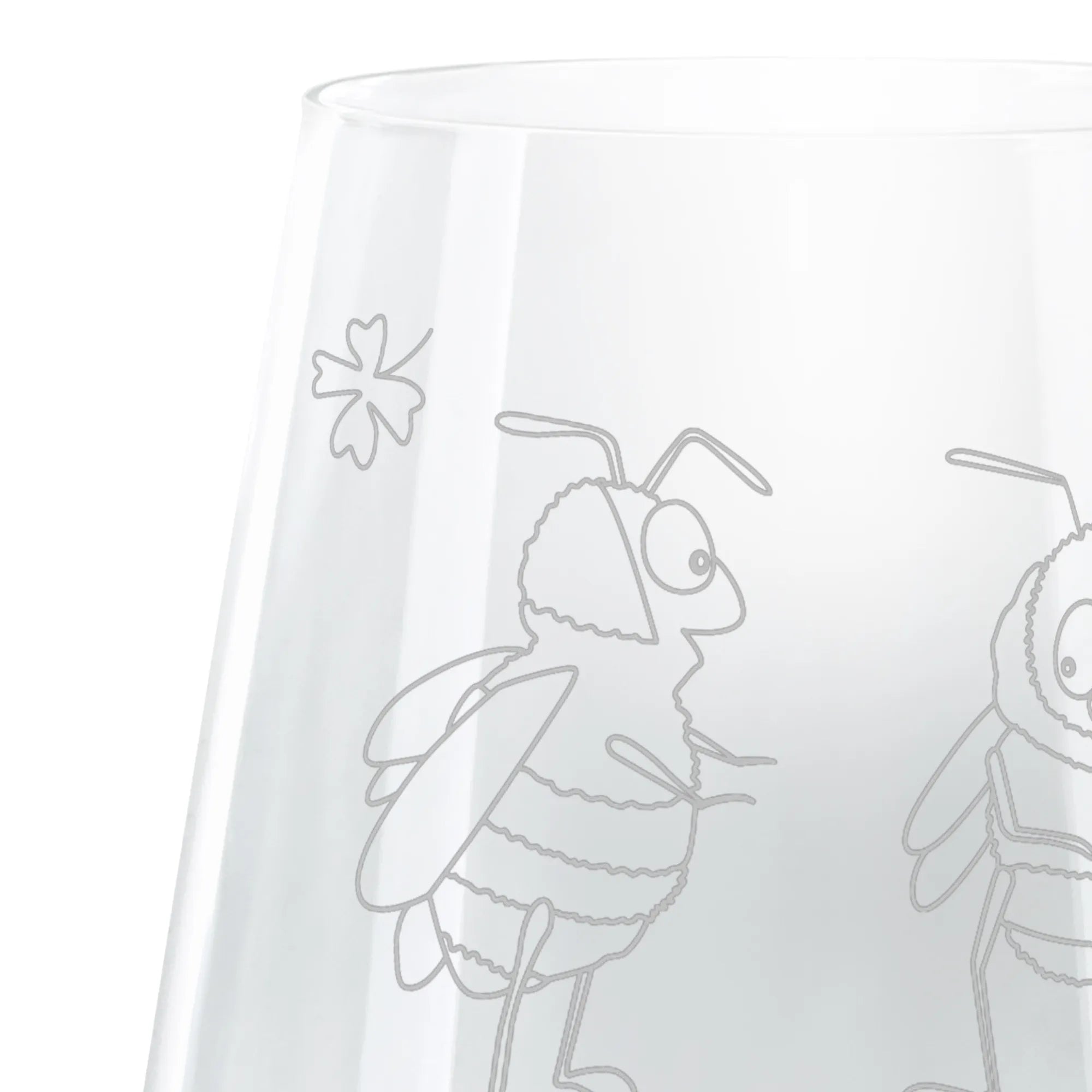 Measuring 103 mm (4 inches) in height and 88 mm (3 inches) in diameter, this robust glass holds up to 400 ml (14 oz) of your favorite cocktails or mocktails, giving you plenty of room to indulge. The high-quality laser engraving showcases a pair of adorable bees, creating a sweet and playful vibe. The bees are illustrated in a whimsical style, one joyfully holding a four-leaf clover while the other, with expressive eyes, manifests a warm and inviting demeanor. This design symbolizes love and connection, making it a heartfelt token of affection.