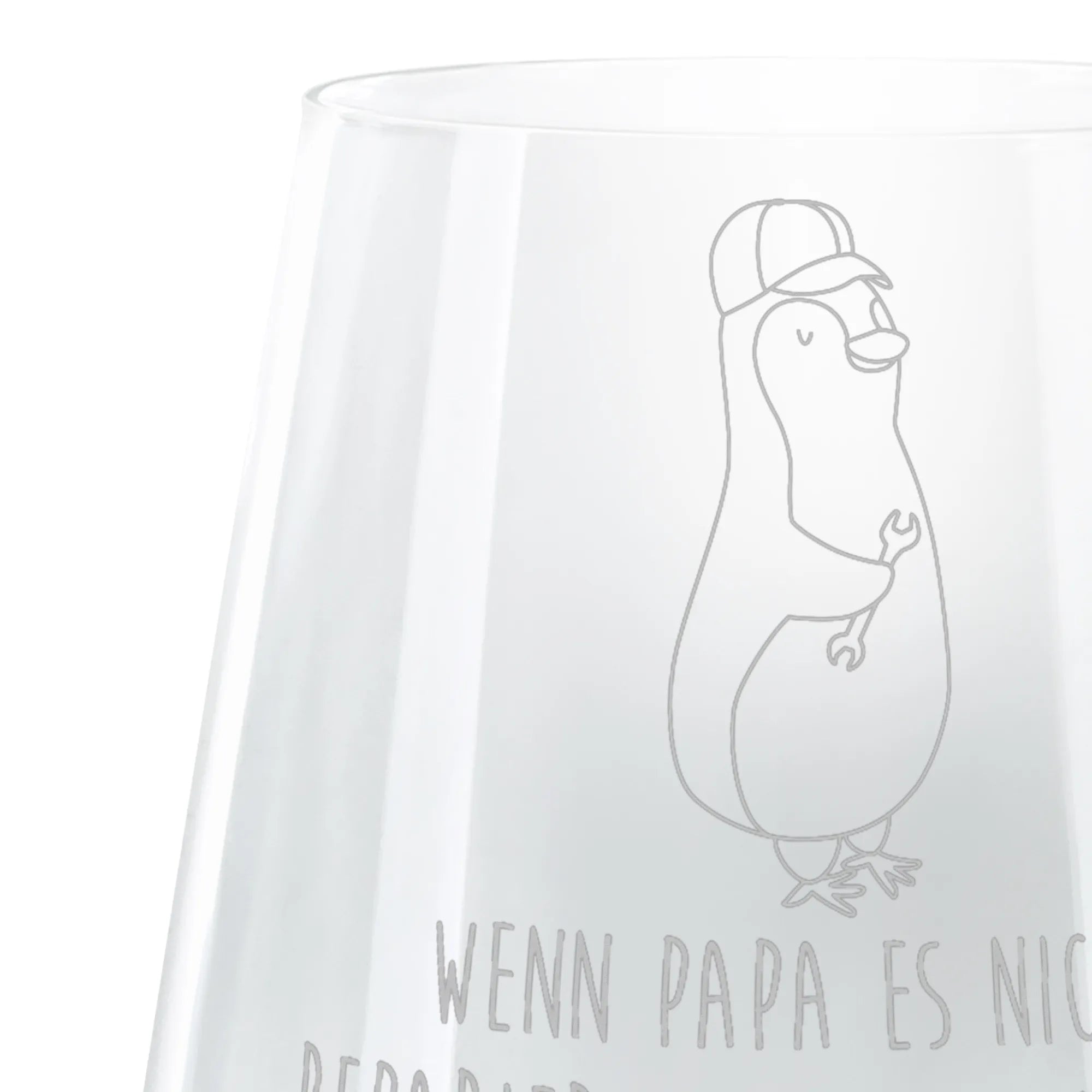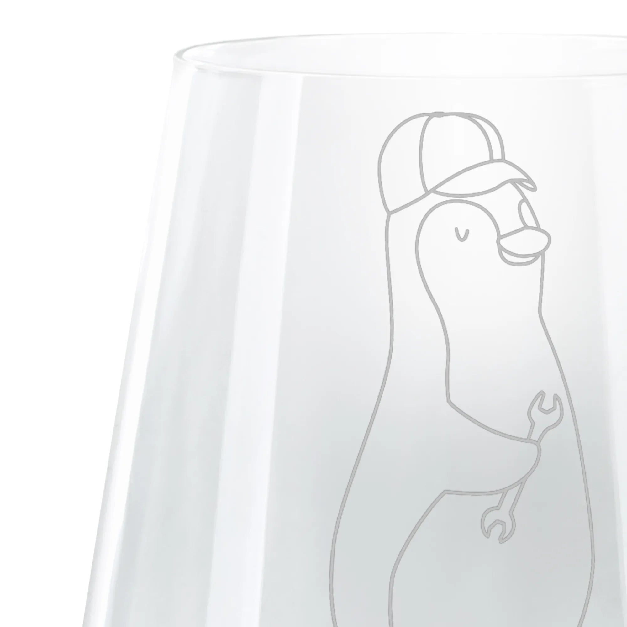Dieses hochwertige Glas bringt nicht nur Freude beim Trinken von Cocktails, sondern auch ein Lächeln in jedes Gesicht. Die wunderschöne Lasergravur sorgt für einen einzigartigen Matteffekt, der das Glas besonders macht. Der sympathische Pinguin mit einer braunen Kappe und dem Werkzeug in der Flosse verleiht dem Glas einen verspielten, lustigen Charakter.