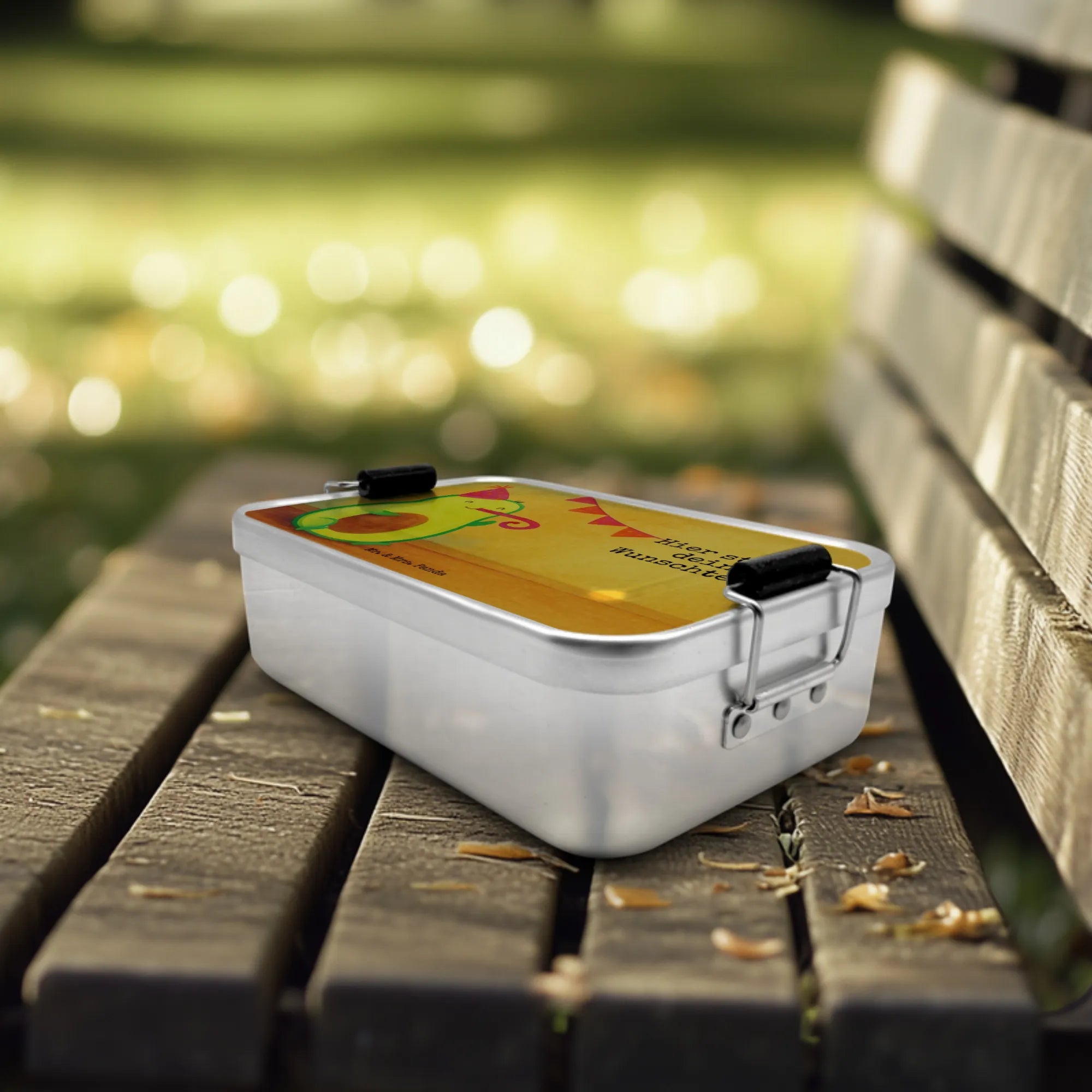 Personalized Metal Lunch Box avocado Birthday Design - Pastel Yellow