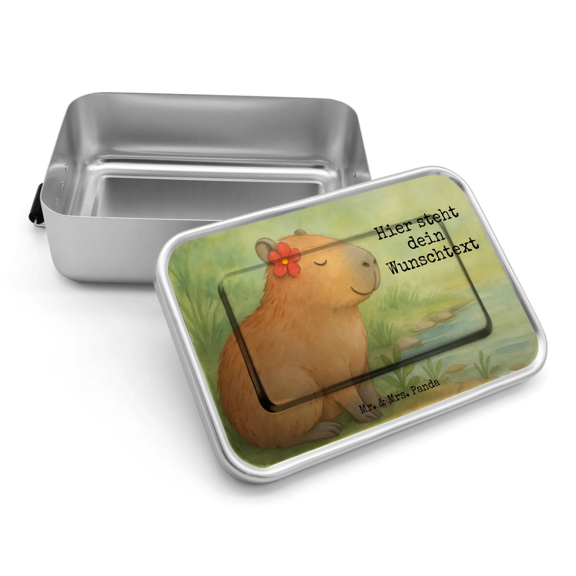 Personalized Metal Lunch Box Capybara flower Design - Rosa Pastell