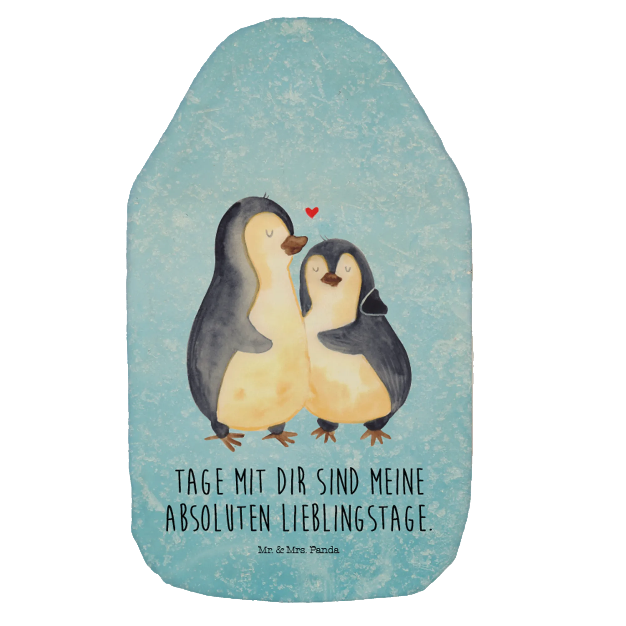 Hot water bottle Penguin embrace - with saying - Ice Blue