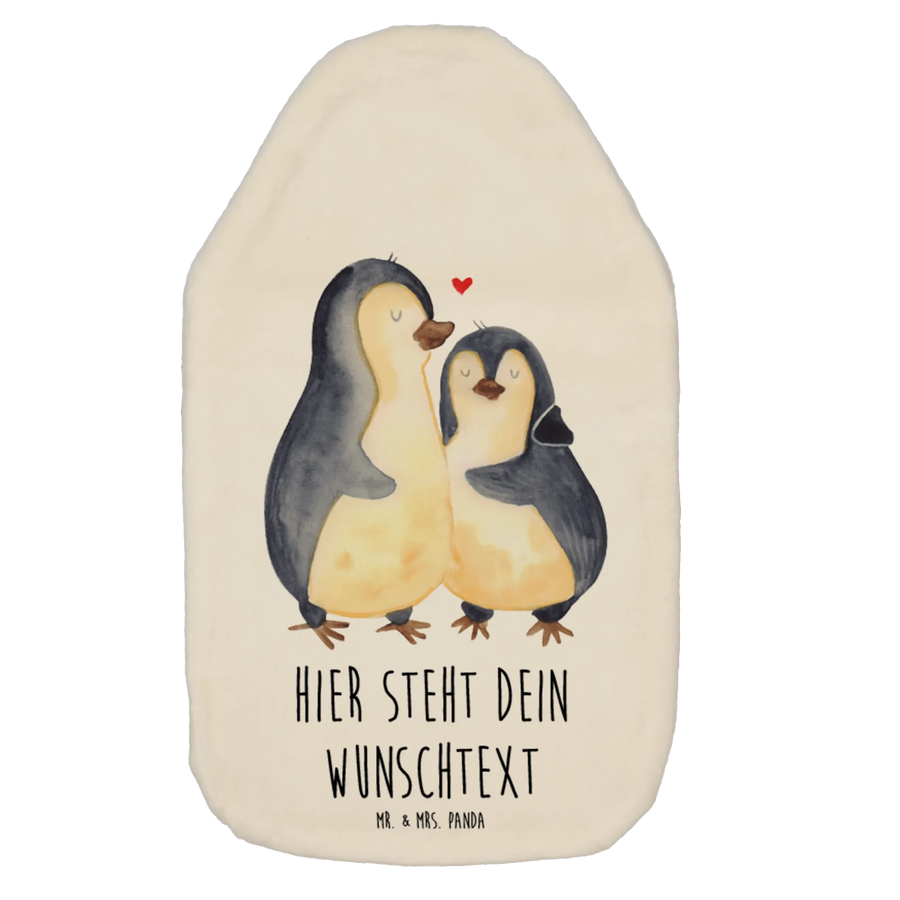 Personalised hot water bottle Penguin embrace - White